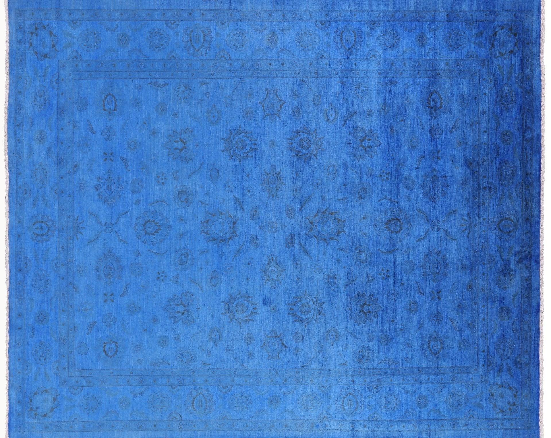 Blue Overdyed Hand Knotted Full Pile Wool Rug 8' 3" X 9' 10" - P9290