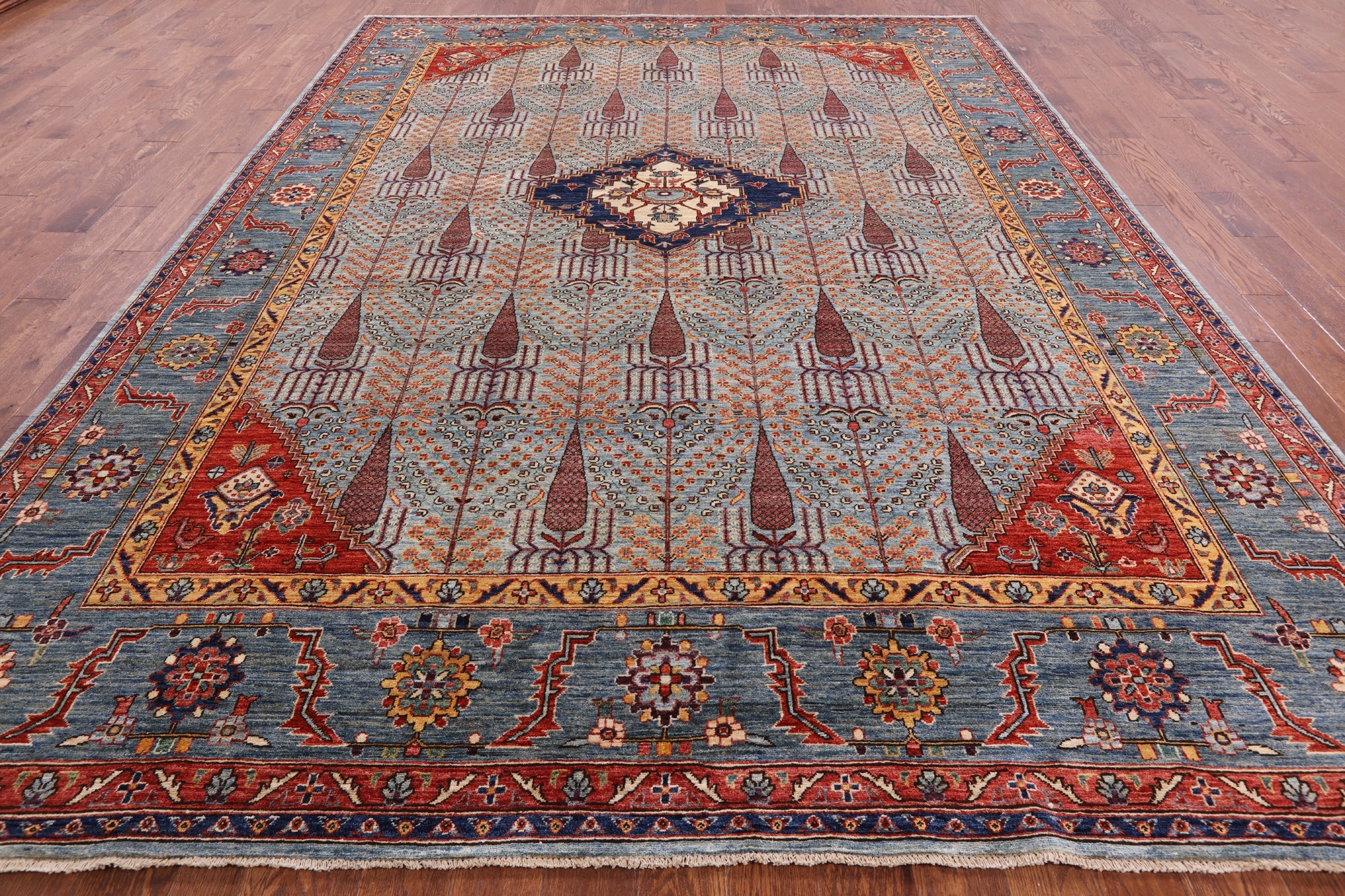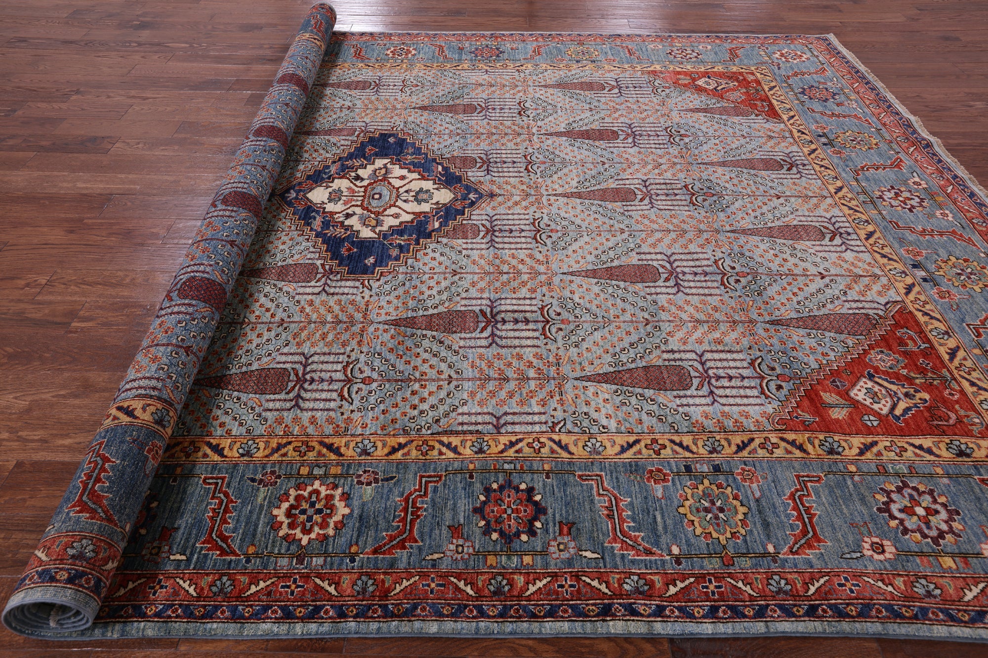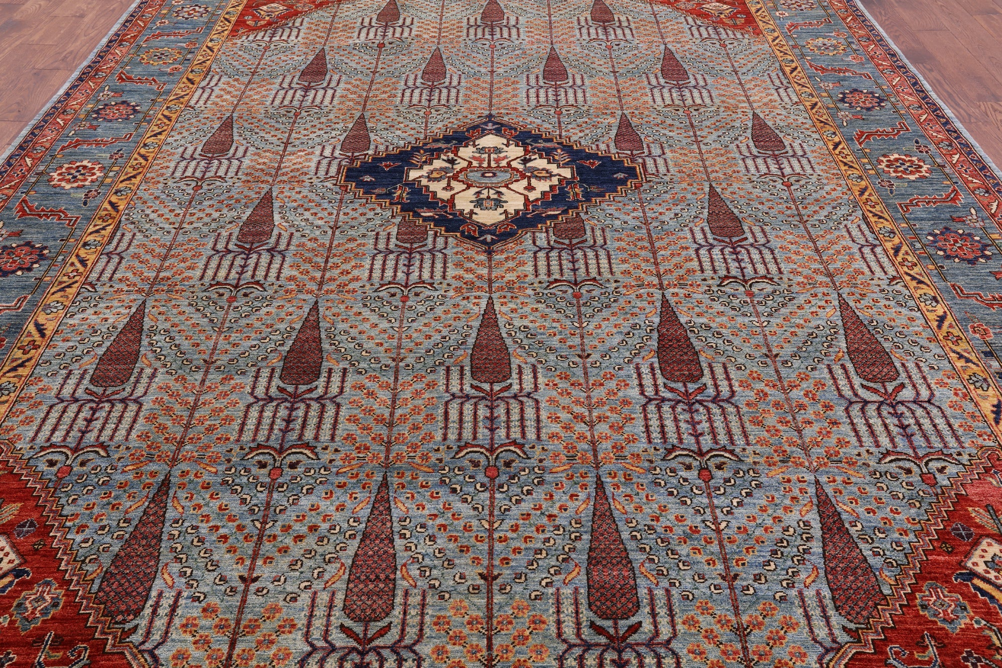 The nature-inspired color palette of Serapi/Heriz rugs gives them an antique look, which has historically sought after for many years. They commonly feature intricate medallions, followed by abstract florals and geometric designs. What makes the Serapi/Heriz so desirable, is their high endurance and longevity under high traffic. Serapi/Heriz rugs are constructed by a labor intensive hand knotting process, made from thick plush piles of wool.