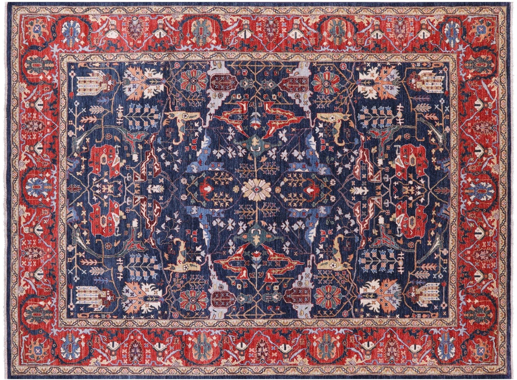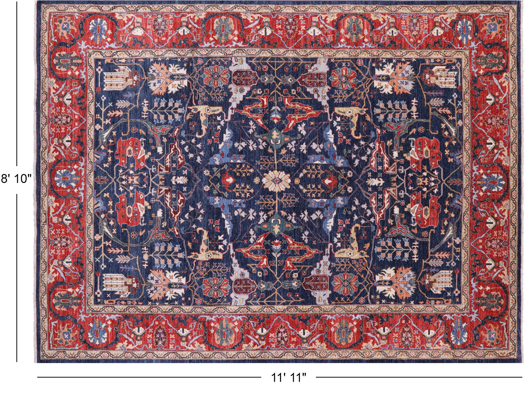Blue 8' 10" X 11' 11" Persian Fine Serapi Hand Knotted Rug - Q9550