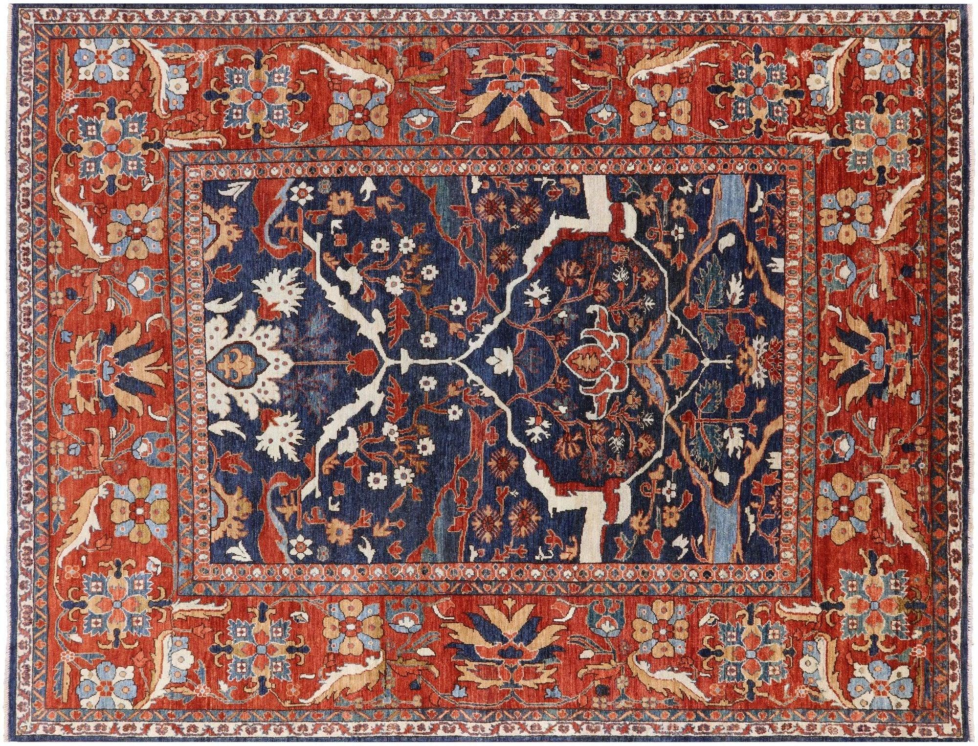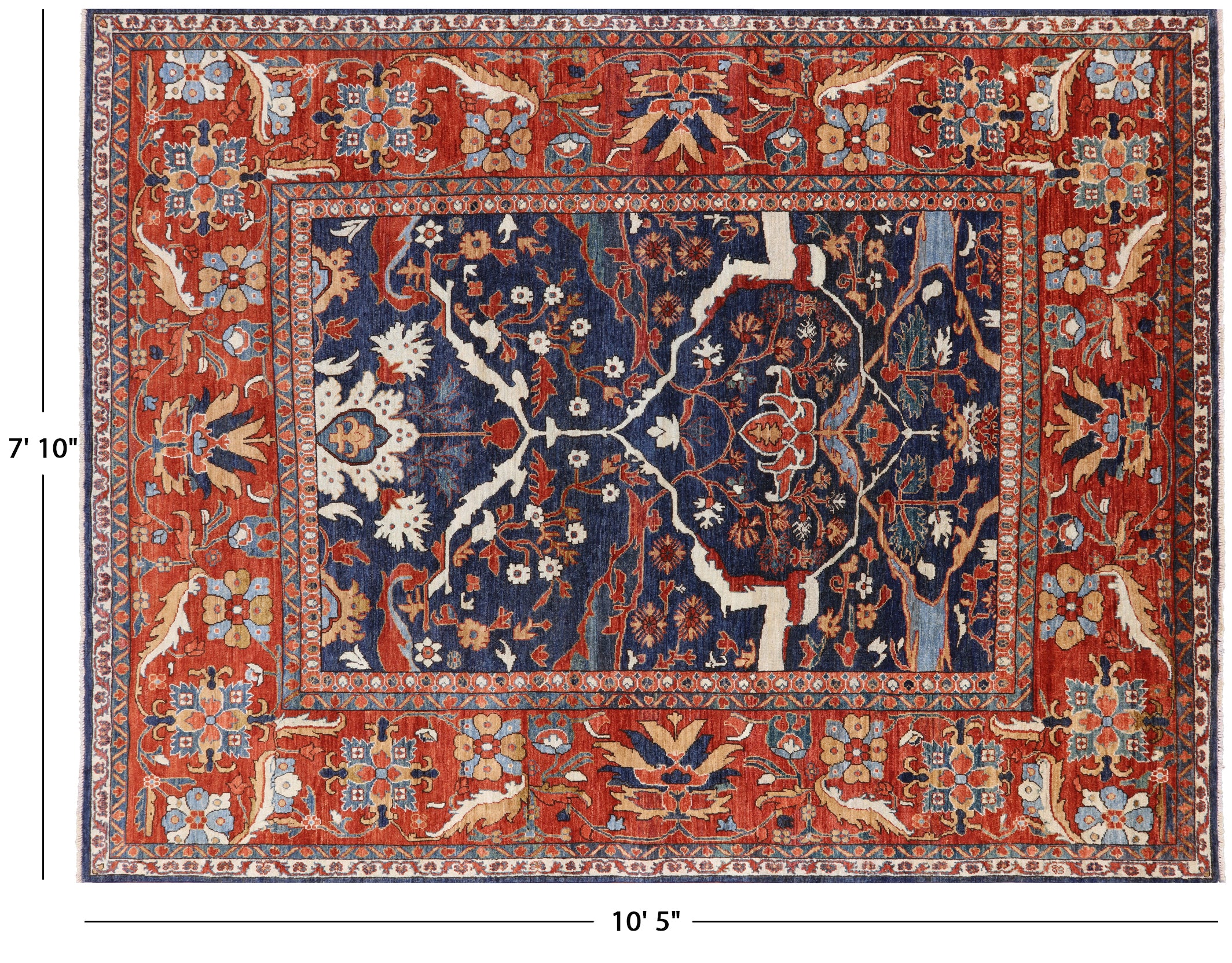 Blue Persian Fine Serapi Hand Knotted Wool Area Rug 7' 10" X 10' 5"- Q2277