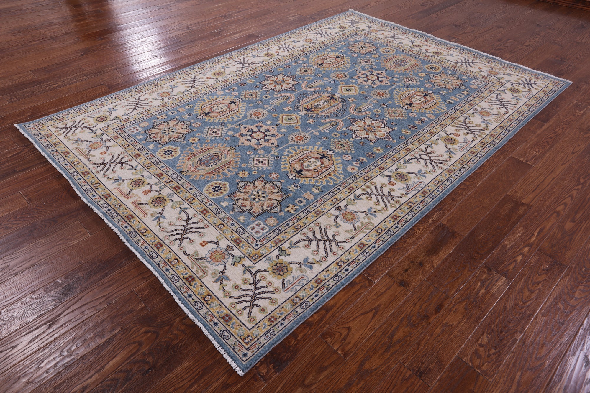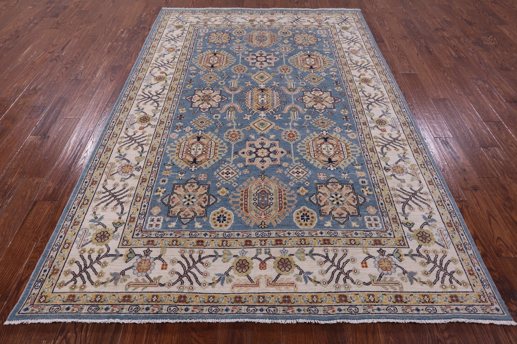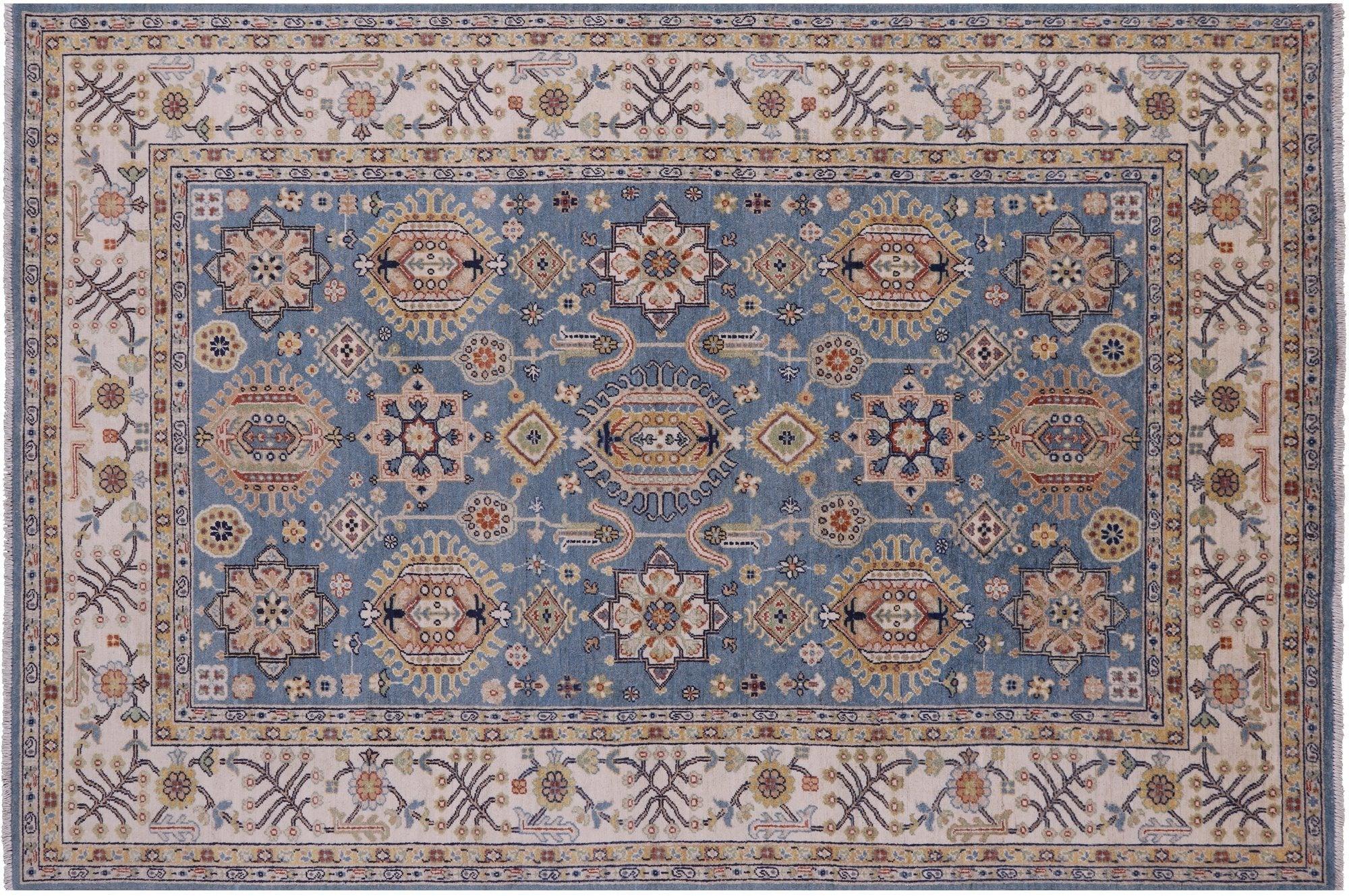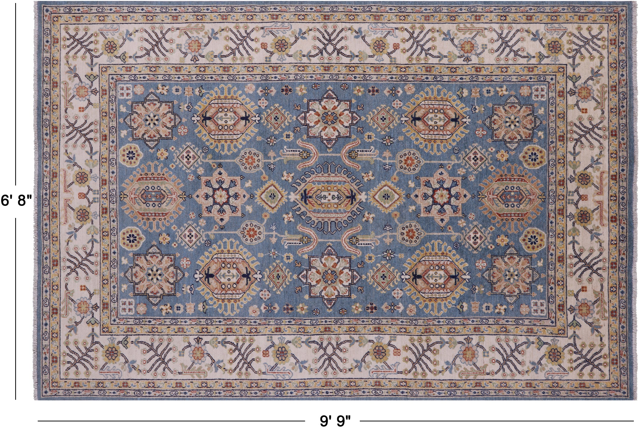 Blue 6' 8" X 9' 9" Persian Fine Serapi Hand Knotted Wool Rug - Q12818