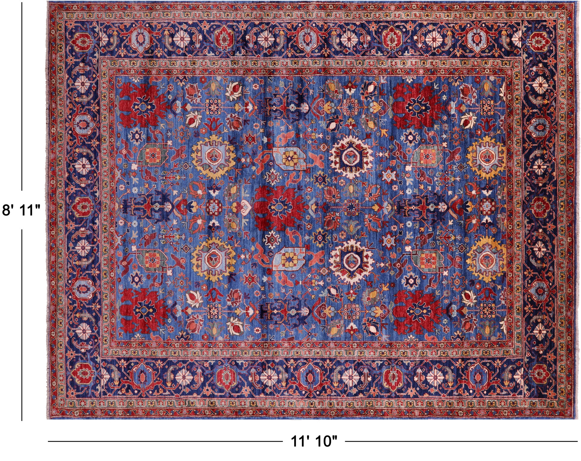 Blue 8' 11" X 11' 10" Persian Heriz Serapi Hand Knotted Rug - Q23093