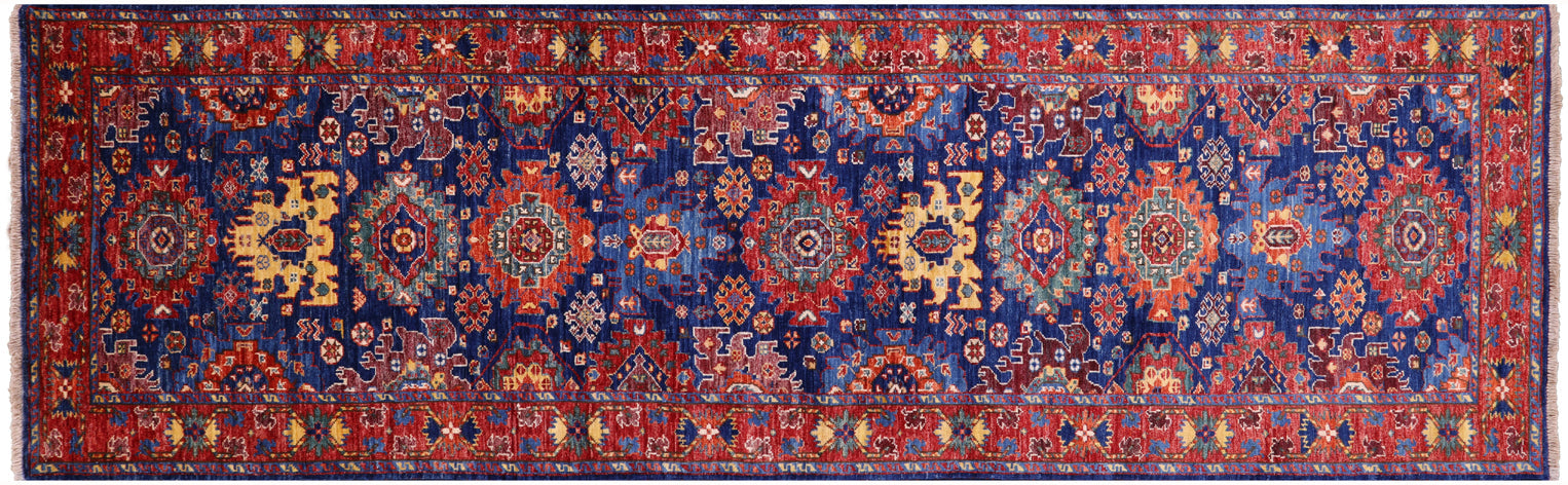 Blue 3' 0" X 9' 10" Persian Heriz Serapi Hand Knotted Runner Rug - Q23027
