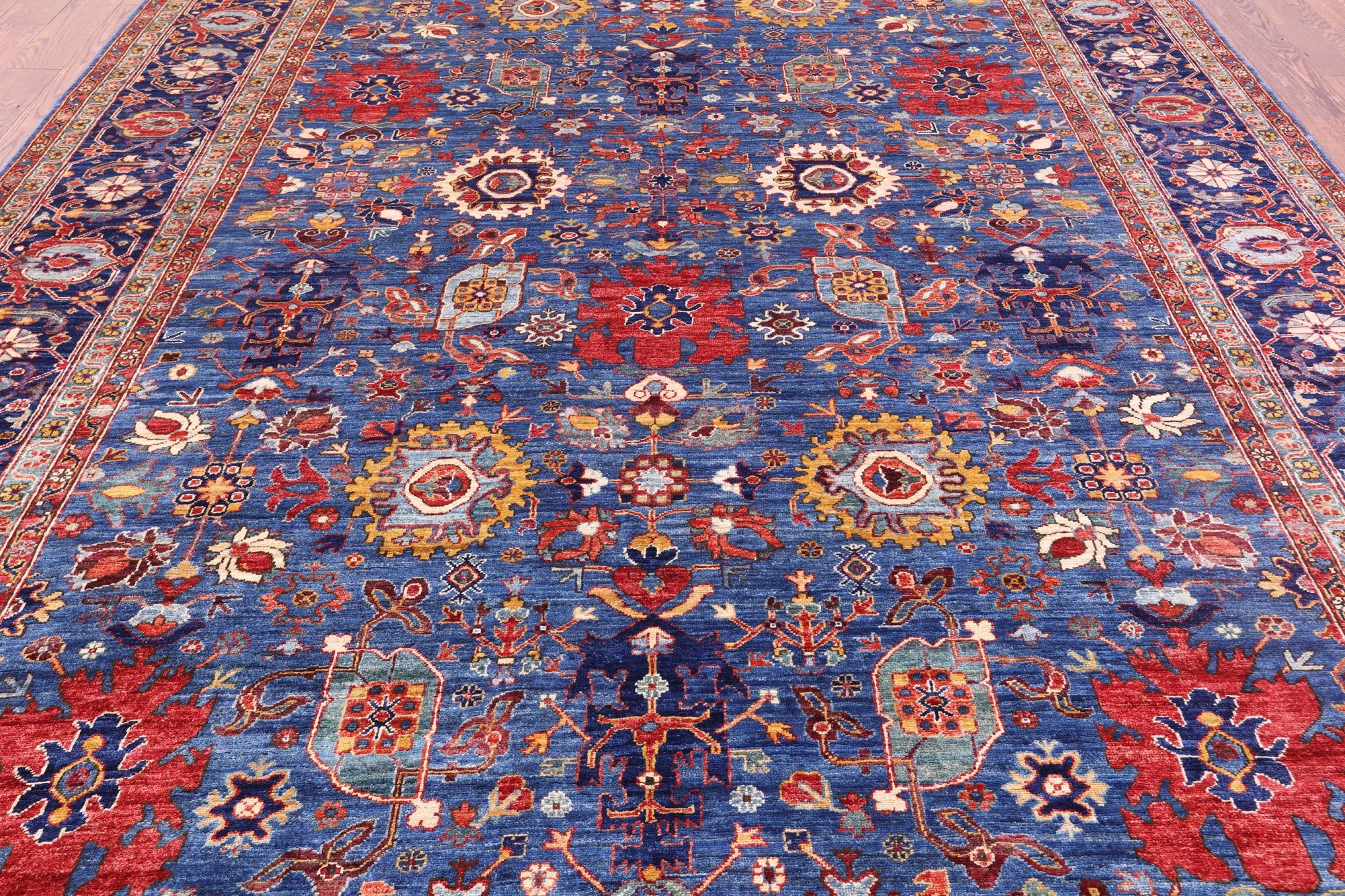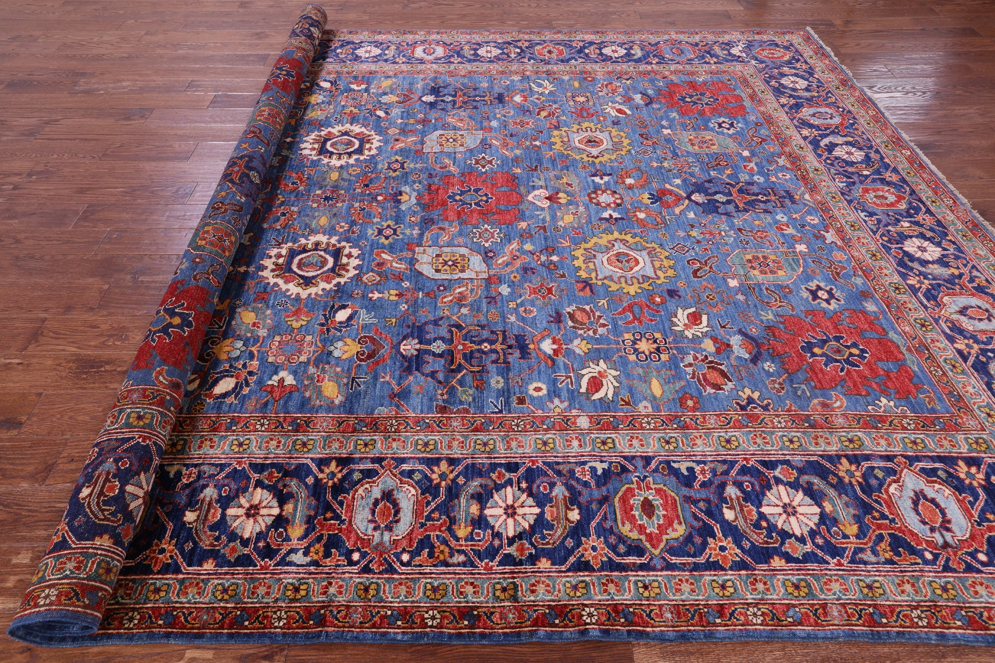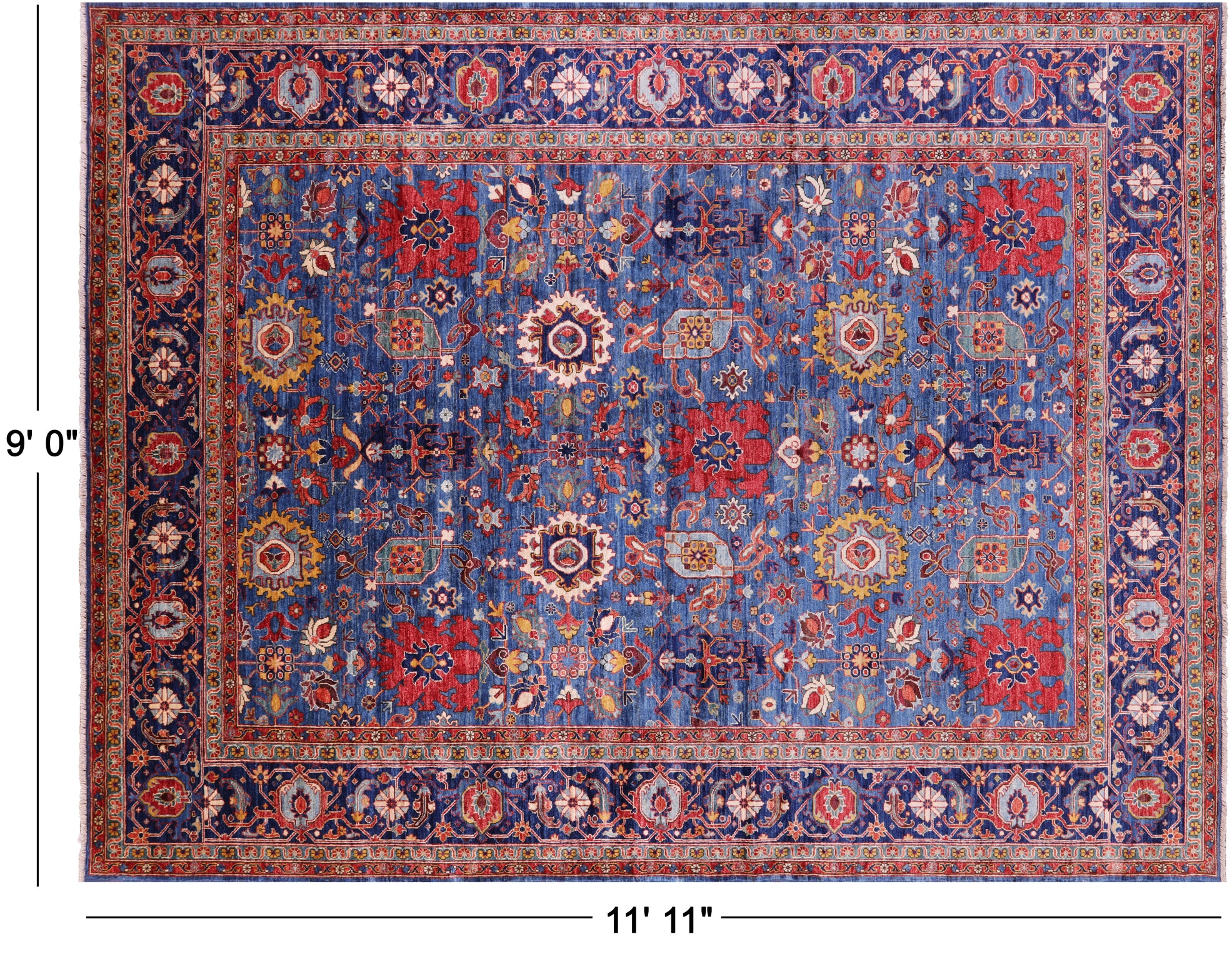 Blue Persian Heriz Serapi Hand Knotted Wool Rug 9' 0" X 11' 11" - Q23104 is backordered and will ship as soon as it is back in stock.