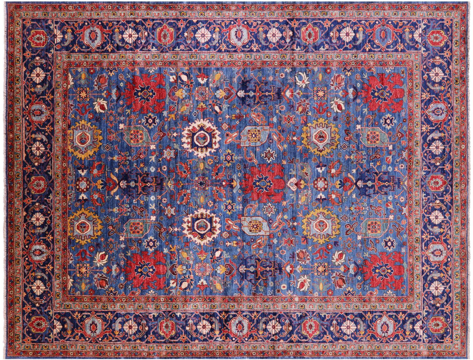 Blue Persian Heriz Serapi Hand Knotted Wool Rug 9' 0" X 11' 11" - Q23104