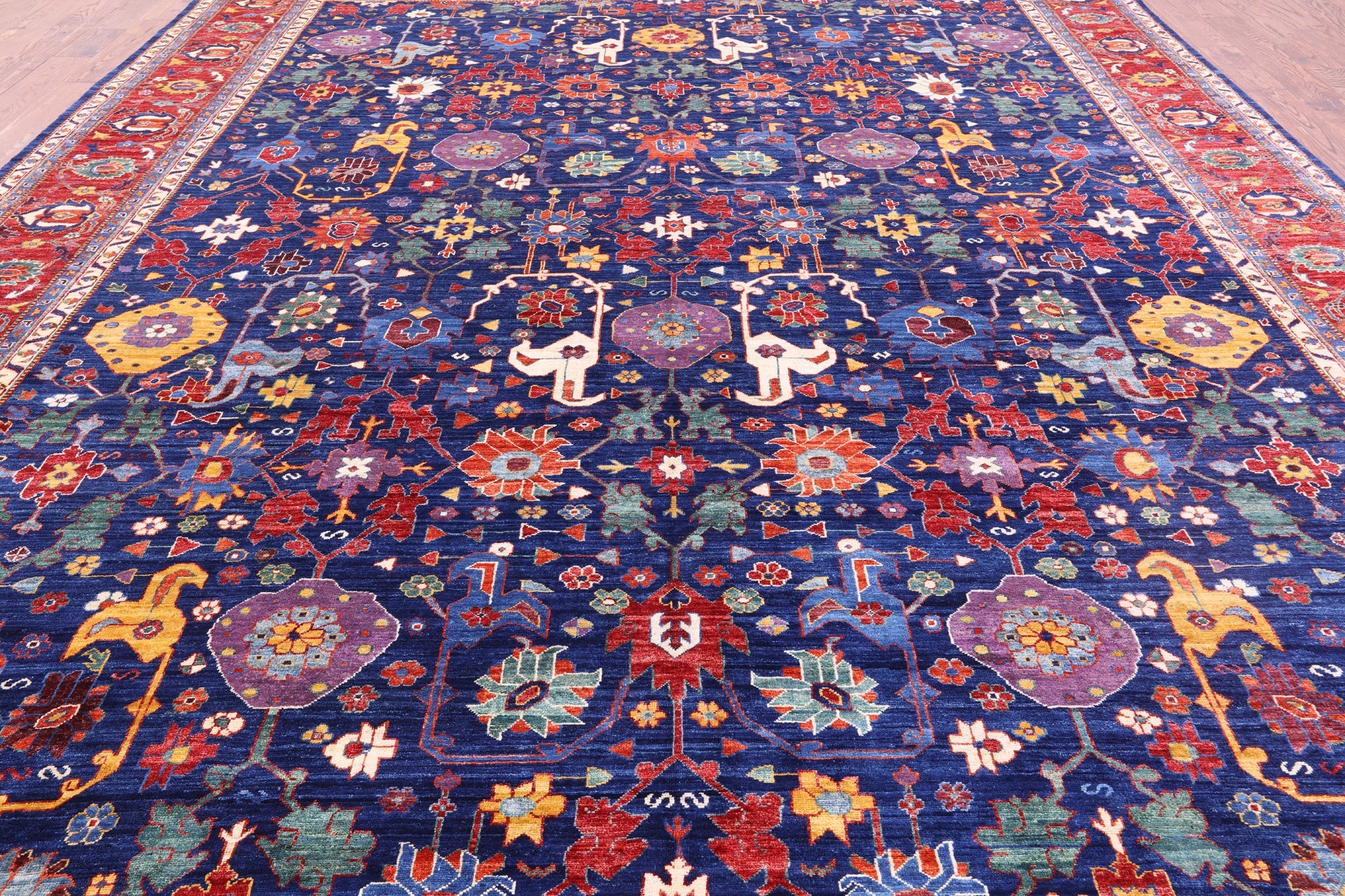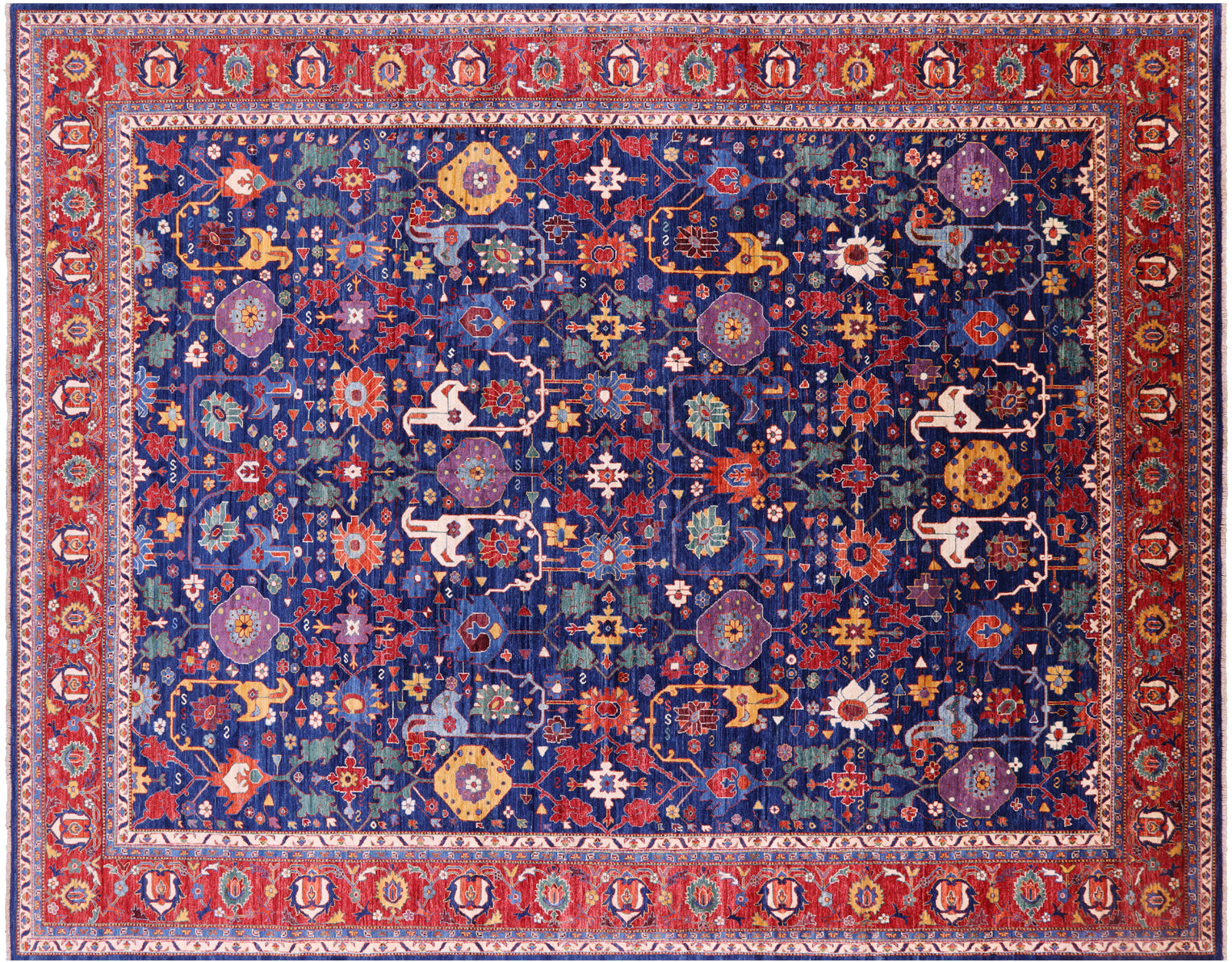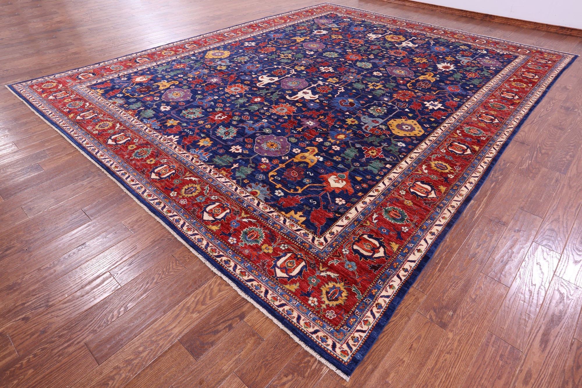 Blue 11' 9" X 15' 0" Persian Heriz Serapi Handmade Wool Rug - Q22750