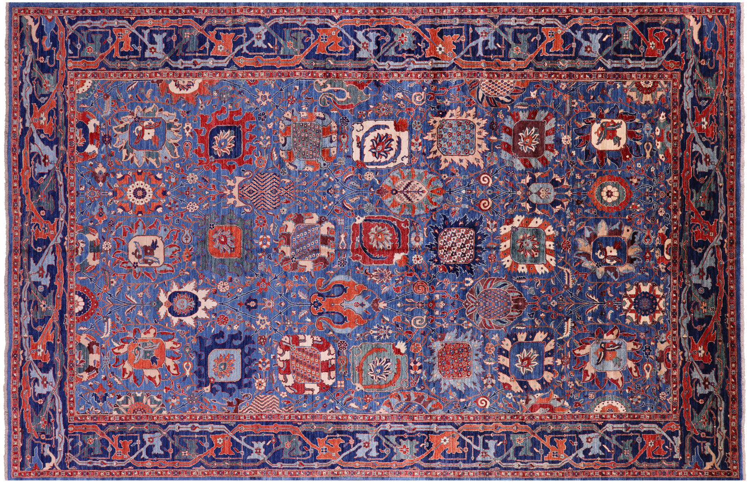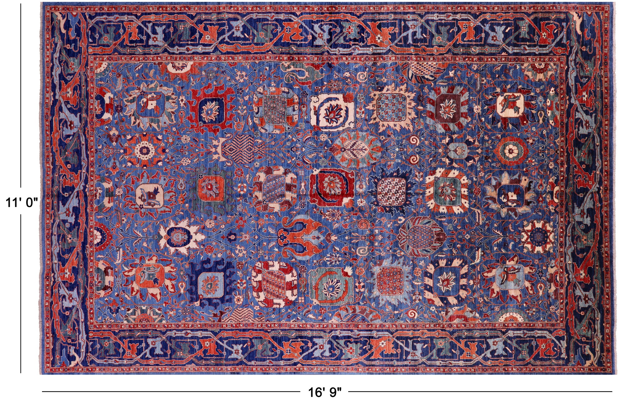 Blue Persian Heriz Serapi Handmade Wool Rug 11' 0" X 16' 9" - Q22819