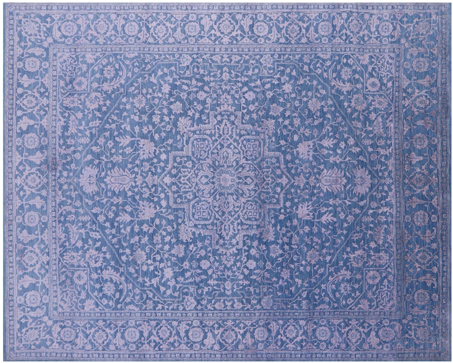 Blue Persian Heriz Serapi Wool & Silk Hand Knotted Rug 8' 2" X 10' 1" - Q13694
