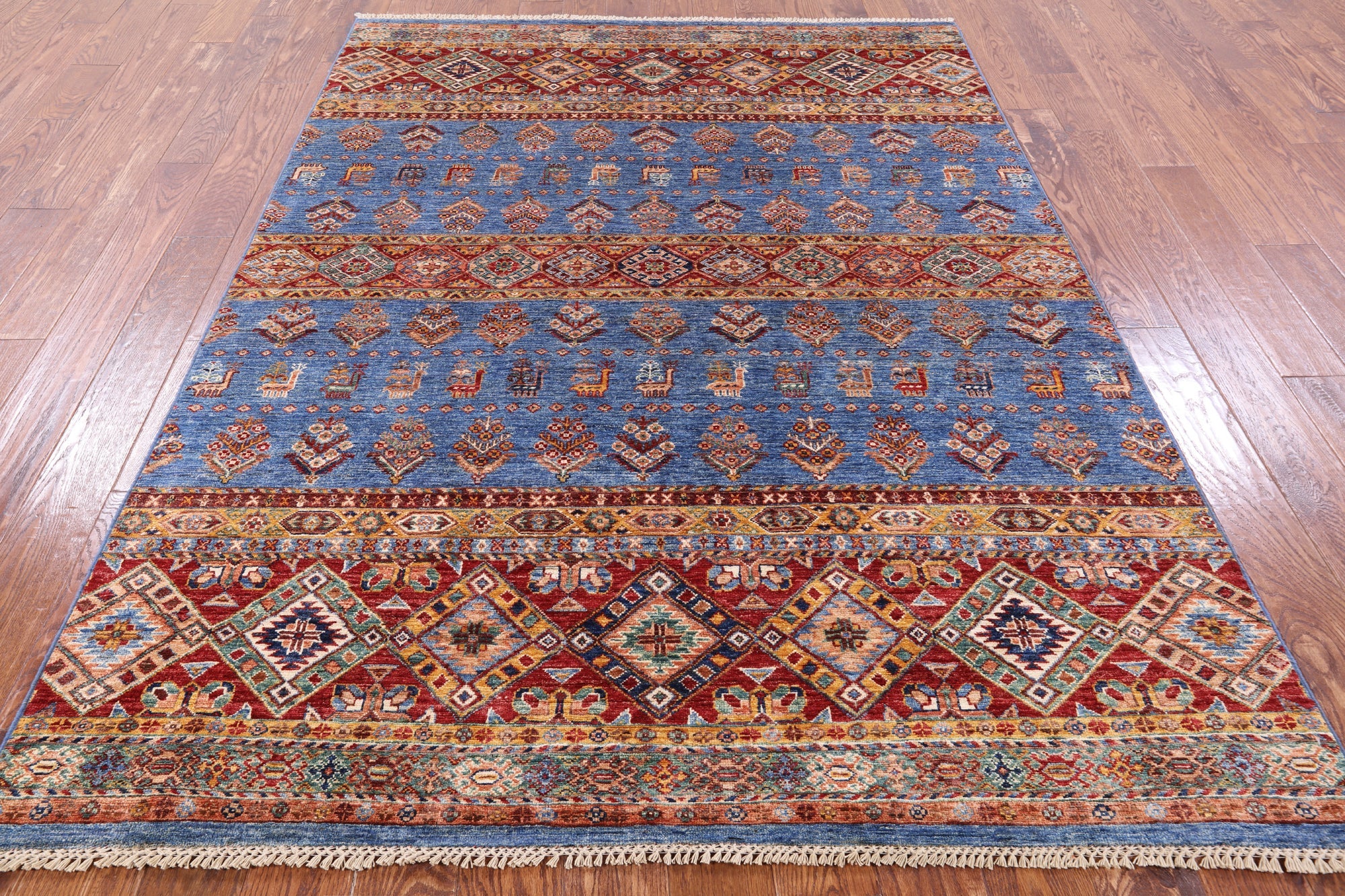 Blue Persian Tribal Gabbeh Handmade Rug 5' 8" X 7' 10" - Q7668