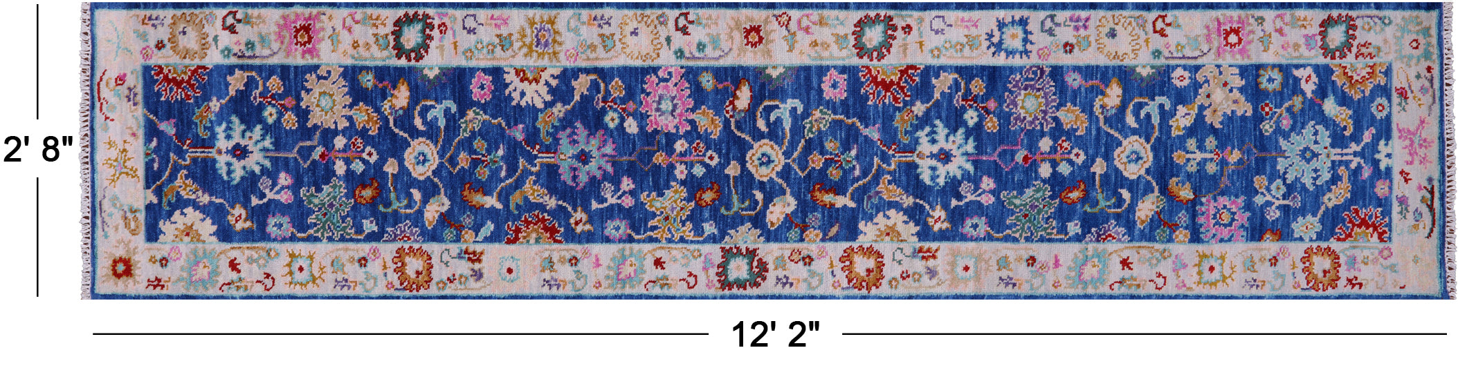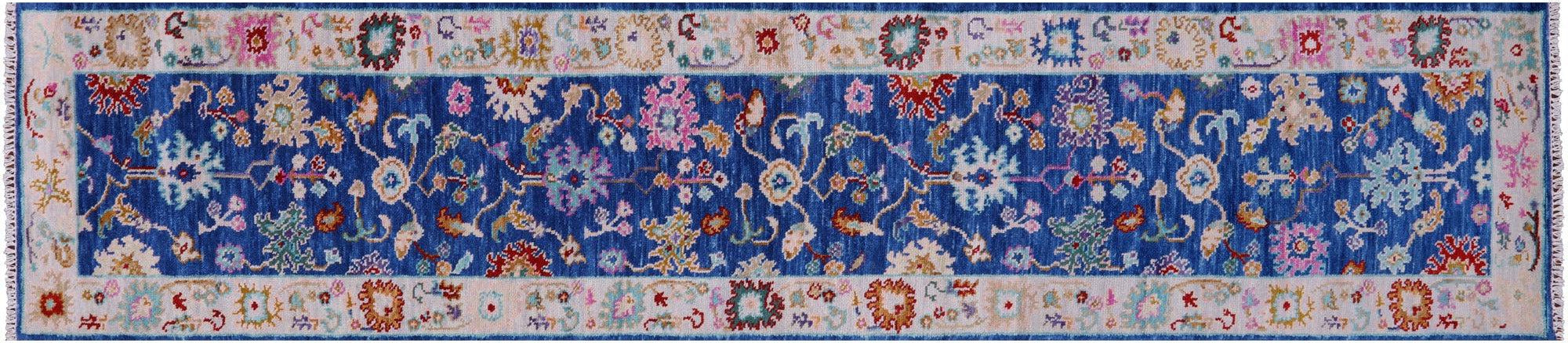 Blue 2' 8" X 12' 2" Runner Handmade Turkish Angora Oushak Wool Rug - Q15500 is backordered and will ship as soon as it is back in stock.