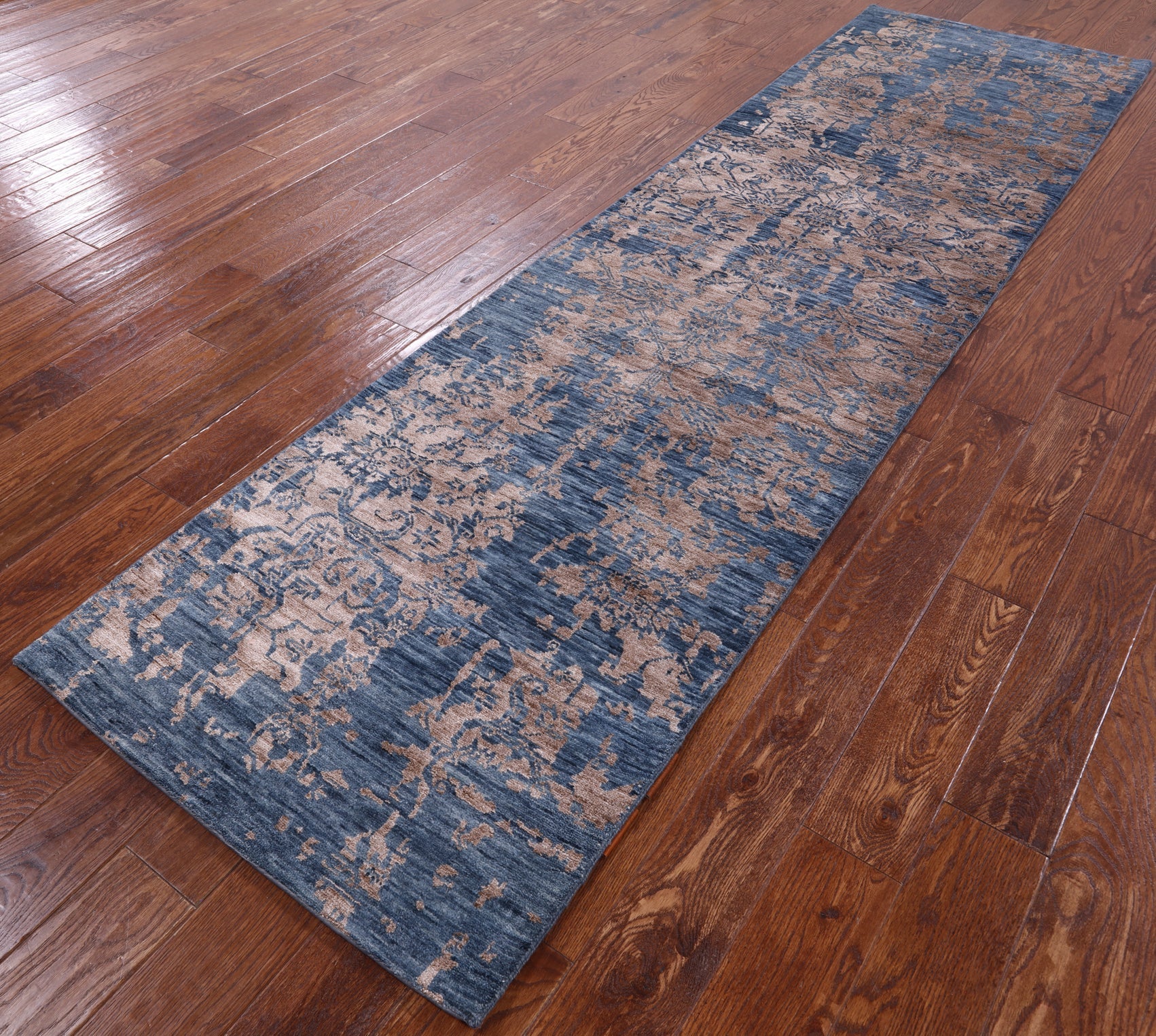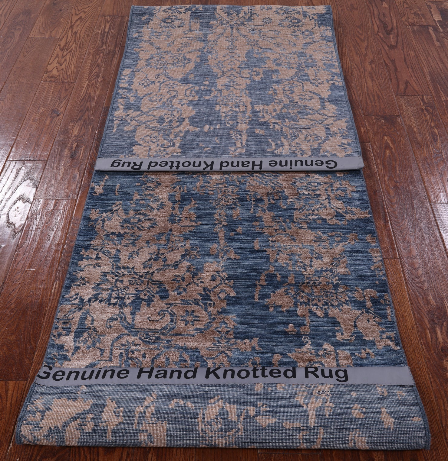 Blue Runner Wool & Silk Persian Modern Hand-Knotted Rug 2' 8" X 9' 11" - Q6305