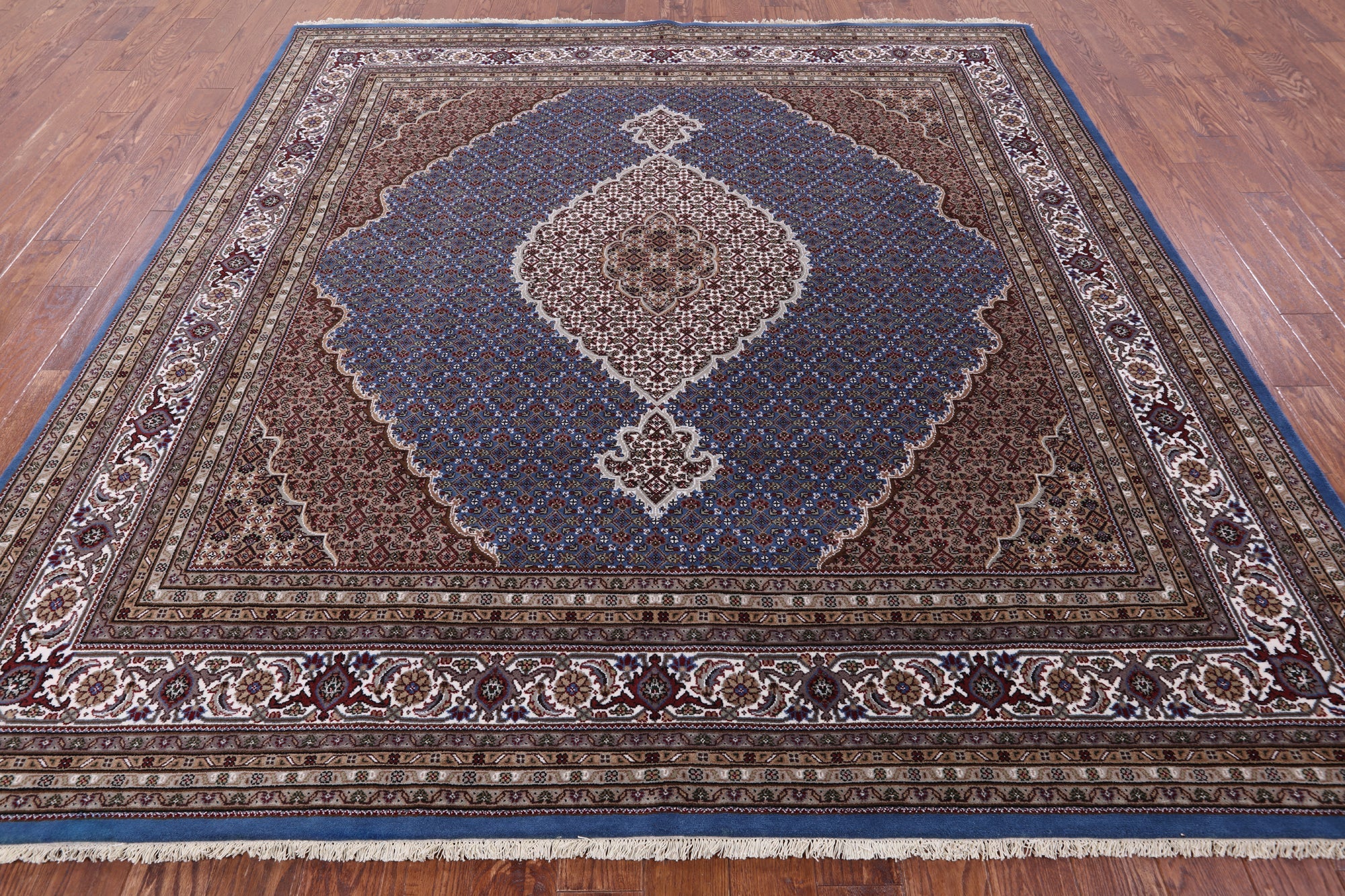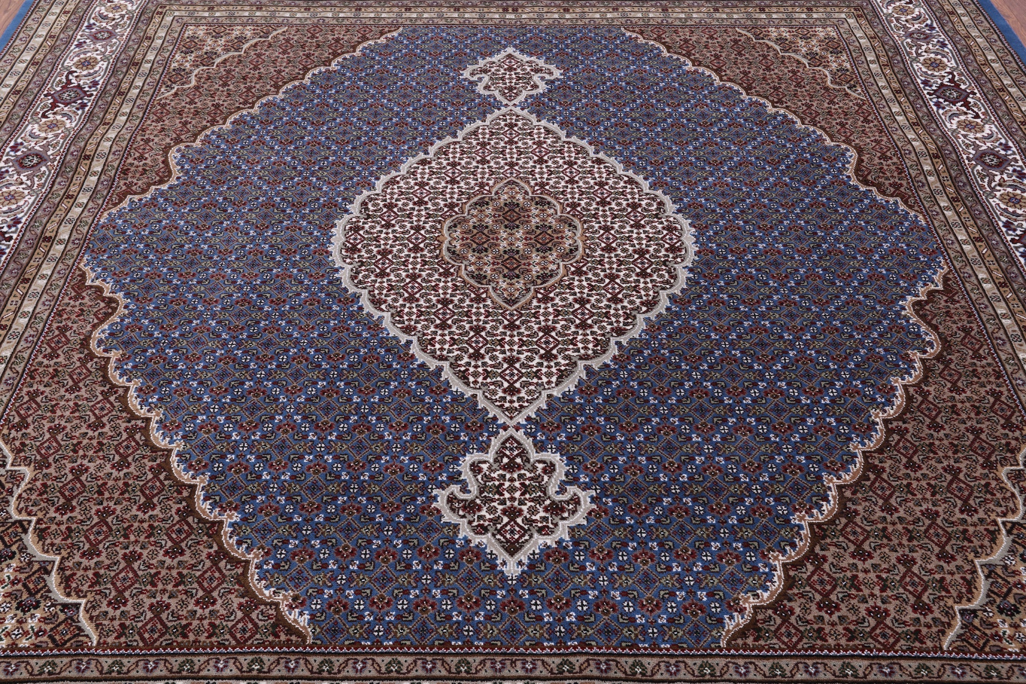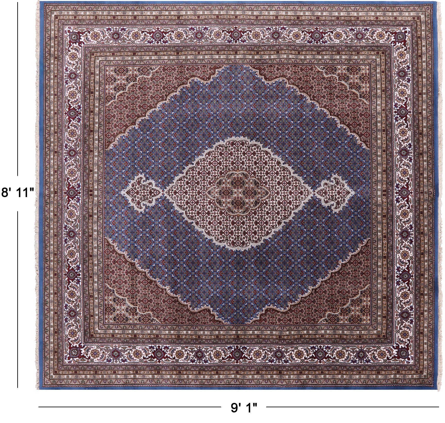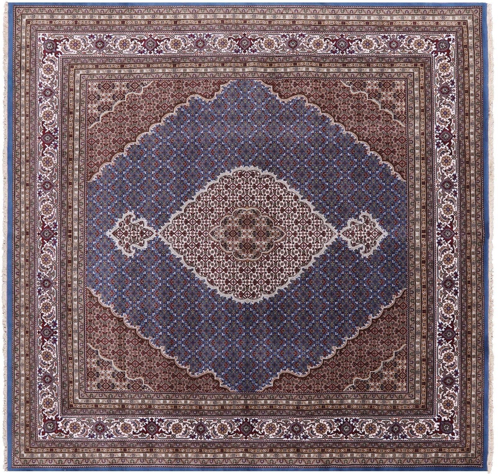 Blue 9' Square Persian Tabriz Wool & Silk Hand Knotted Rug - Q13012