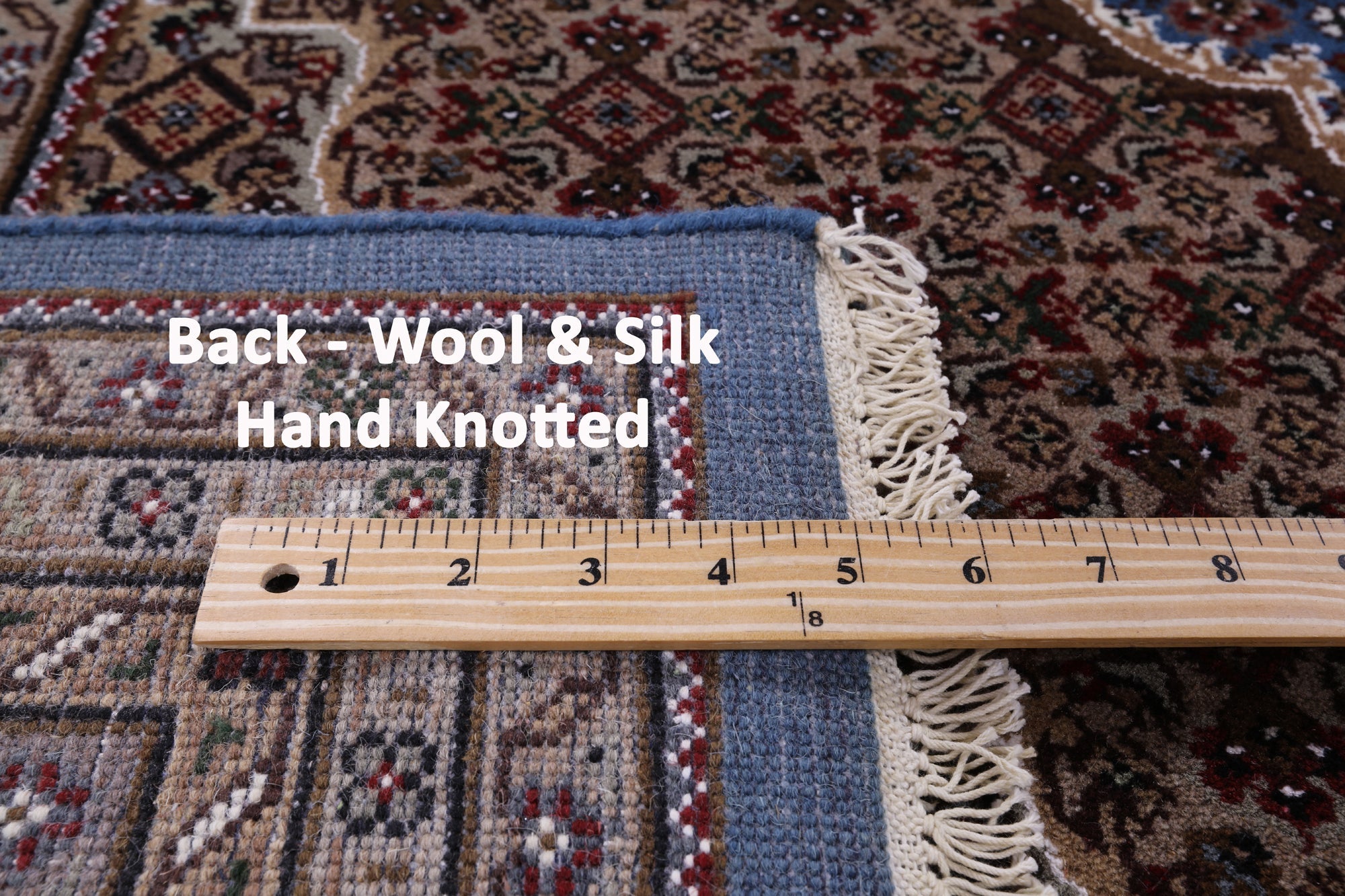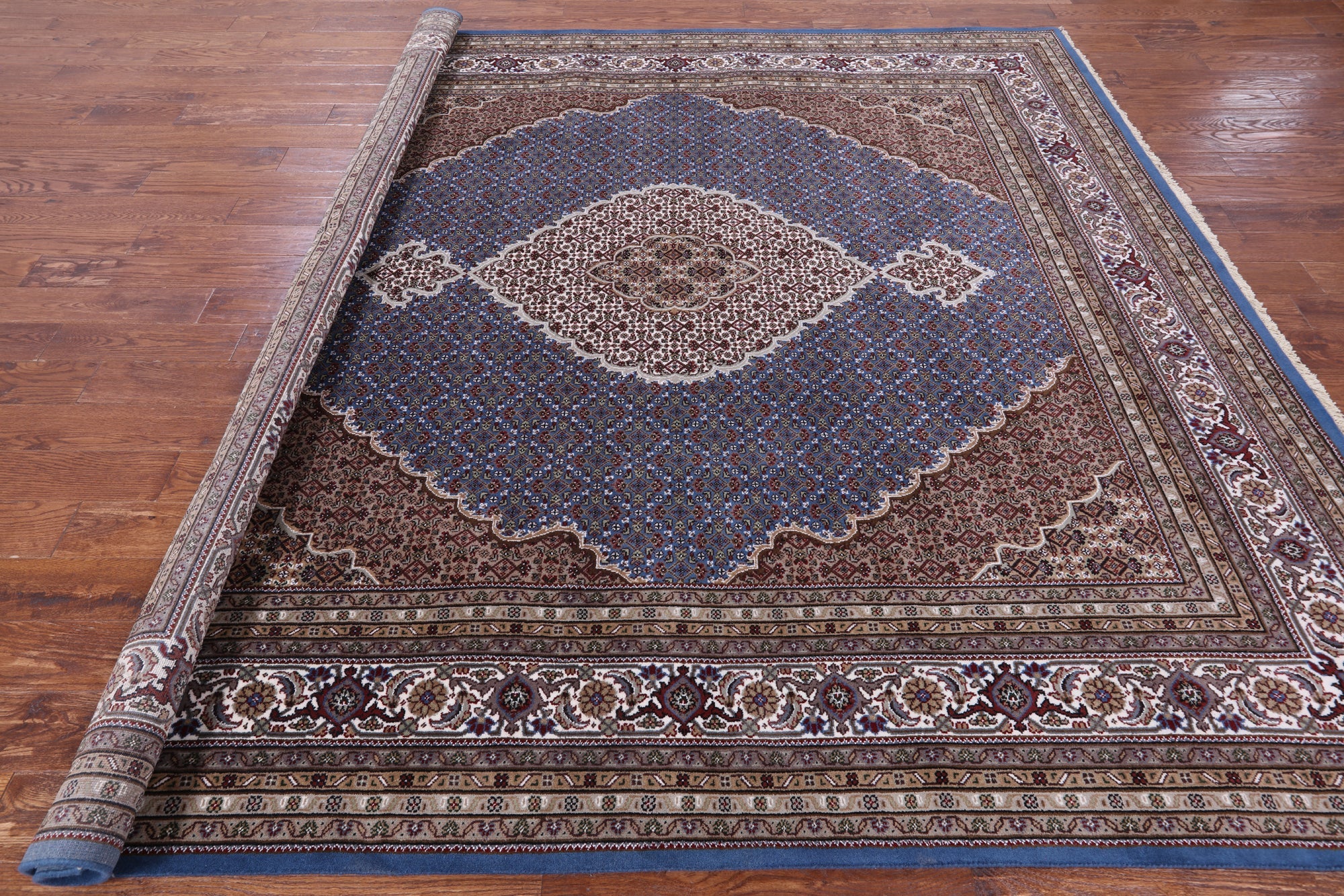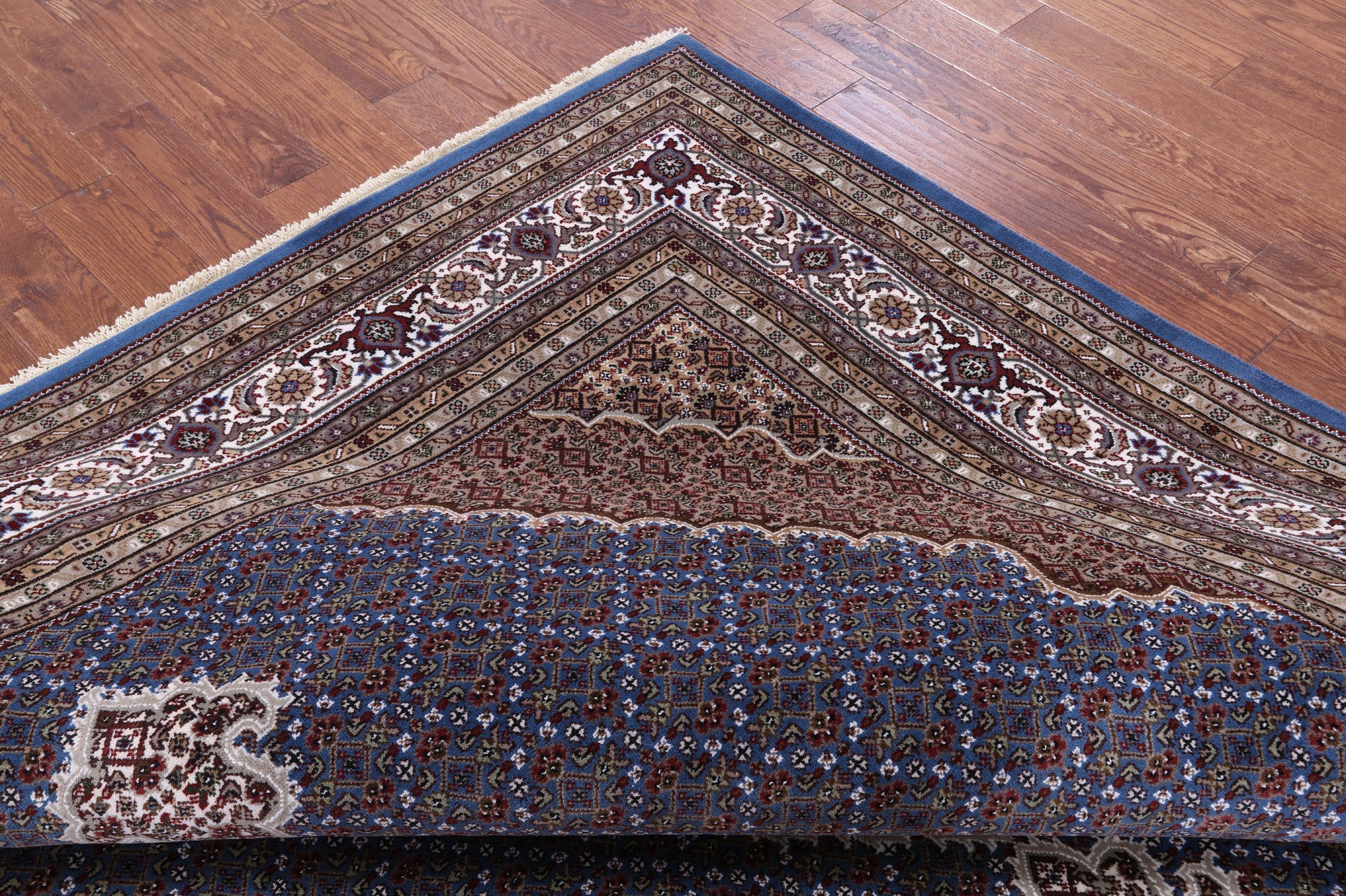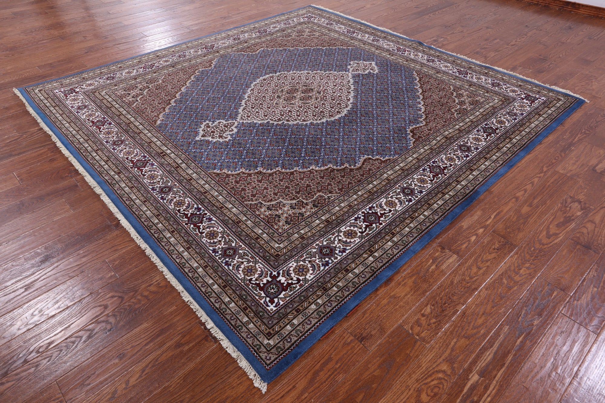 Blue 9' Square Persian Tabriz Wool & Silk Hand Knotted Rug - Q13012
