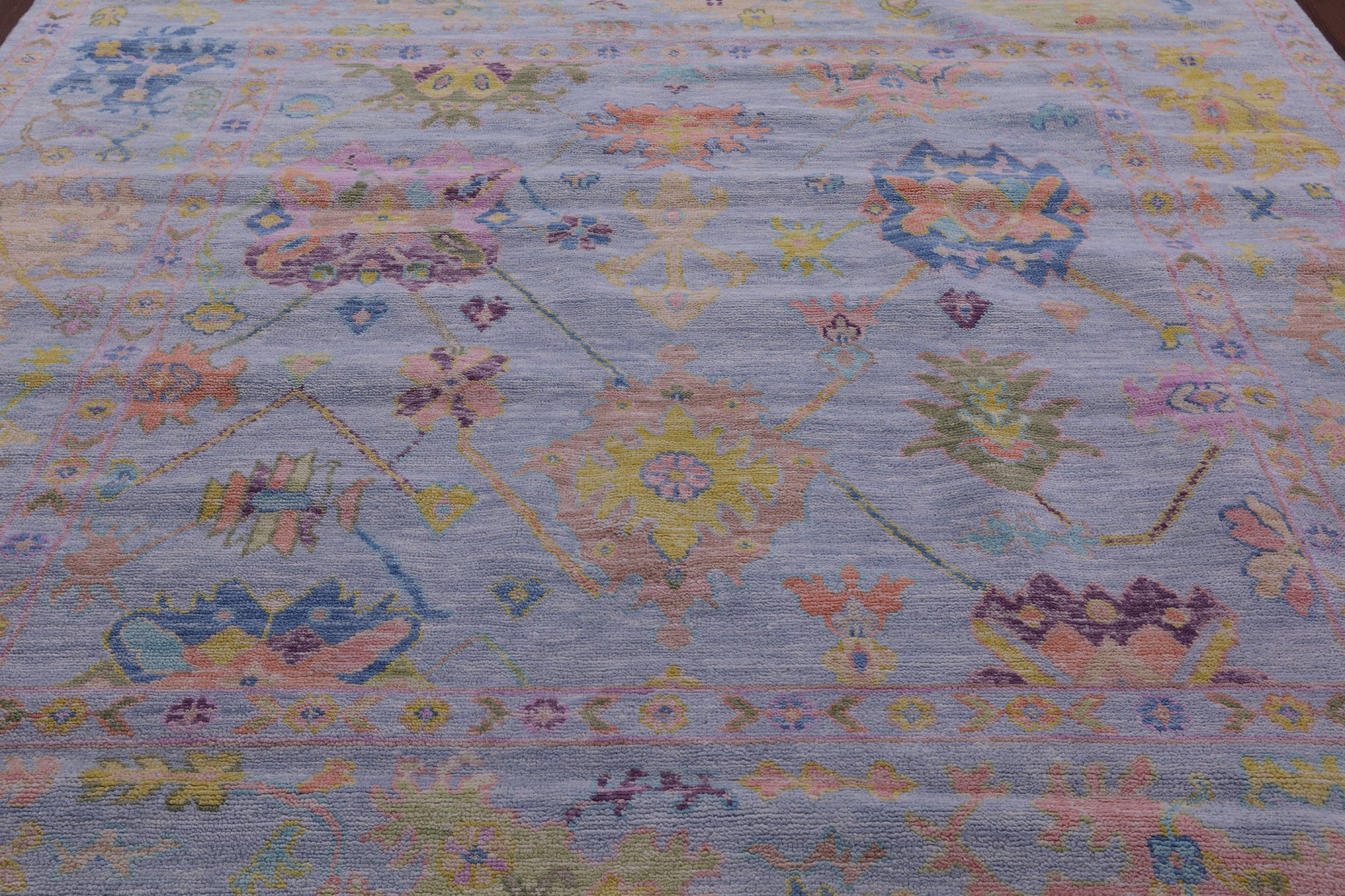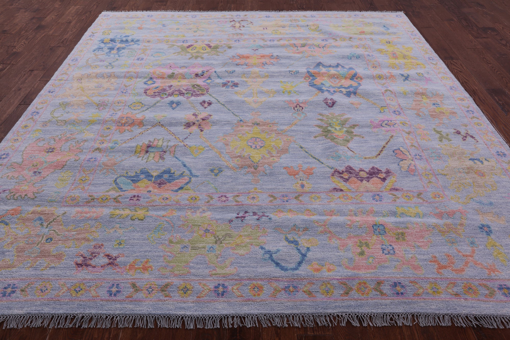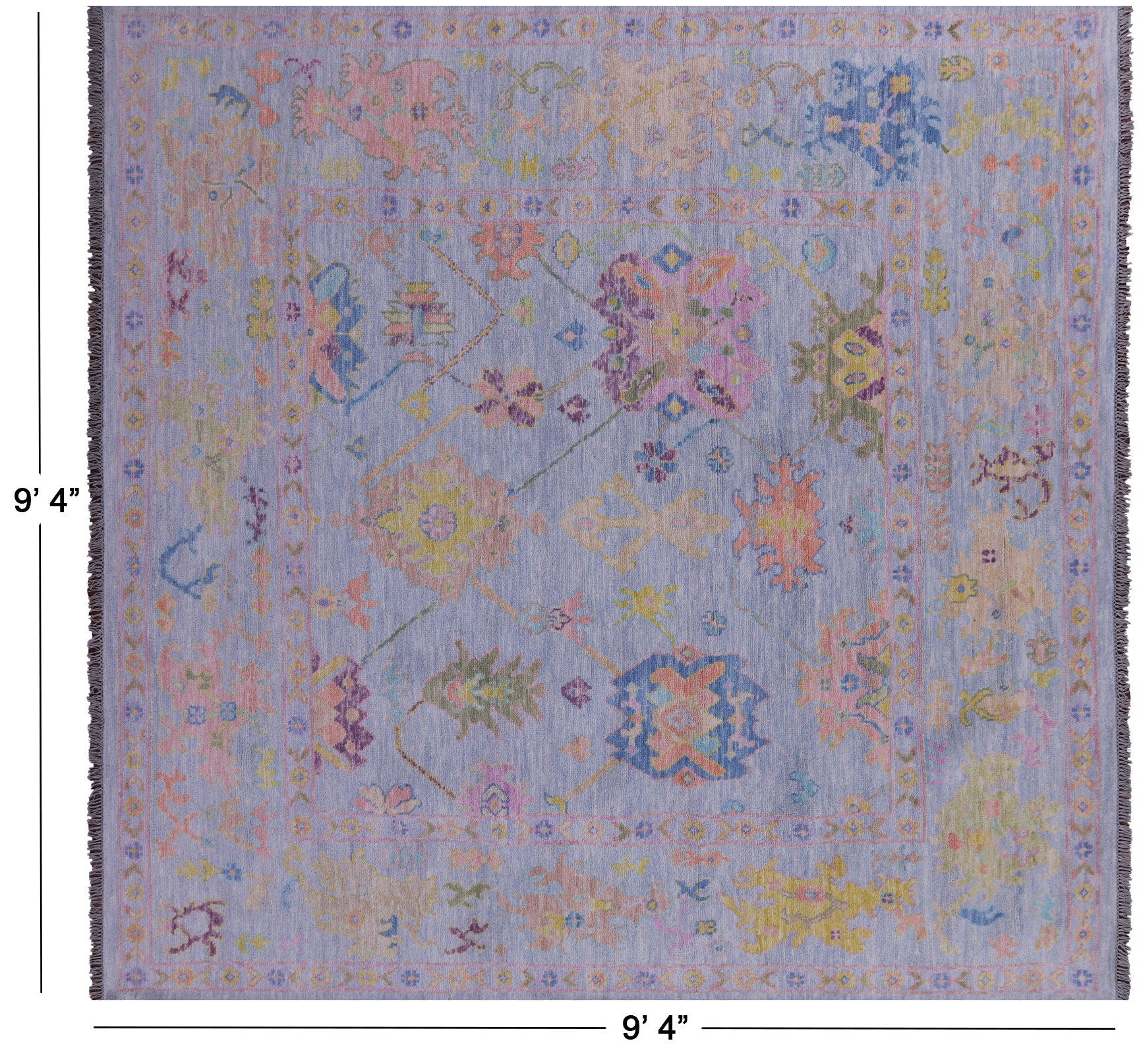 Blue 9' Square Turkish Angora Oushak Hand Knotted Rug - Q21316