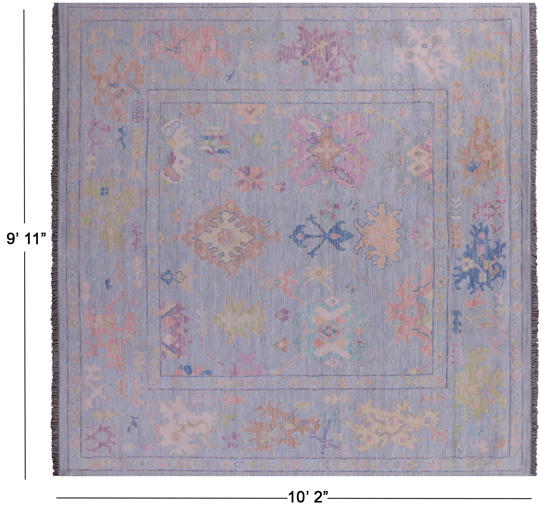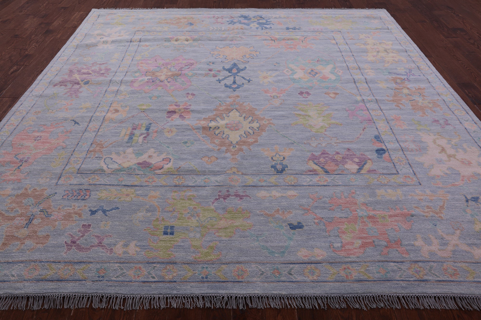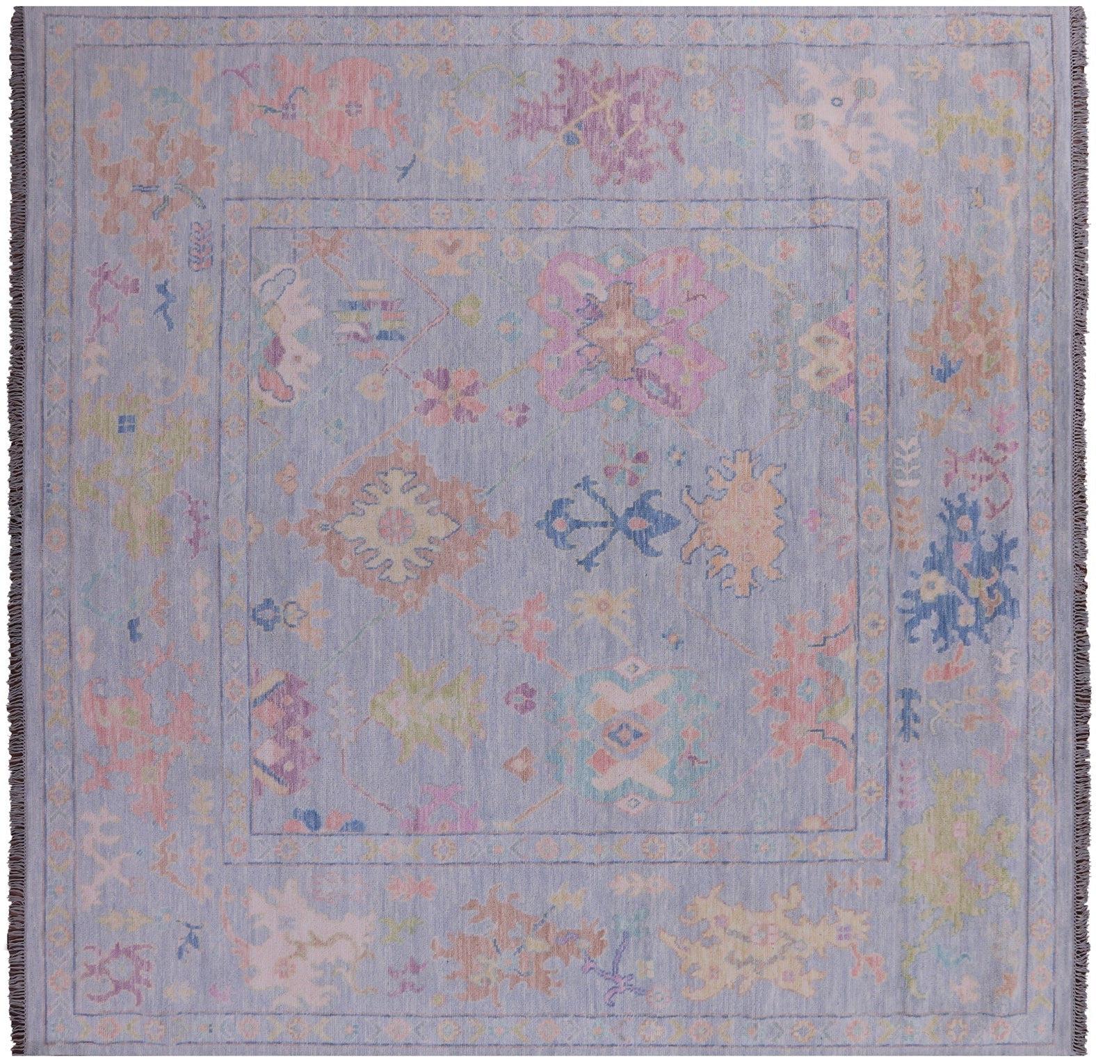 Blue 10' Square Turkish Angora Oushak Hand Knotted Rug - Q22342