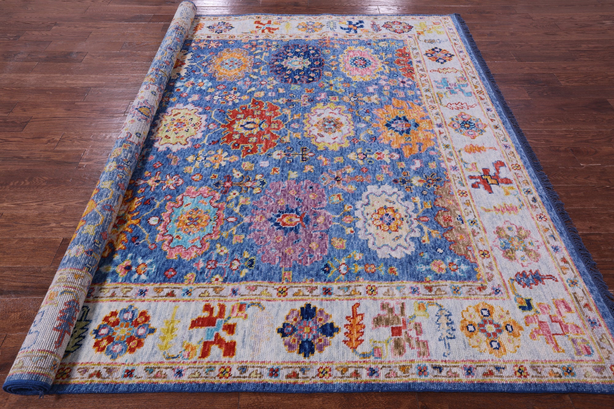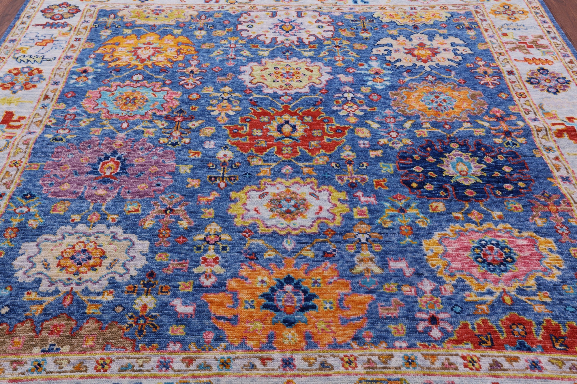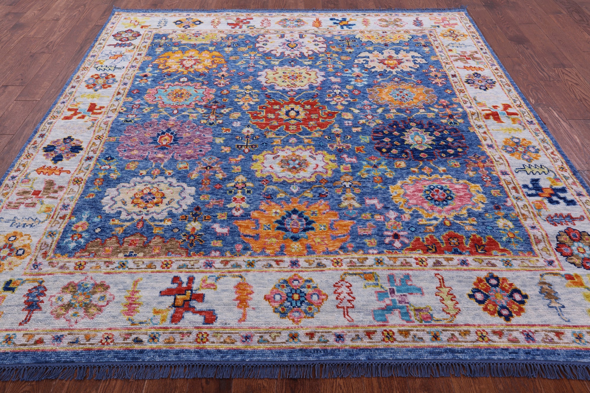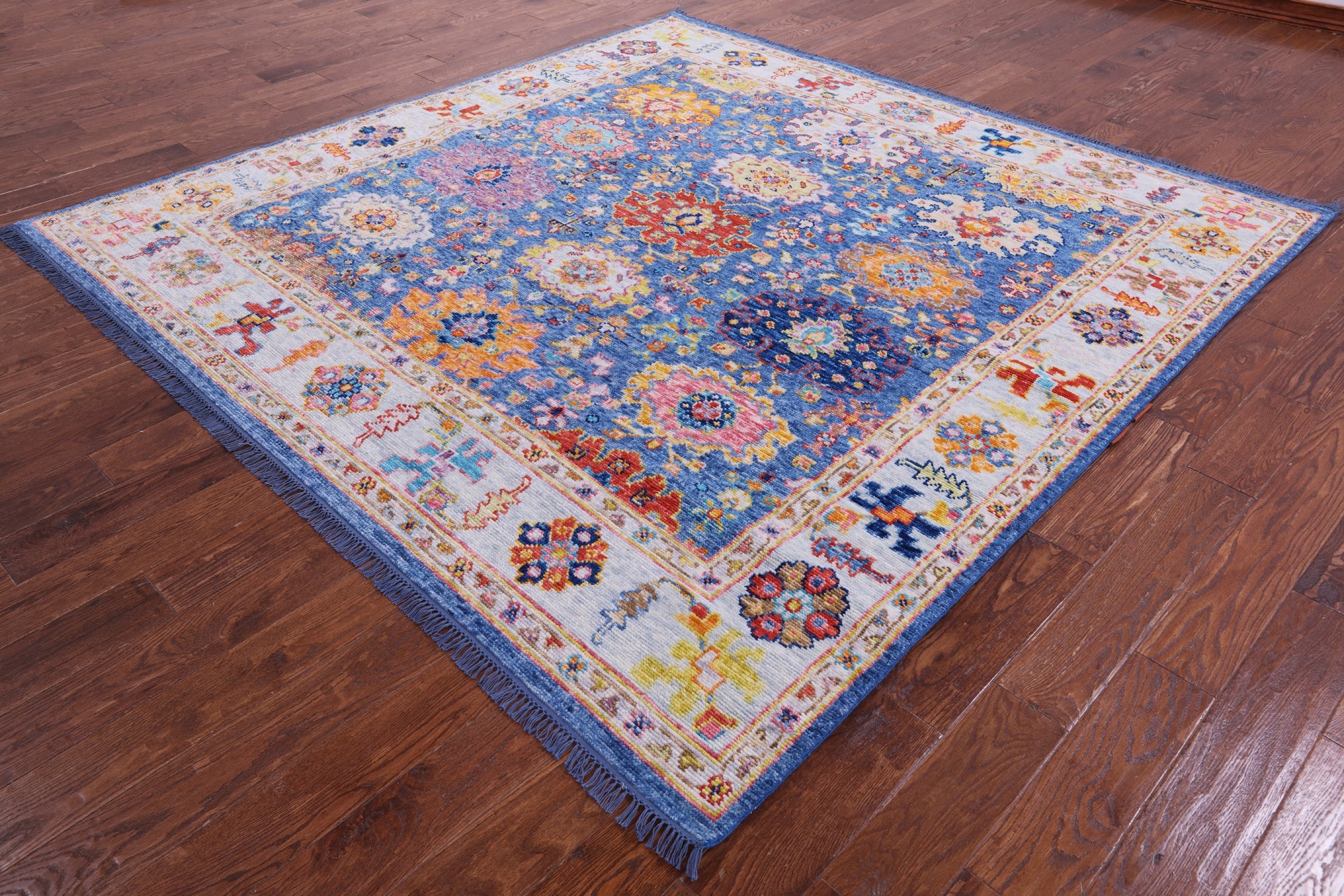 Blue 8' Square Turkish Angora Oushak Hand-Knotted Wool Rug - Q21322