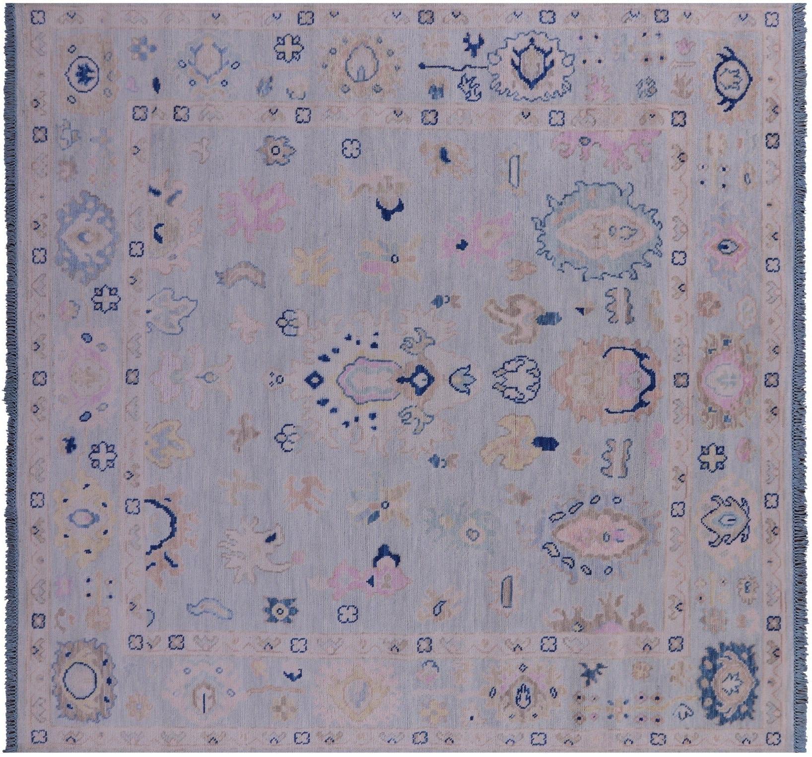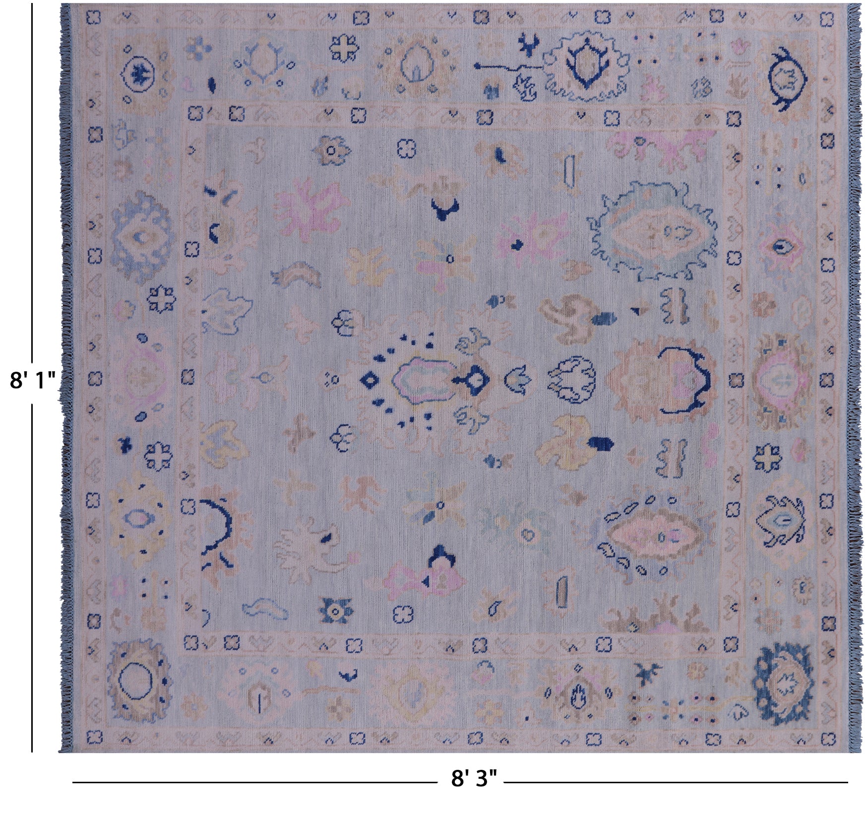 Blue 8' Square Turkish Angora Oushak Handmade Rug - Q22341