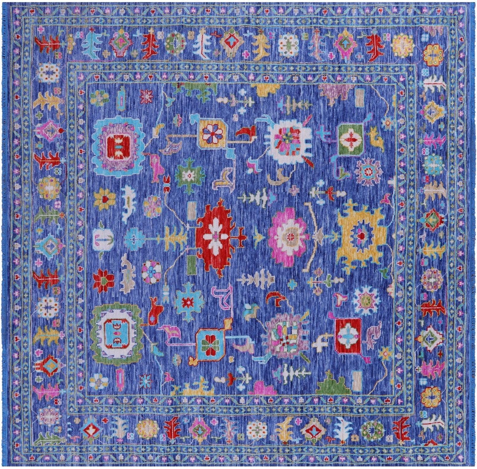 Blue 11' Square Turkish Angora Oushak Handmade Wool Rug - Q20055