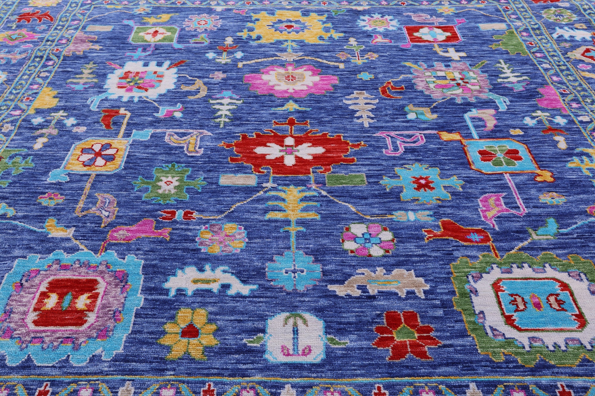Blue 11' Square Turkish Angora Oushak Handmade Wool Rug - Q20055 is backordered and will ship as soon as it is back in stock.