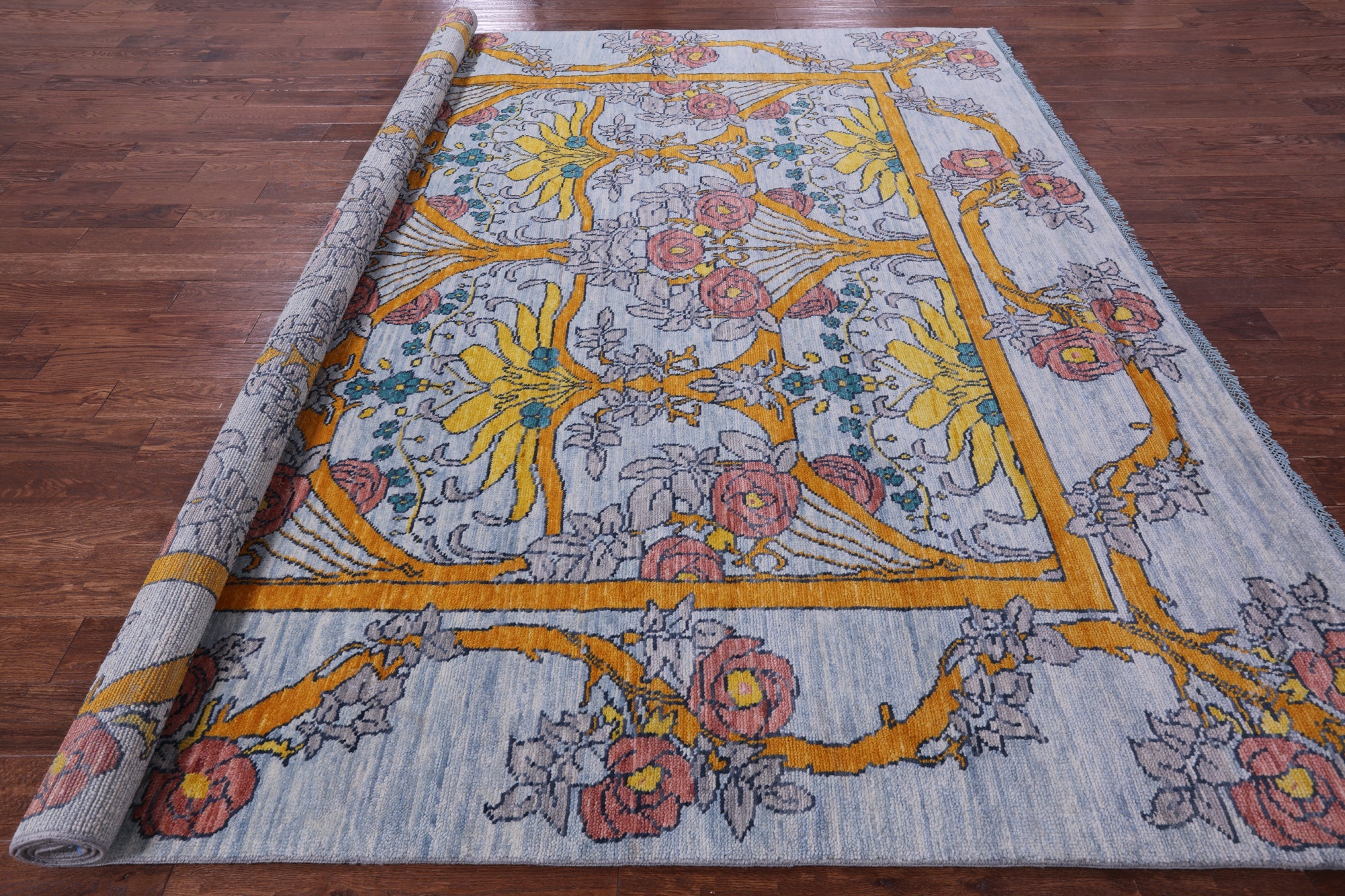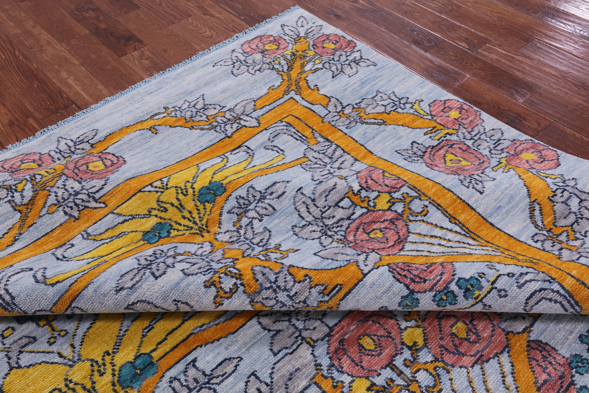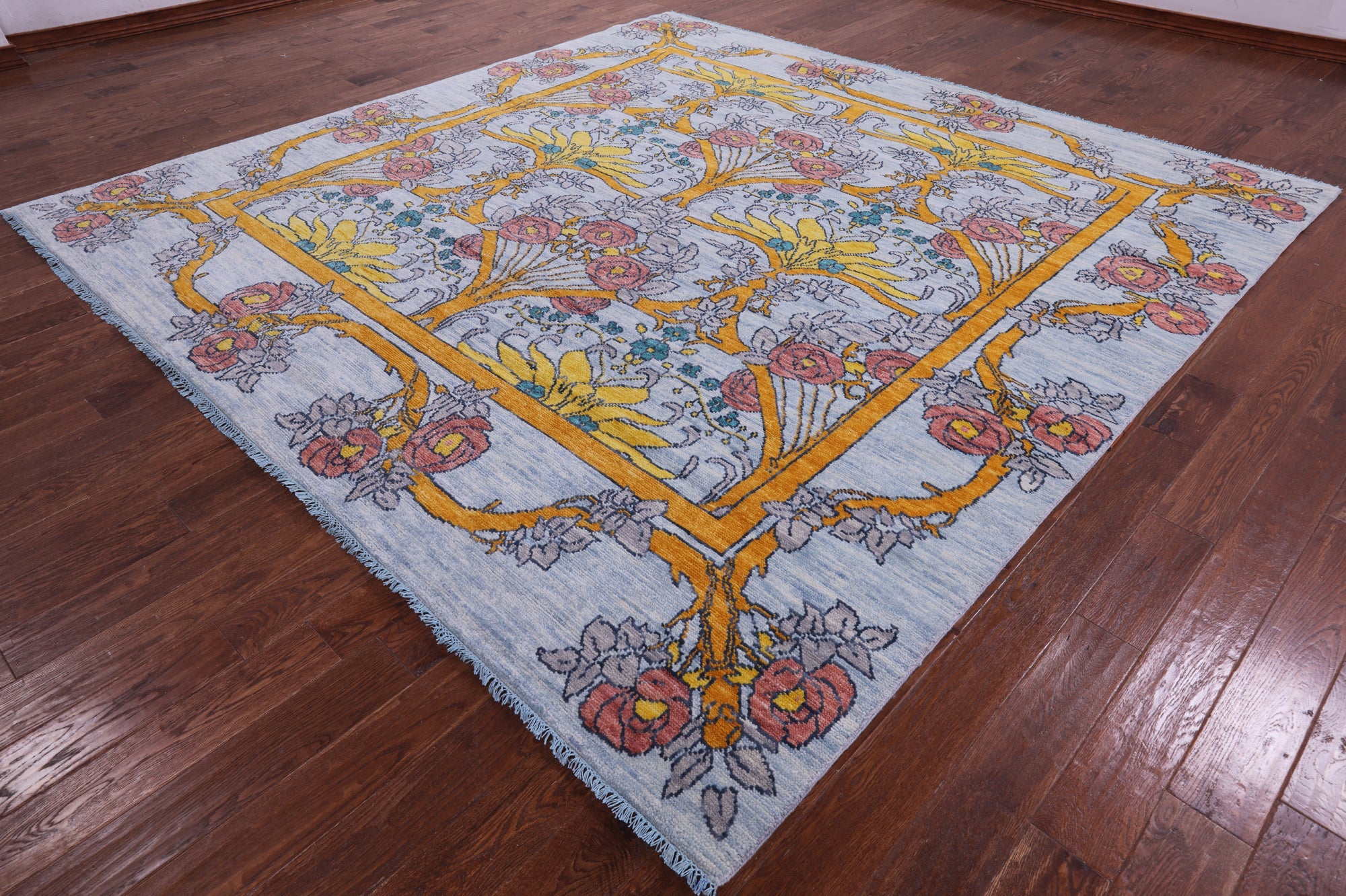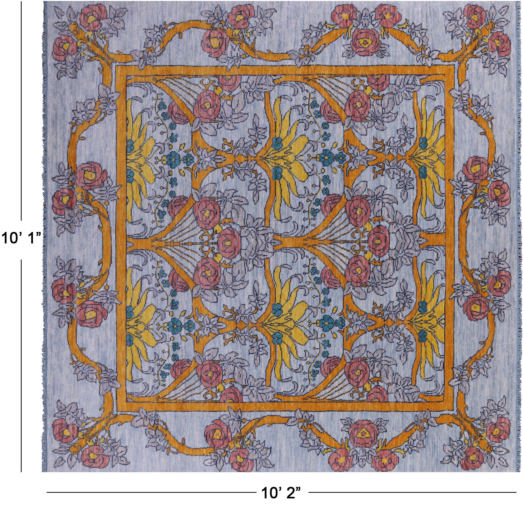 Blue 10' Square William Morris Handmade Wool Rug - Q19050