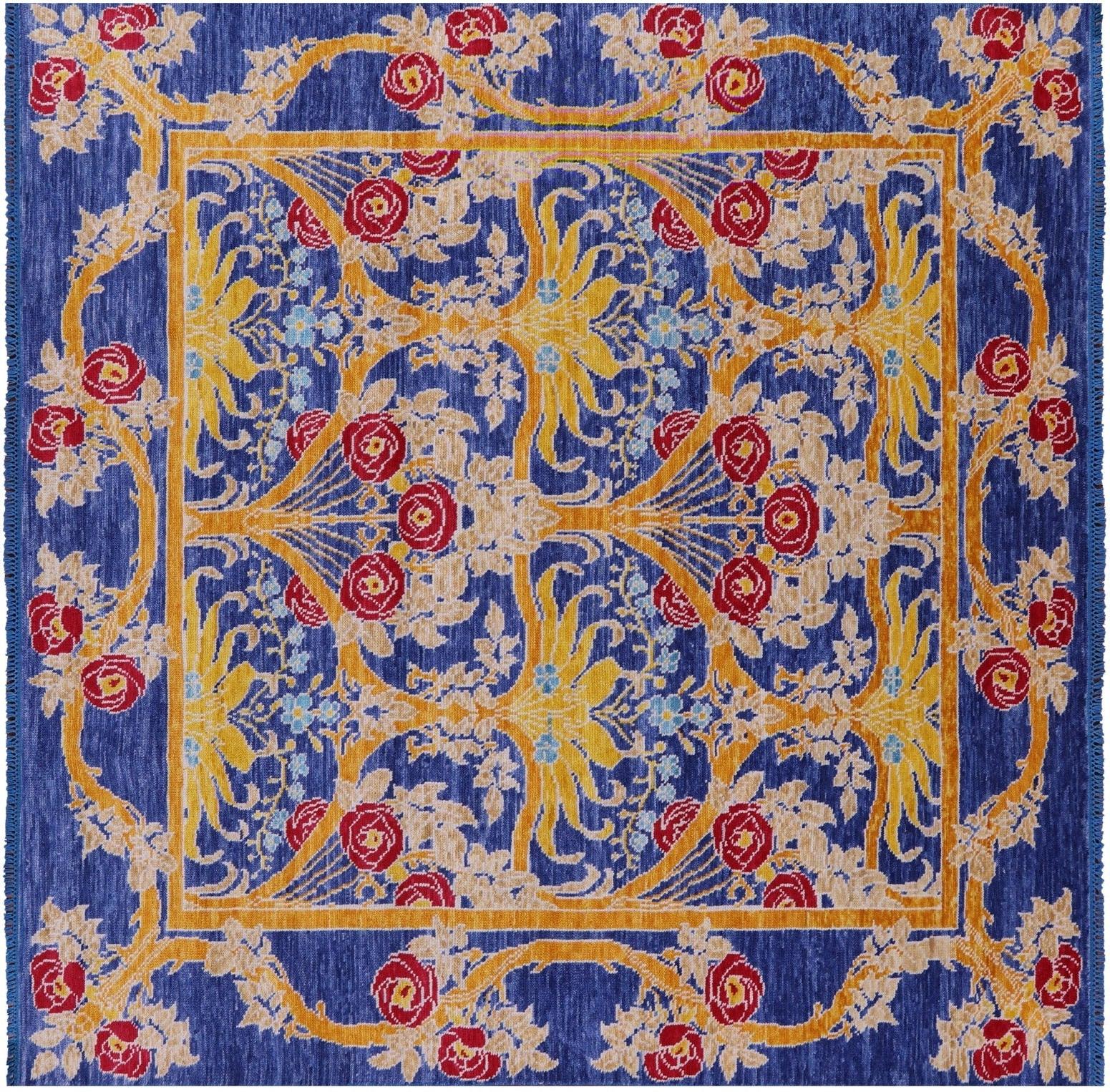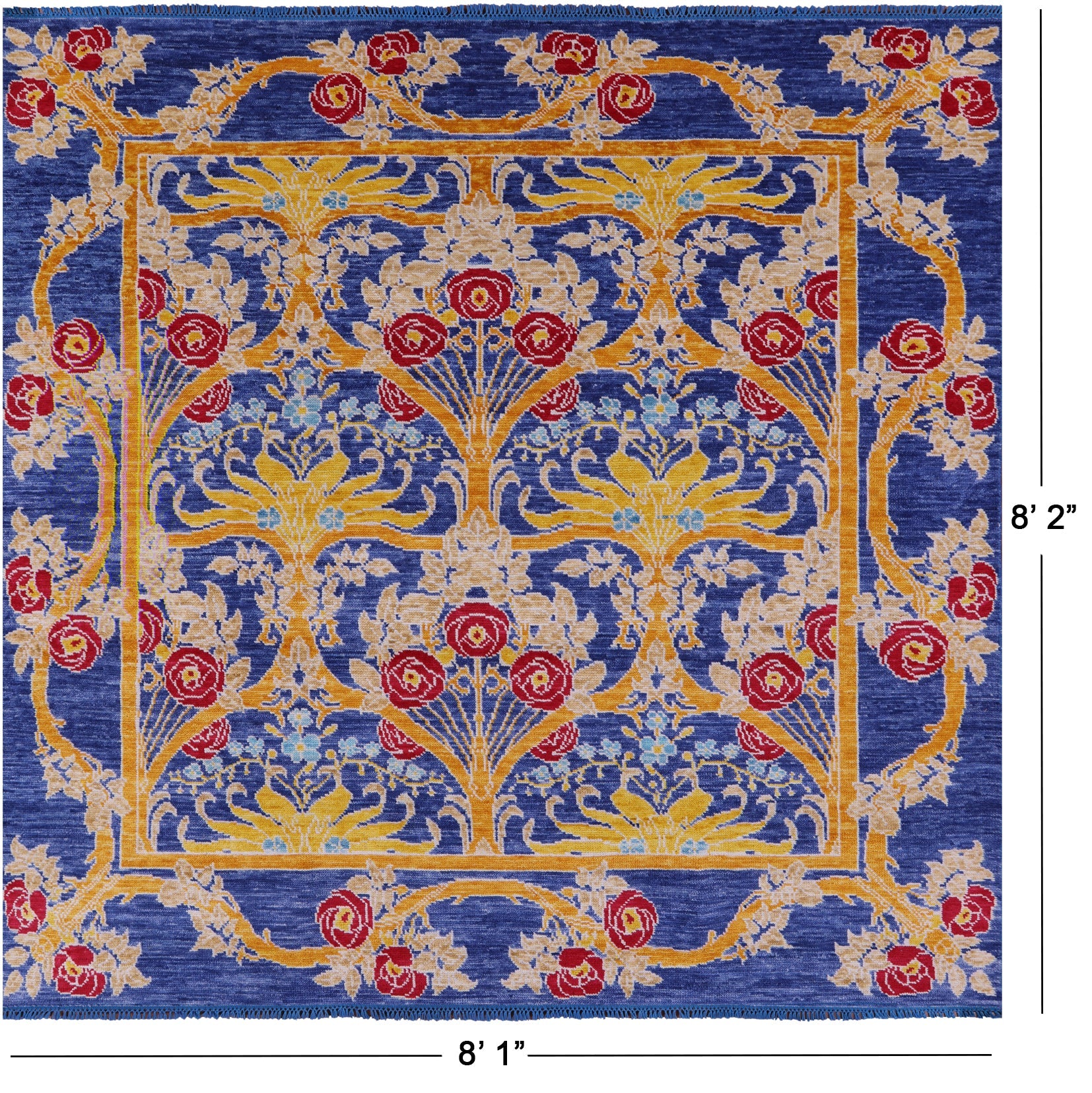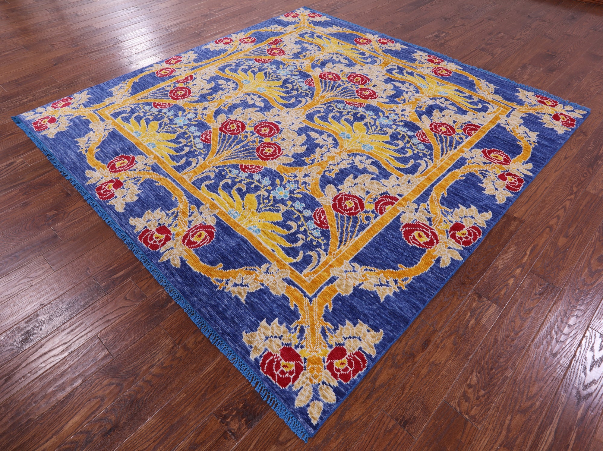 Blue 8' Square William Morris Handmade Wool Rug - Q21414