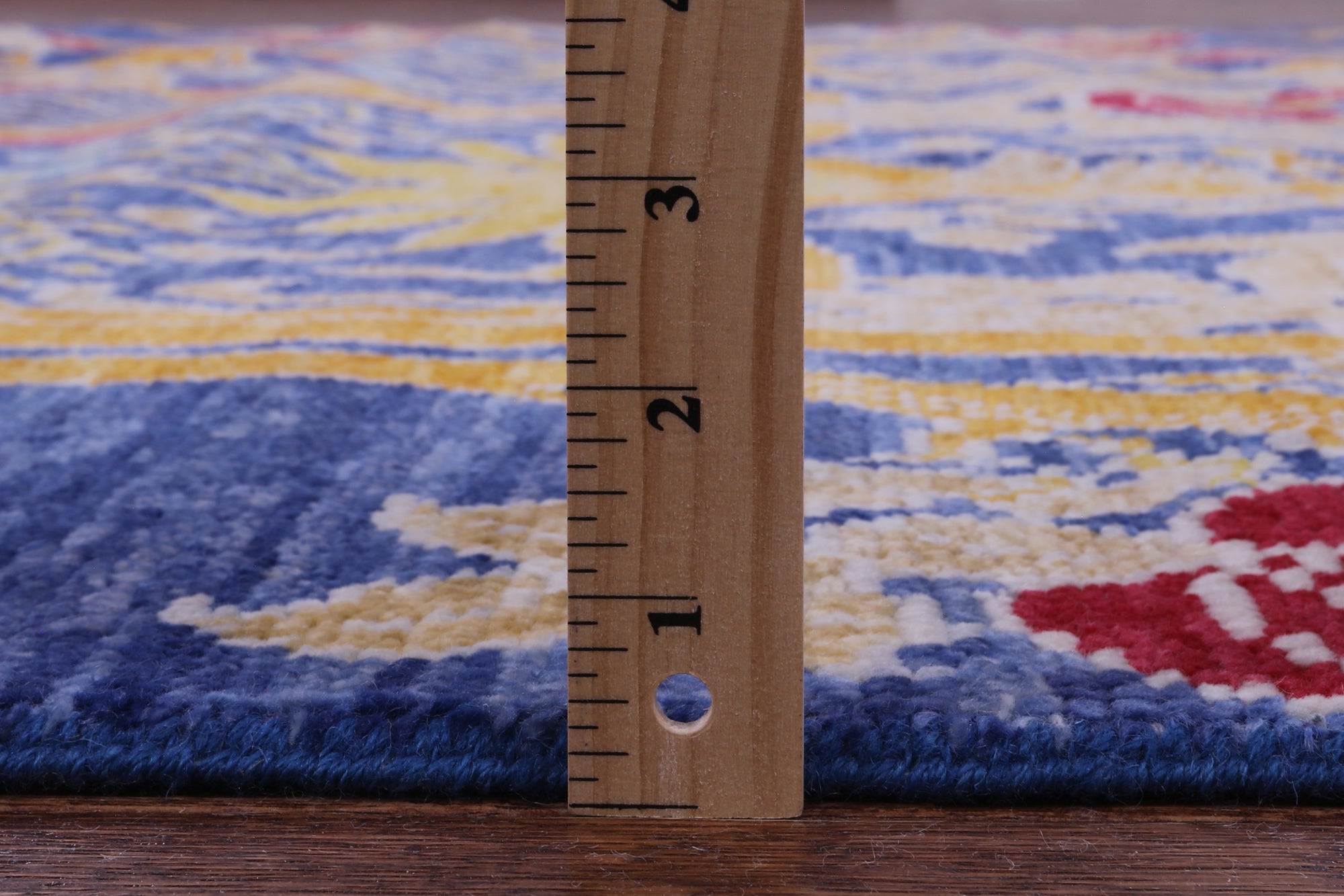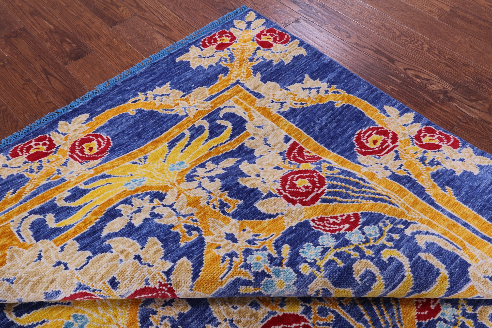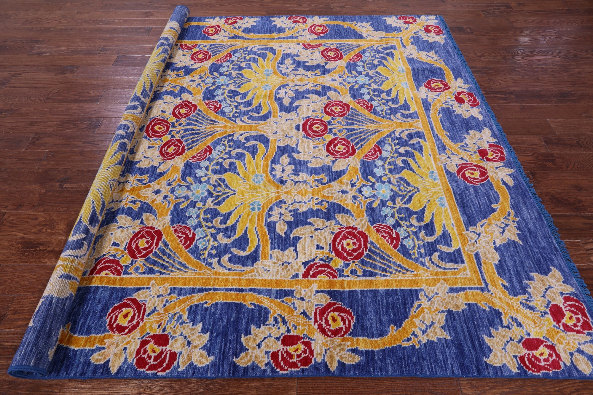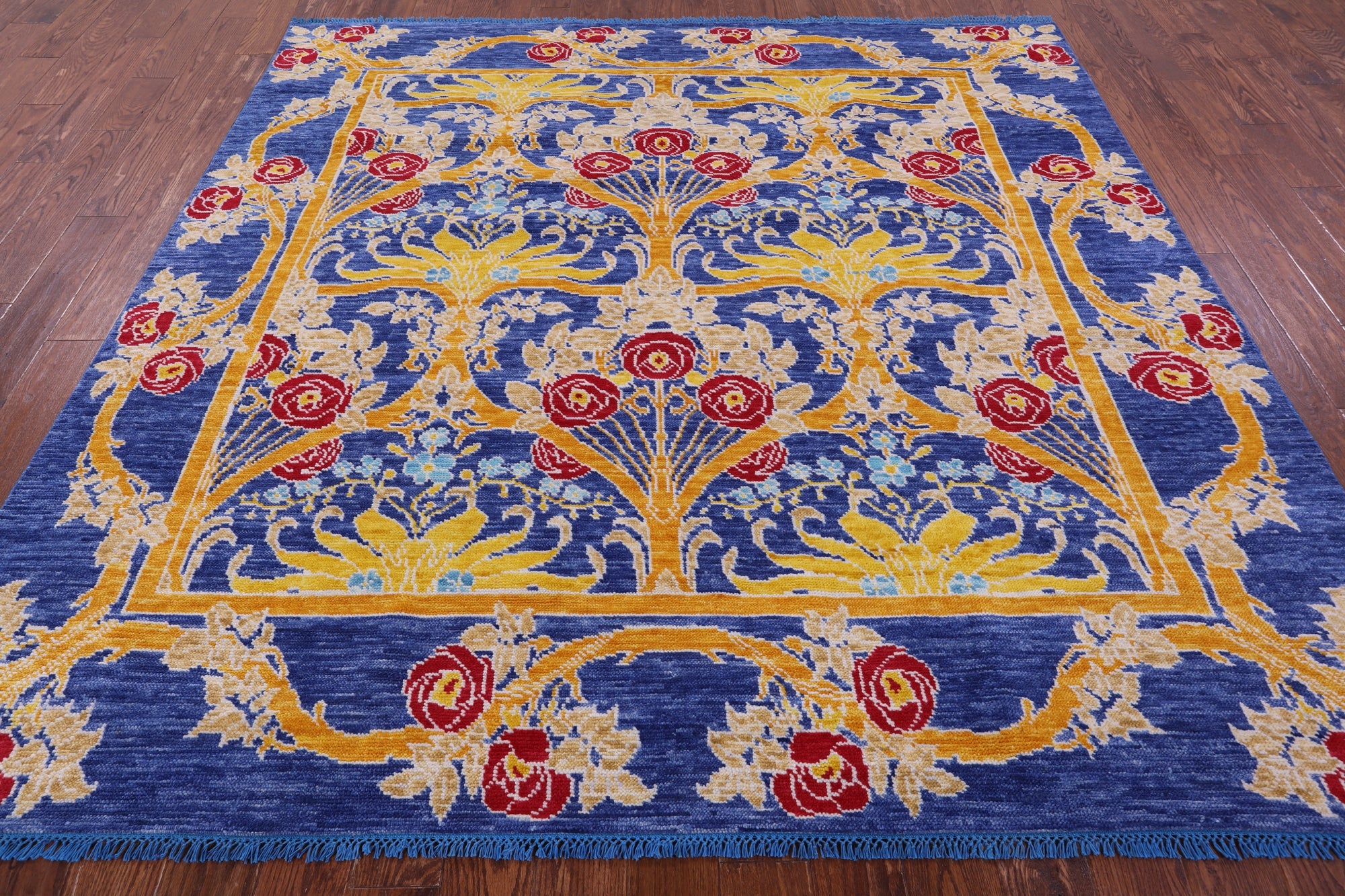 Blue 8' Square William Morris Handmade Wool Rug - Q21414