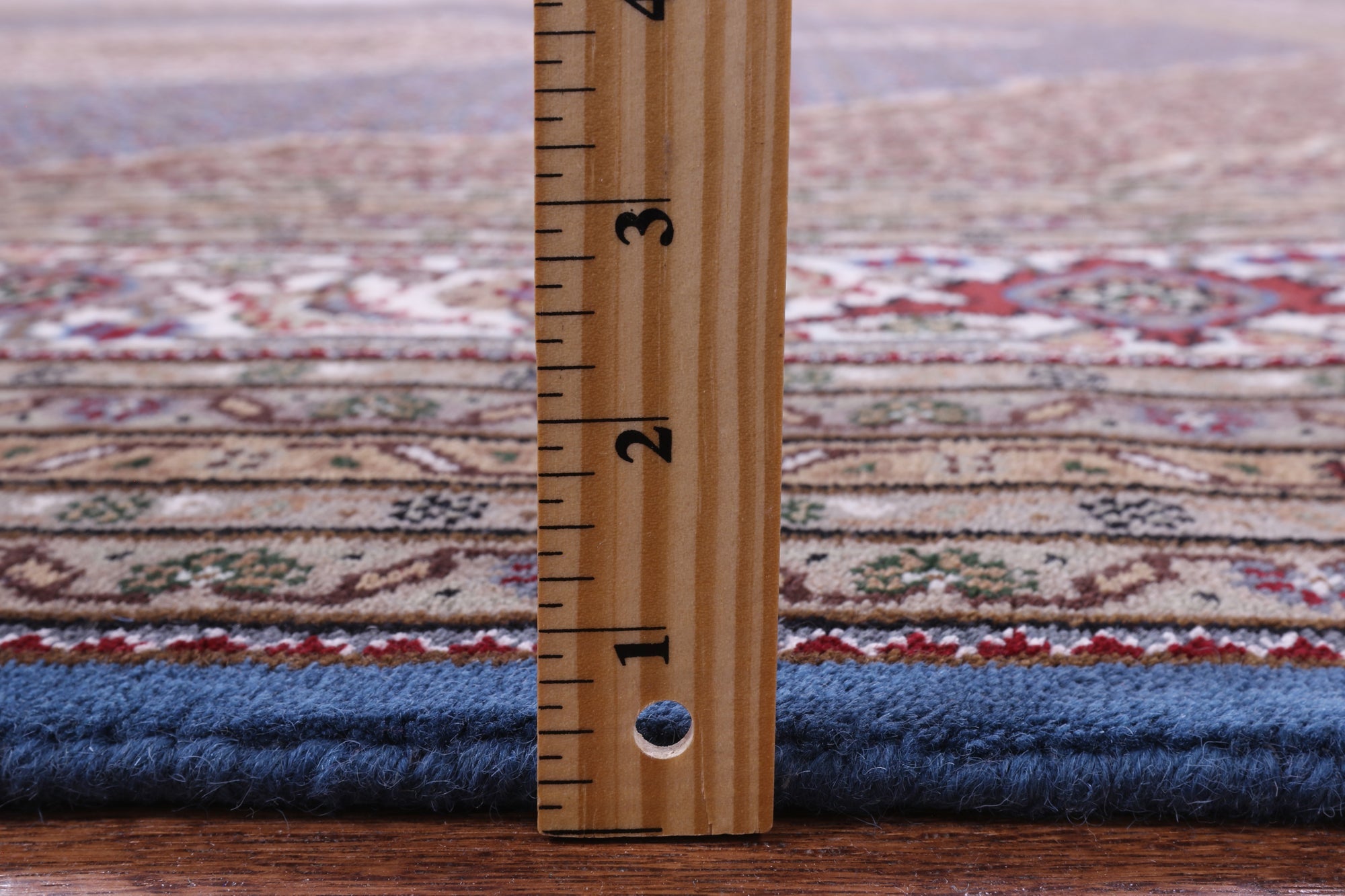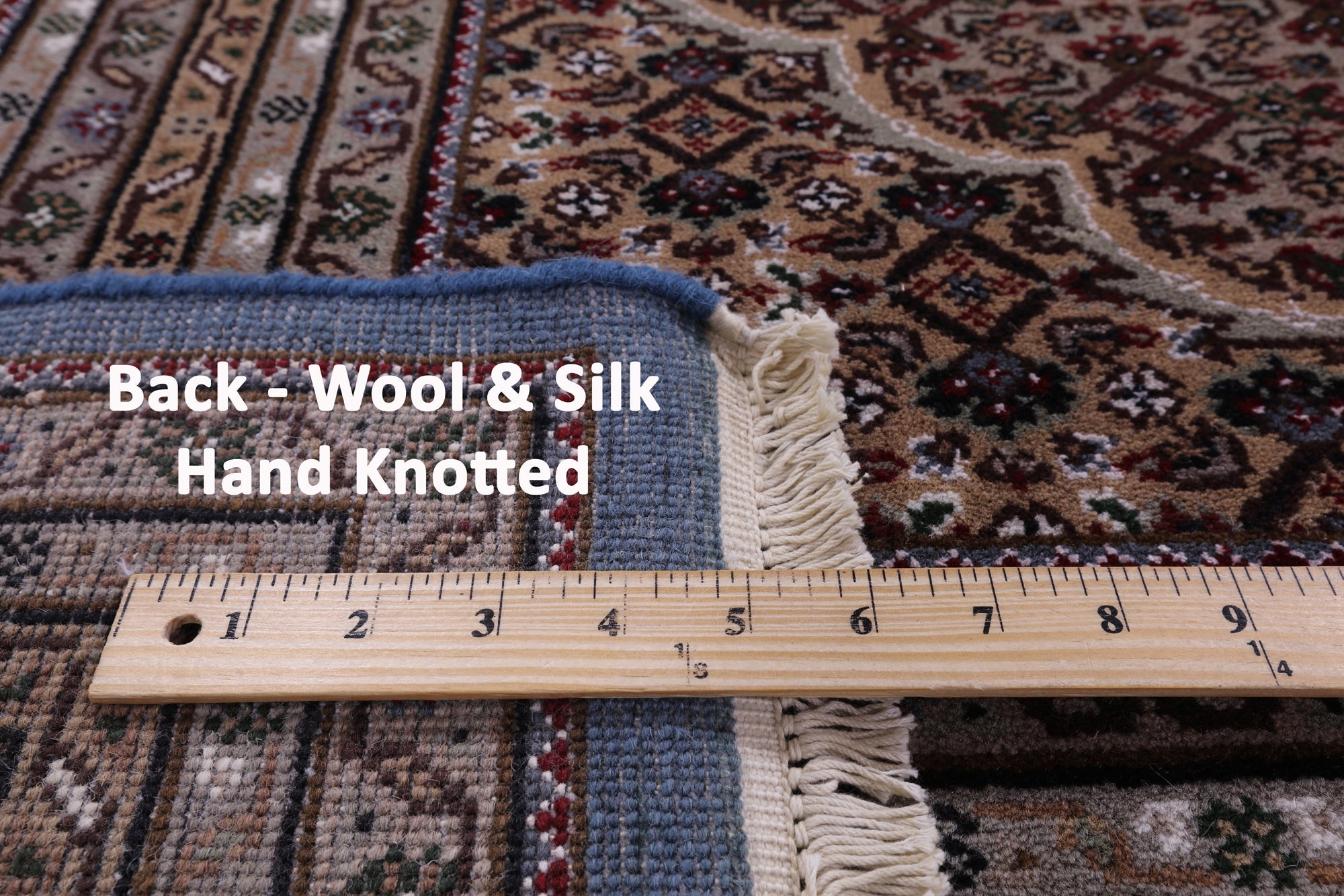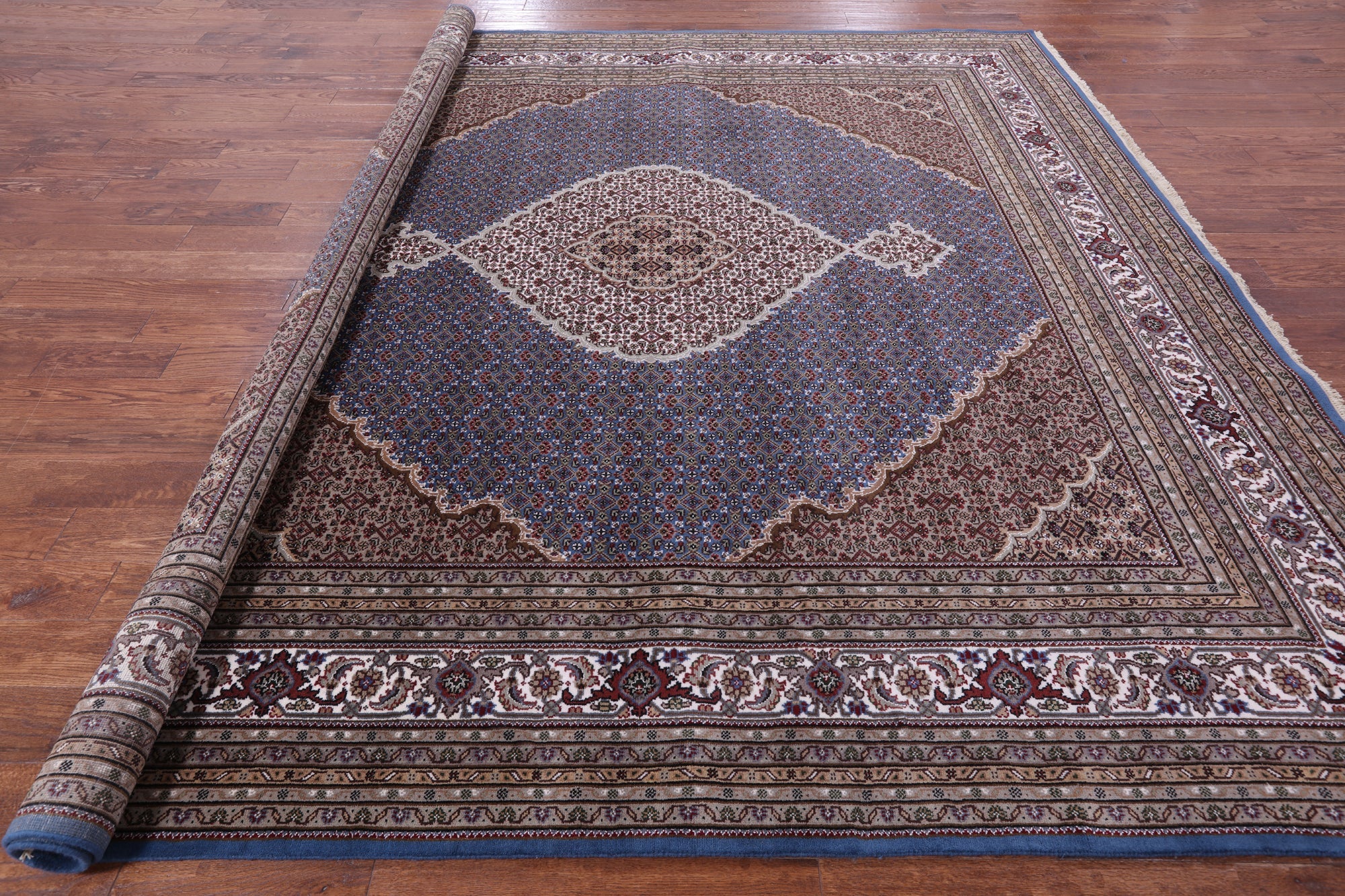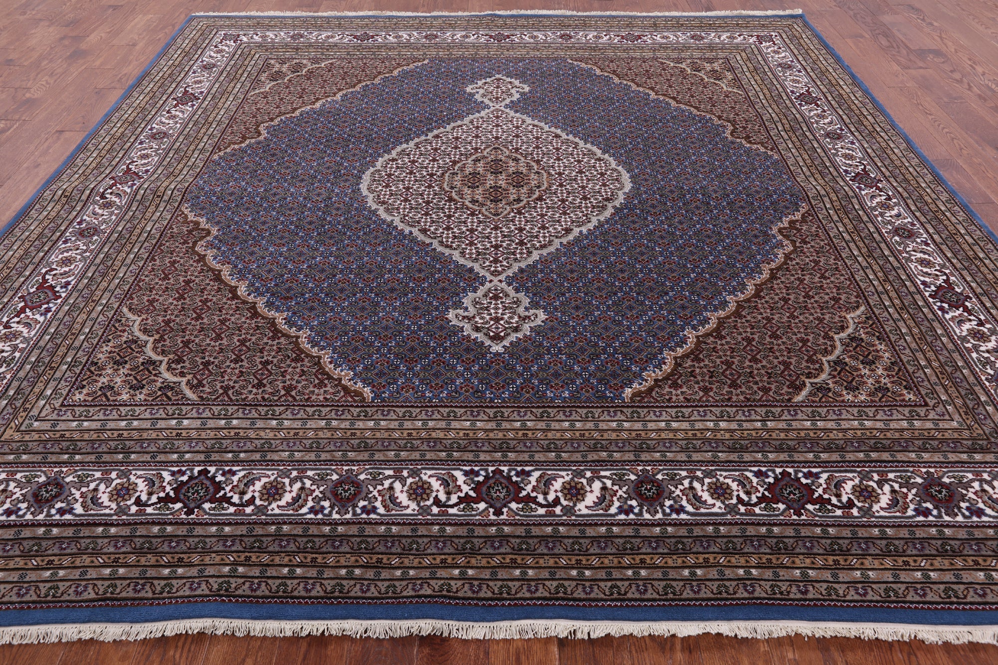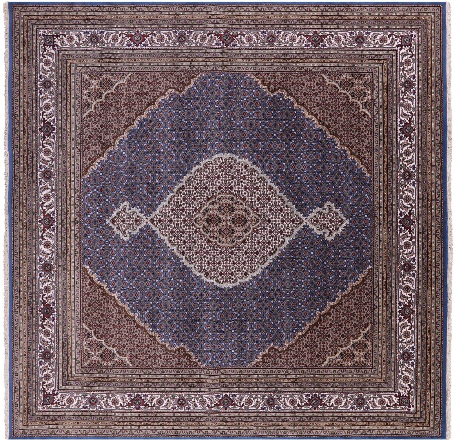 Blue 10' Square Wool & Silk Persian Tabriz Hand Knotted Rug - Q13011