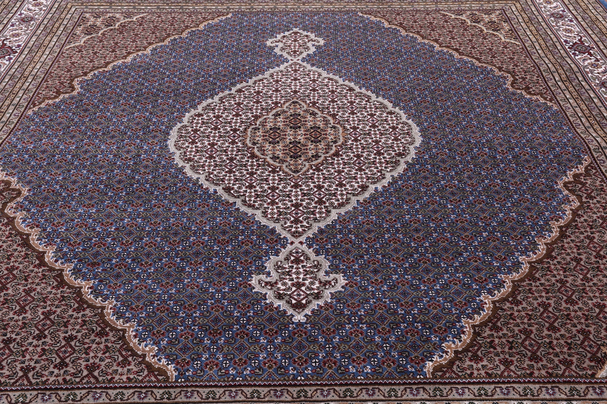 Blue 10' Square Wool & Silk Persian Tabriz Hand Knotted Rug - Q13011 is backordered and will ship as soon as it is back in stock.