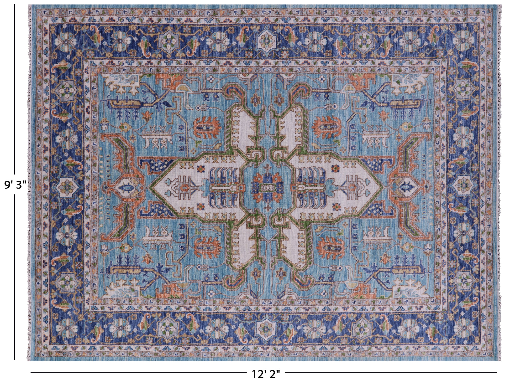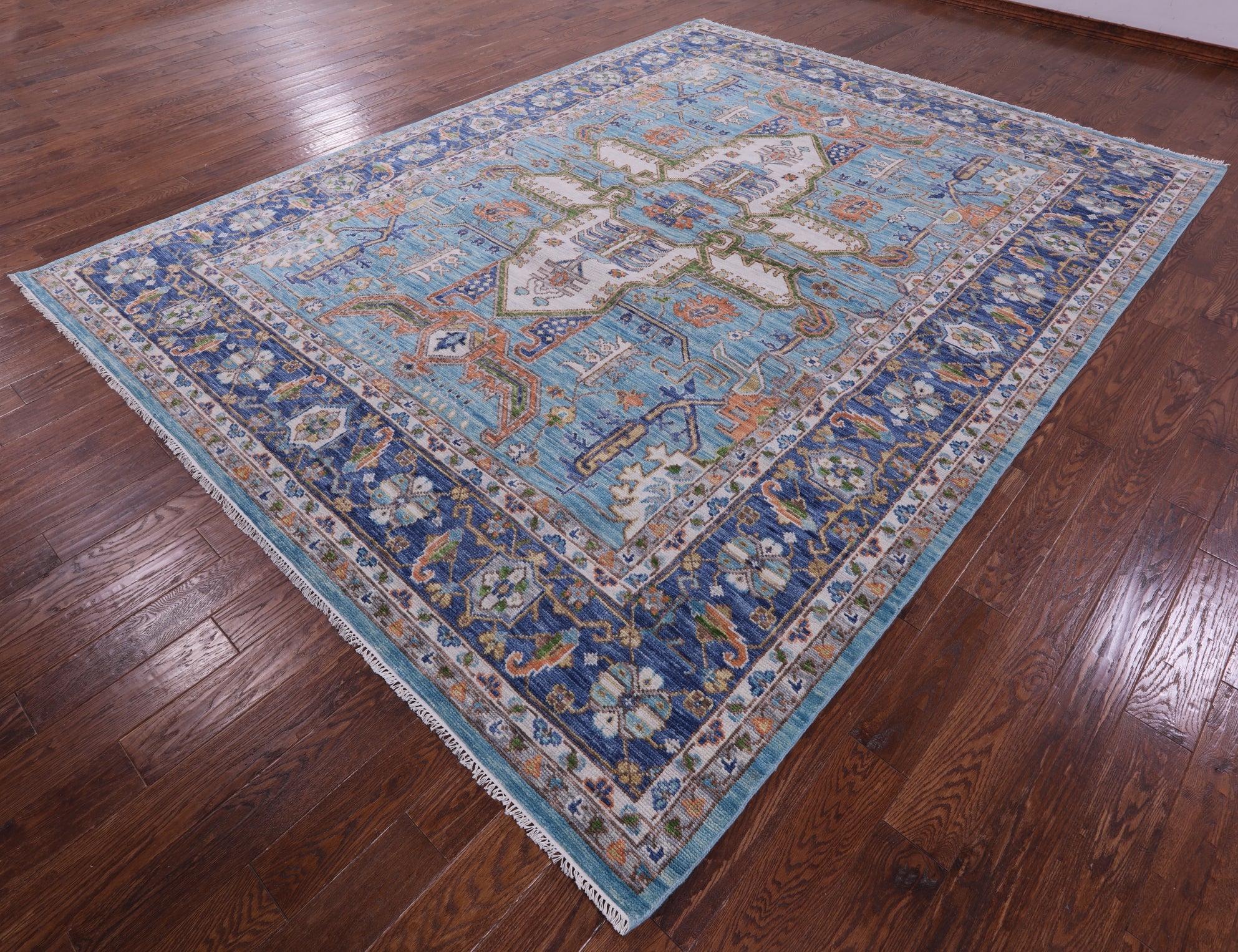 Blue 9' 3" X 12' 2" Super Heriz Serapi Hand-Knotted Rug - Q19049