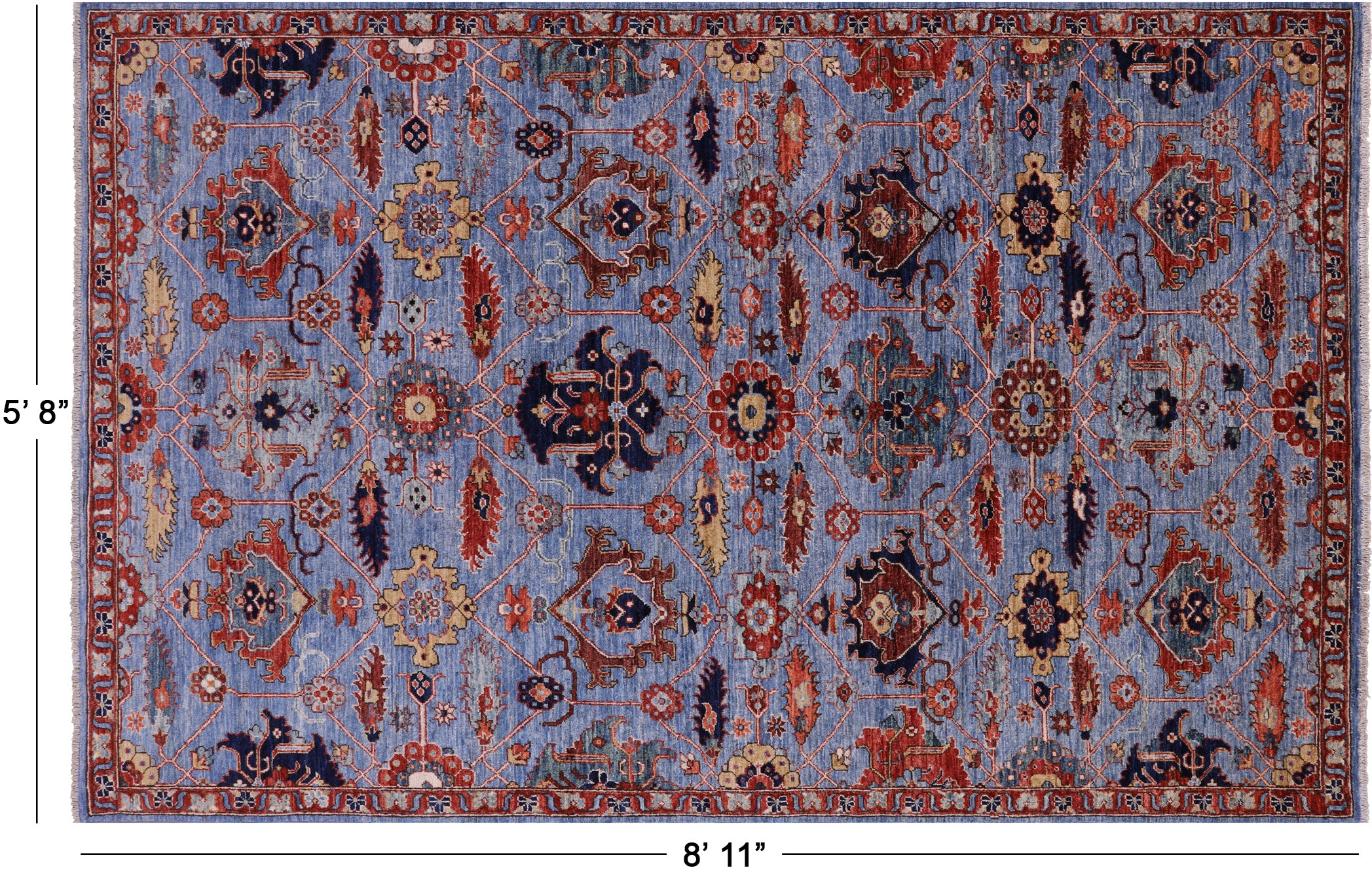 Blue 5' 8" X 8' 11" Super Heriz Serapi Handmade Rug - Q18728