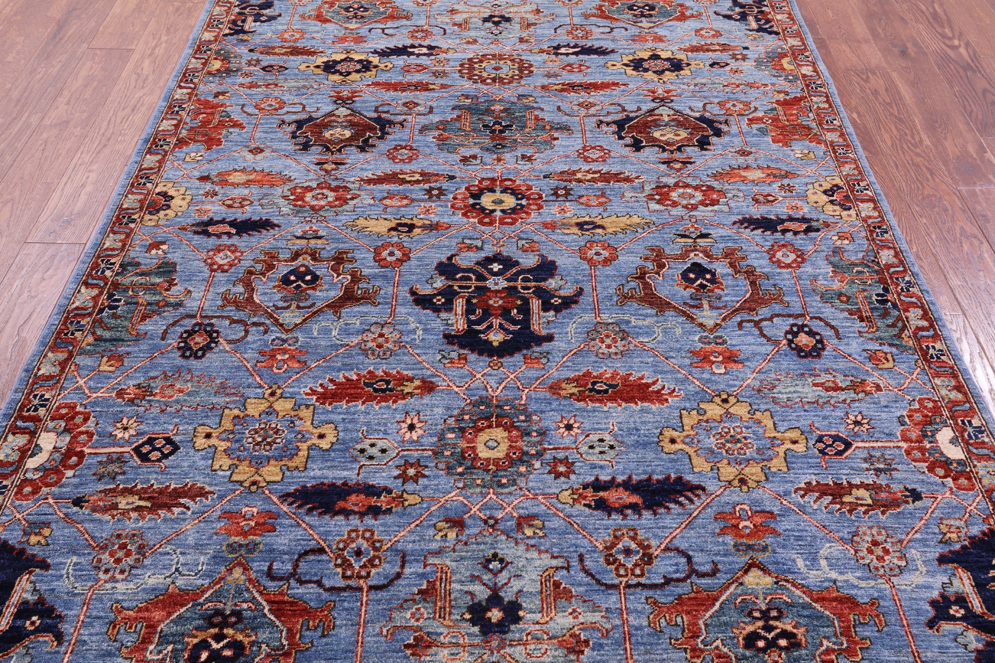 Heriz, Serapi rugs are well known for their bold and angular designs. Many being symmetric, they withhold boldly done geometric and floral-inspired shapes. These shapes are brought out with rich reds, blues, greens, and yellows contrasted against ivory. Heriz, Serapi rugs are very elegant and durable, perfect for a variety of different rooms and spaces within a home.