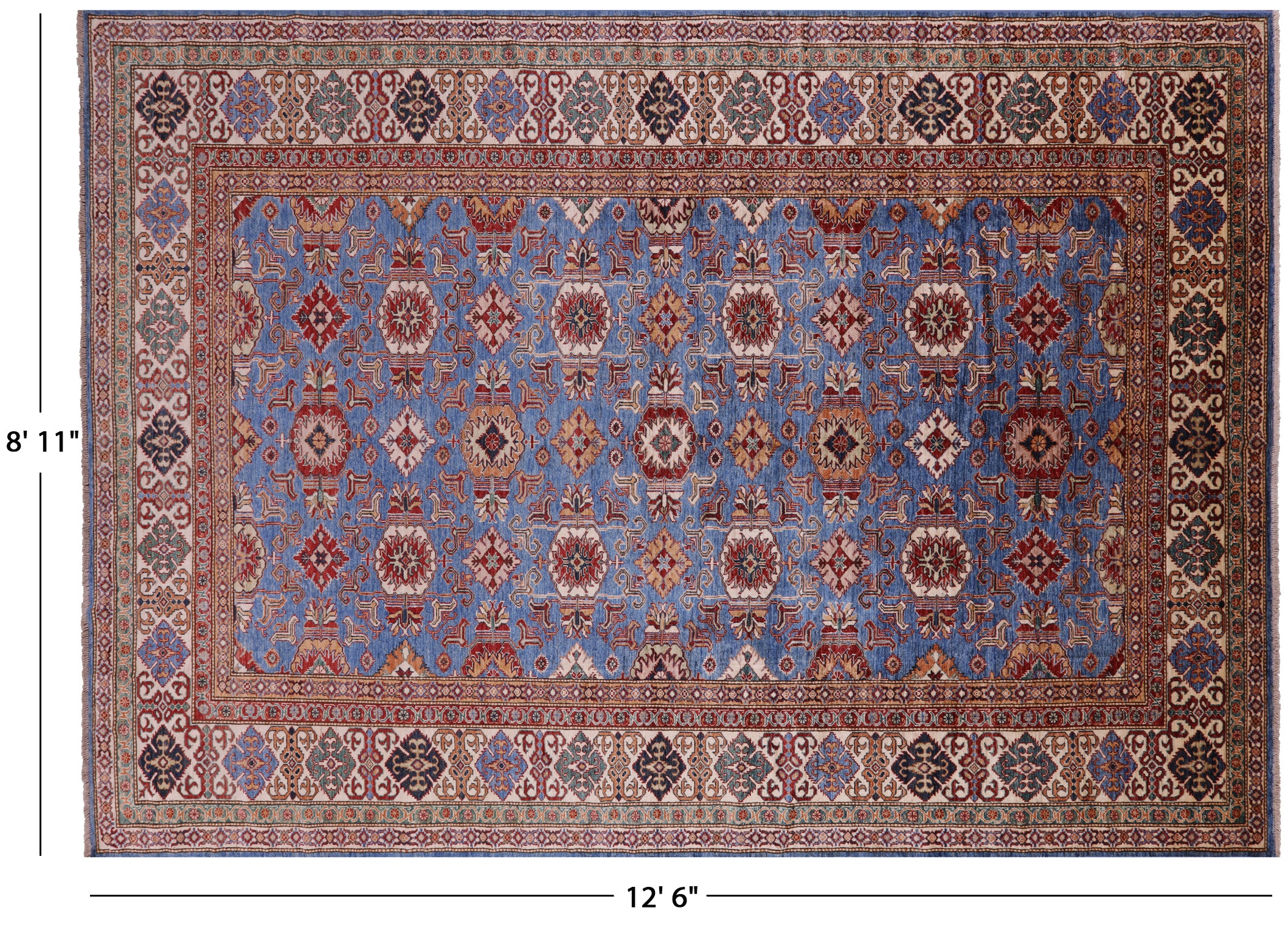 Blue Super Kazak Handmade Wool Rug 8' 11" X 12' 6" - Q10615