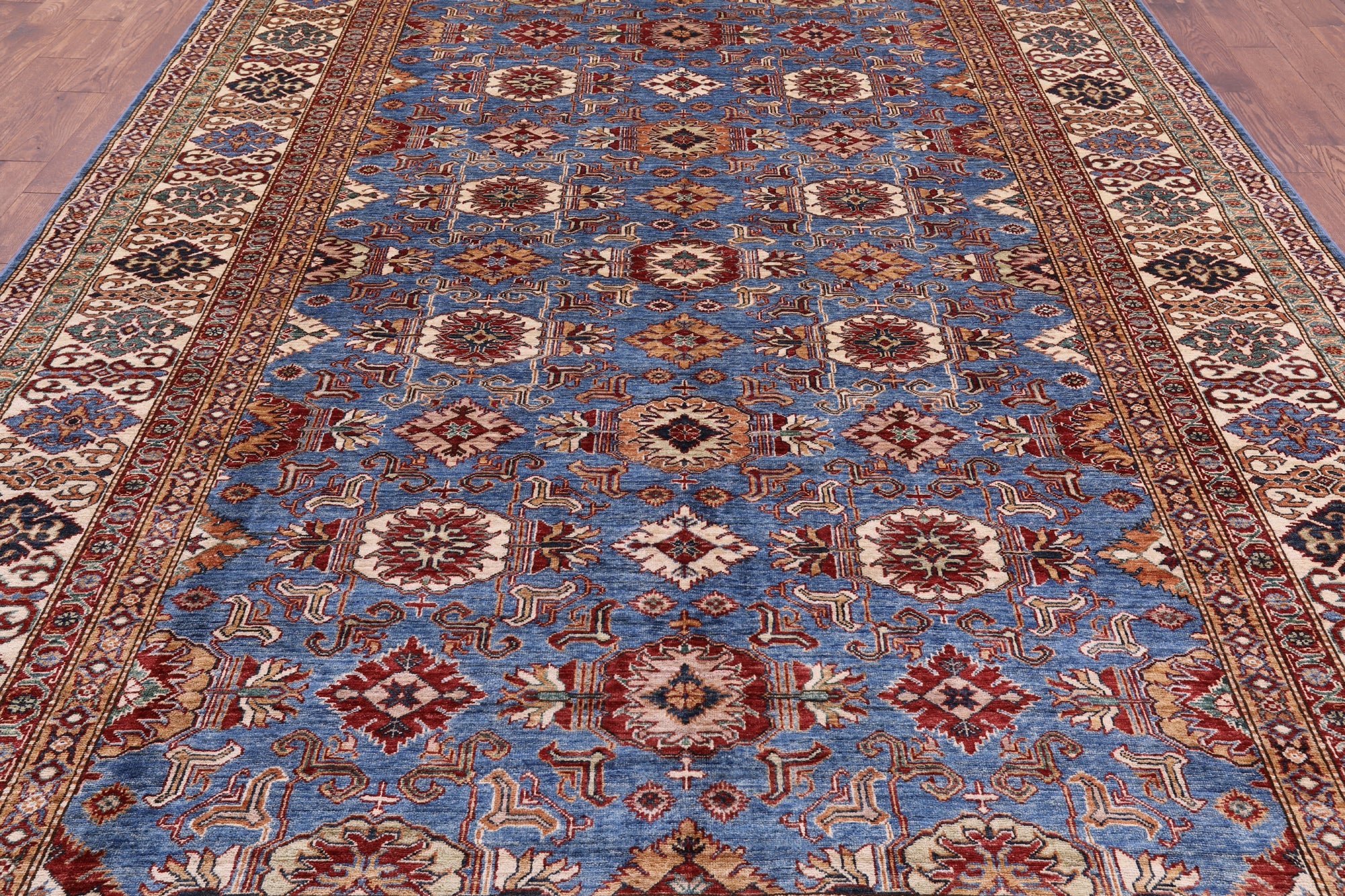 Super Kazak rugs were woven in the south of Caucasus and are very regional in their designs. Super Kazak rugs are very traditional in look and the patterns can vary from geometric shapes, tribal designs like people and animals, and symbolic medallions. They are beautifully intricate and heavy in design. These rugs come in varieties of rich, warm, jewel tones that can liven up any space.