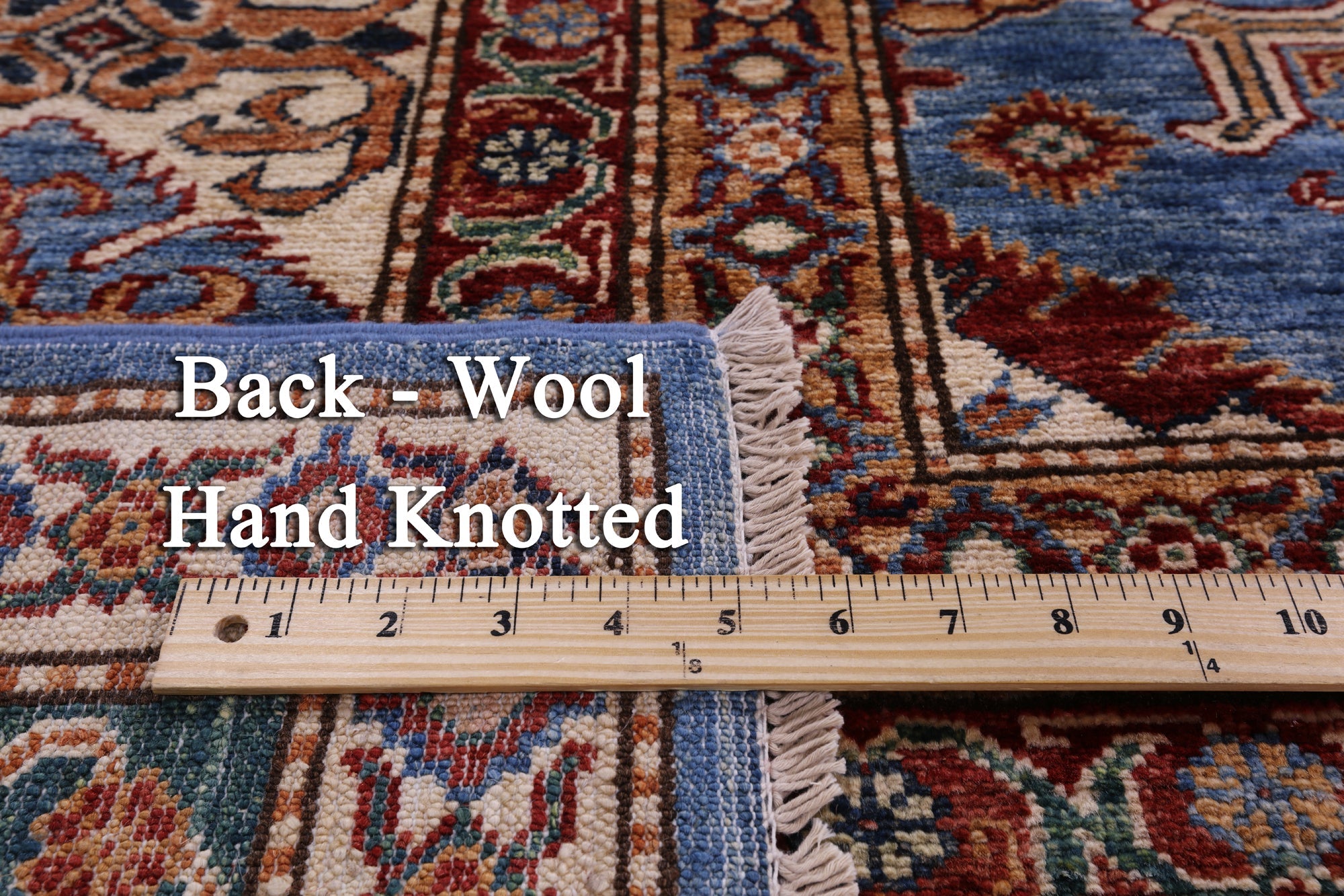 Blue Super Kazak Handmade Wool Rug 8' 11" X 12' 6" - Q10615 is backordered and will ship as soon as it is back in stock.
