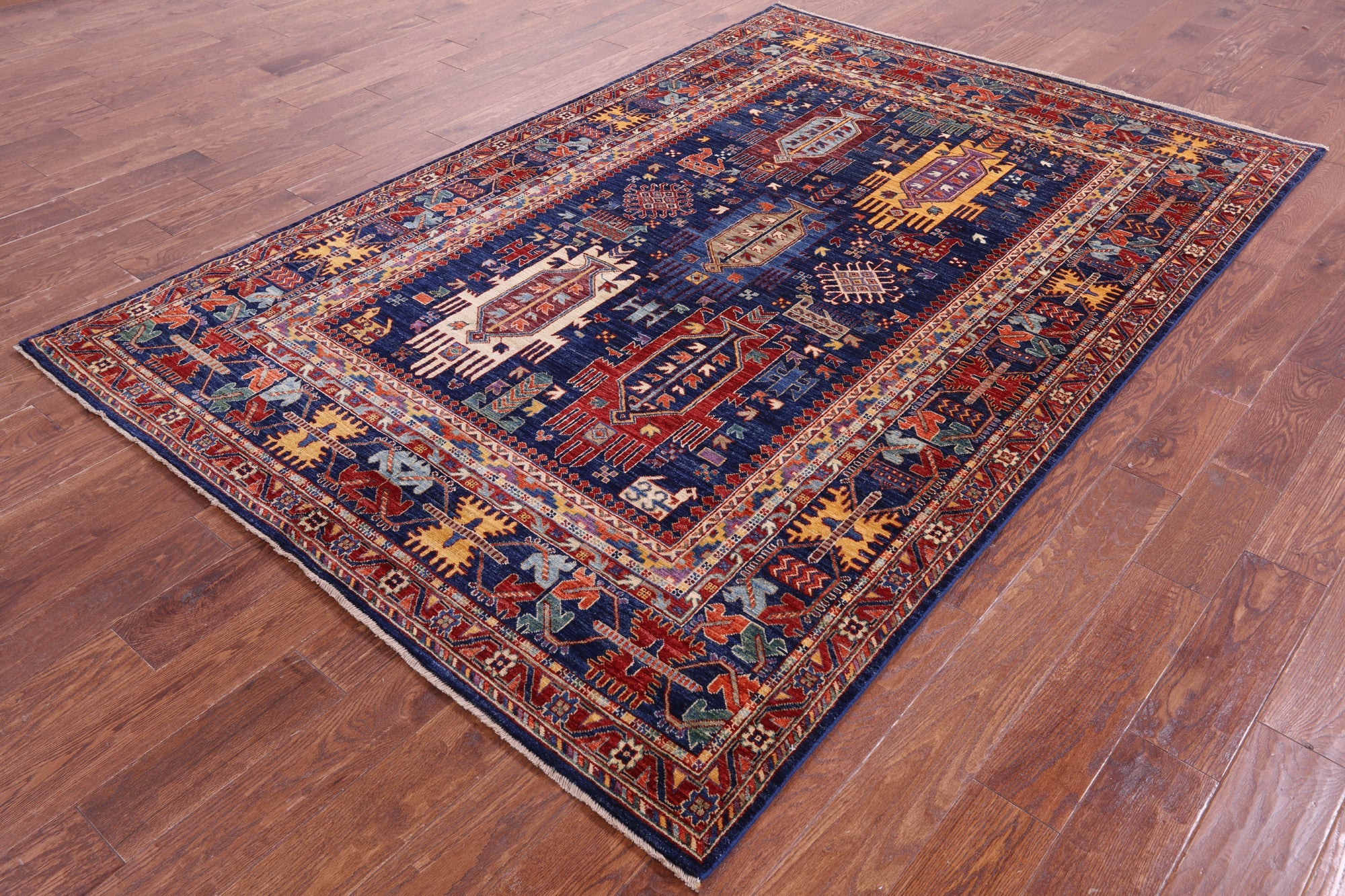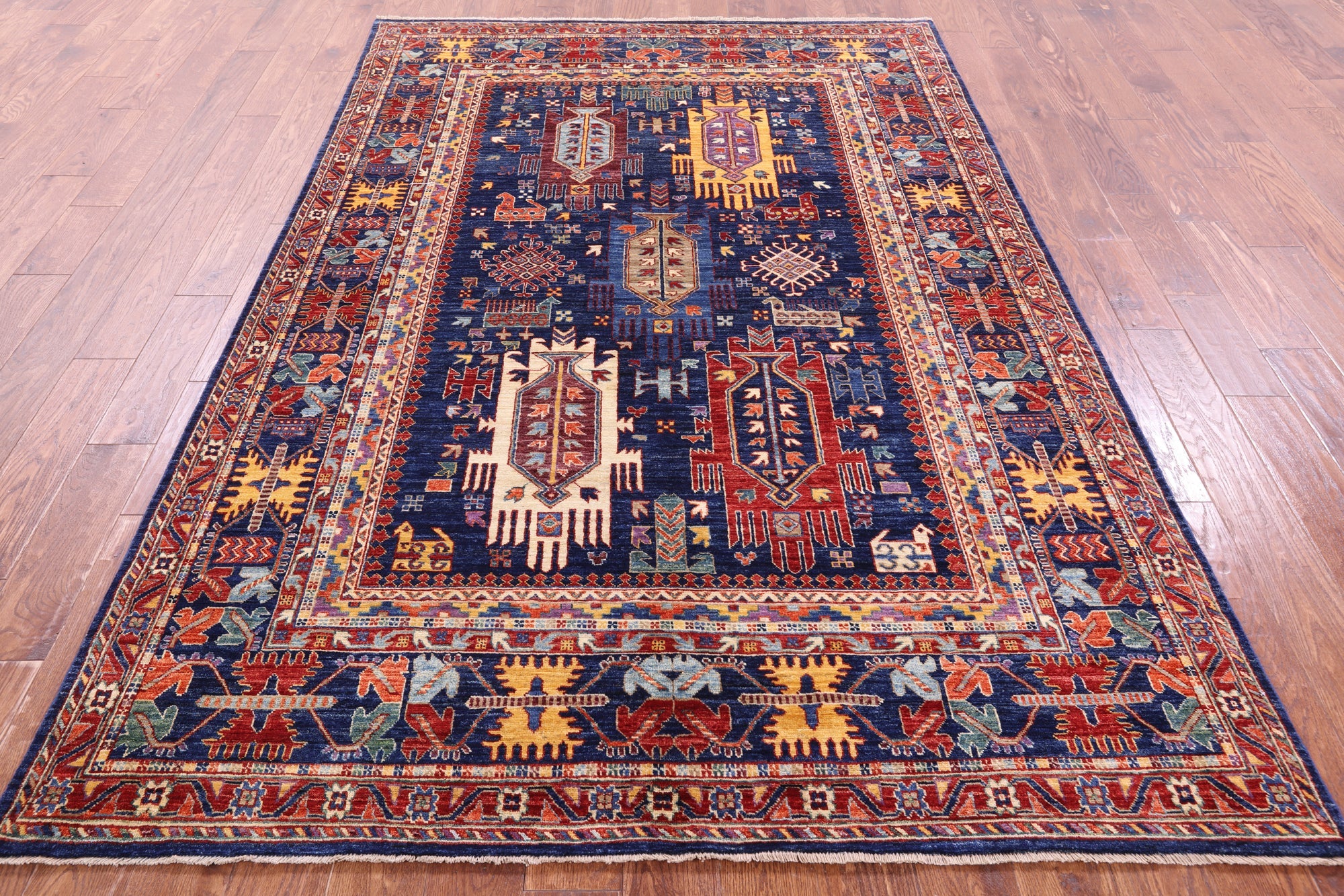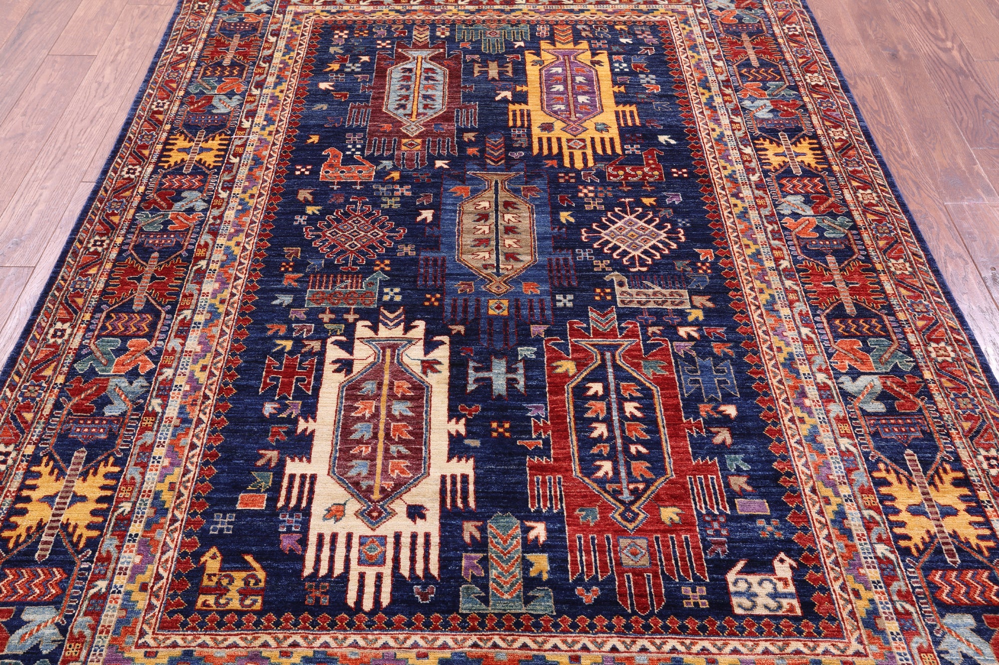Blue Tribal Fine Serapi Handmade Wool Rug 5' 11" X 8' 9" - Q20900 is backordered and will ship as soon as it is back in stock.
