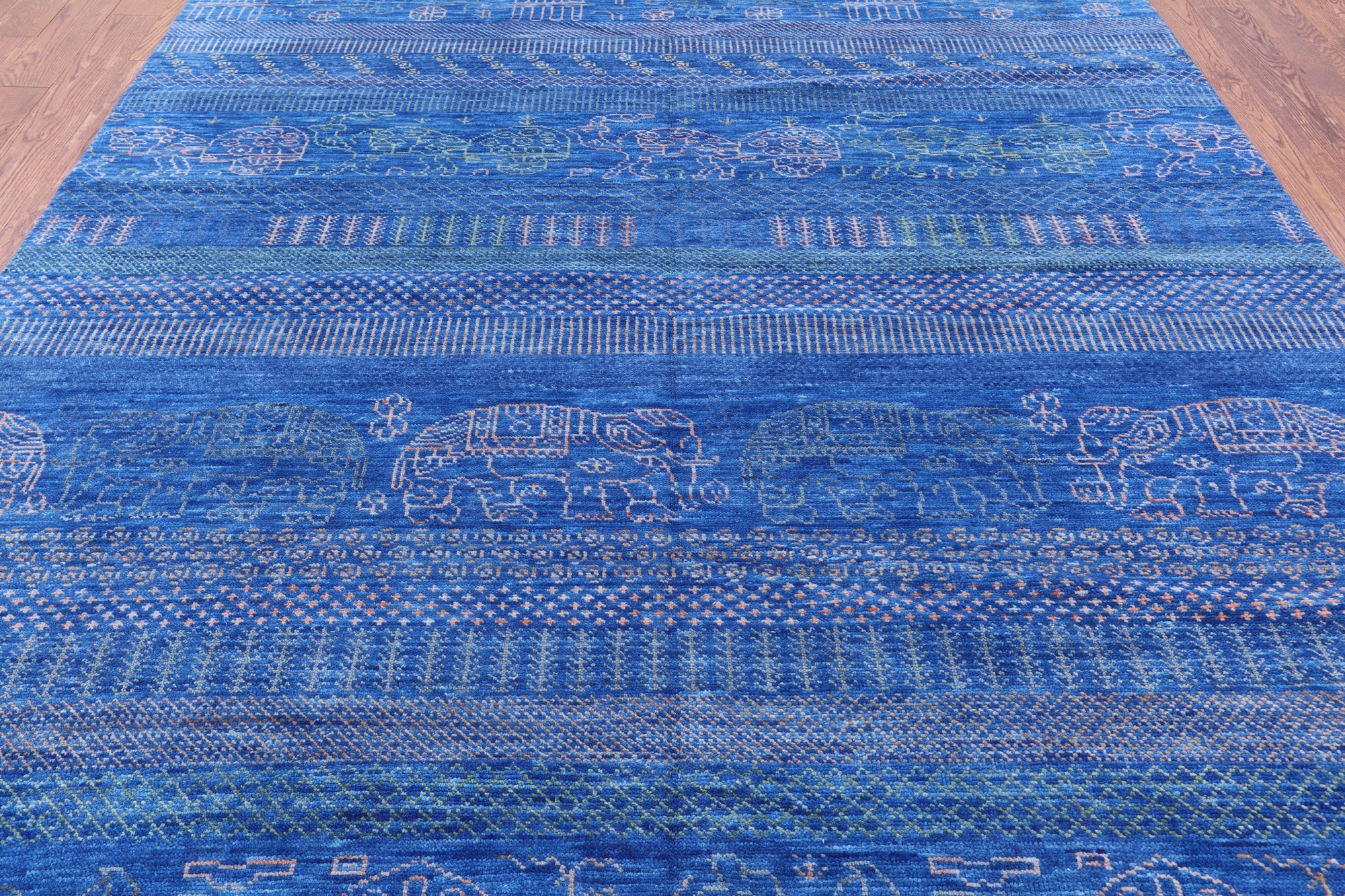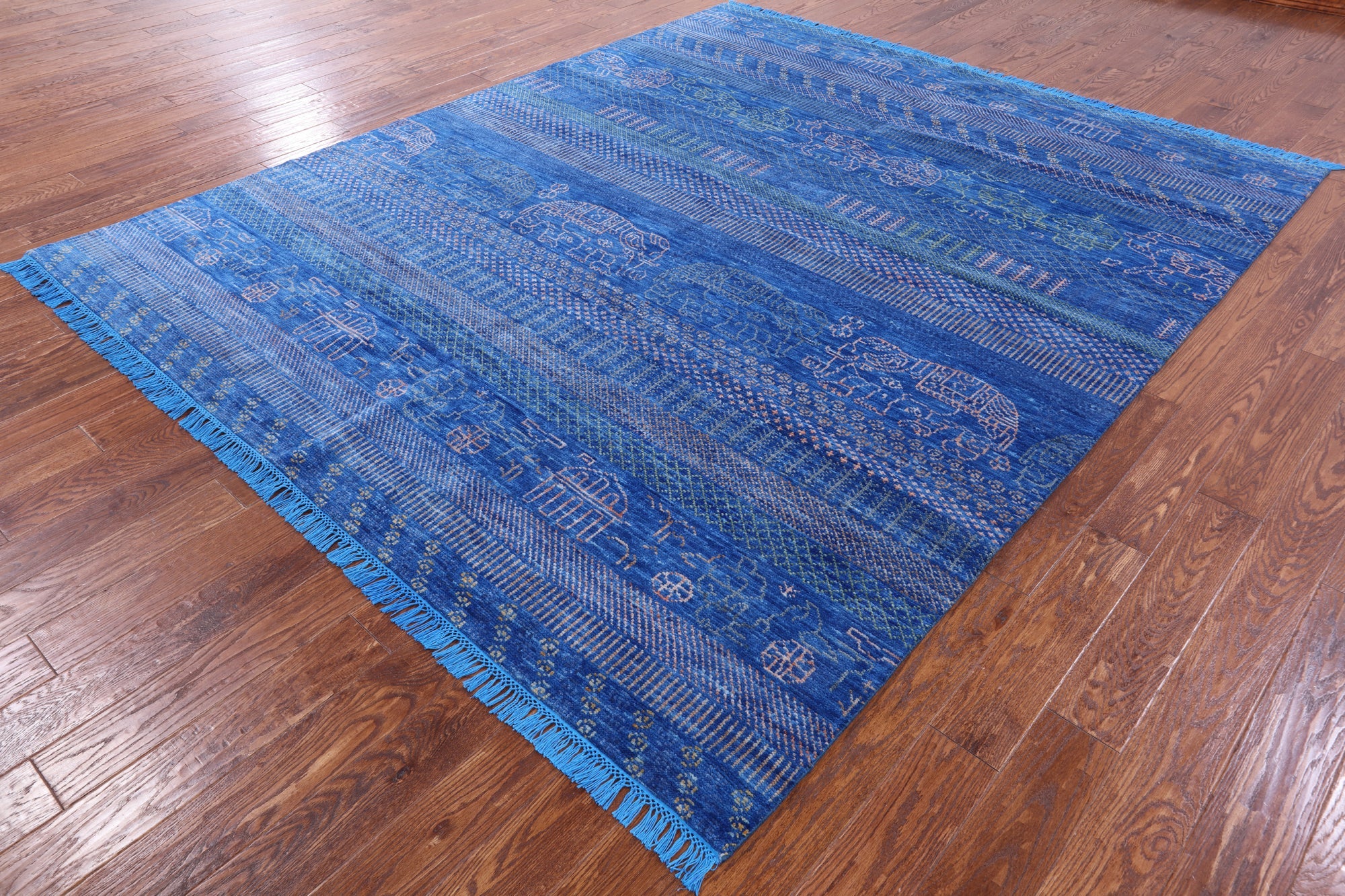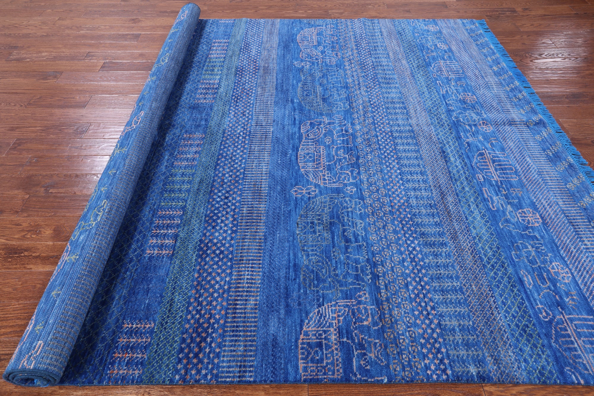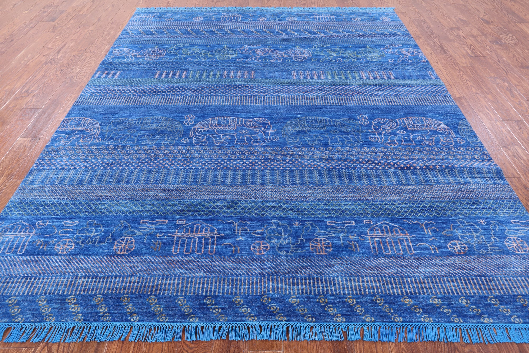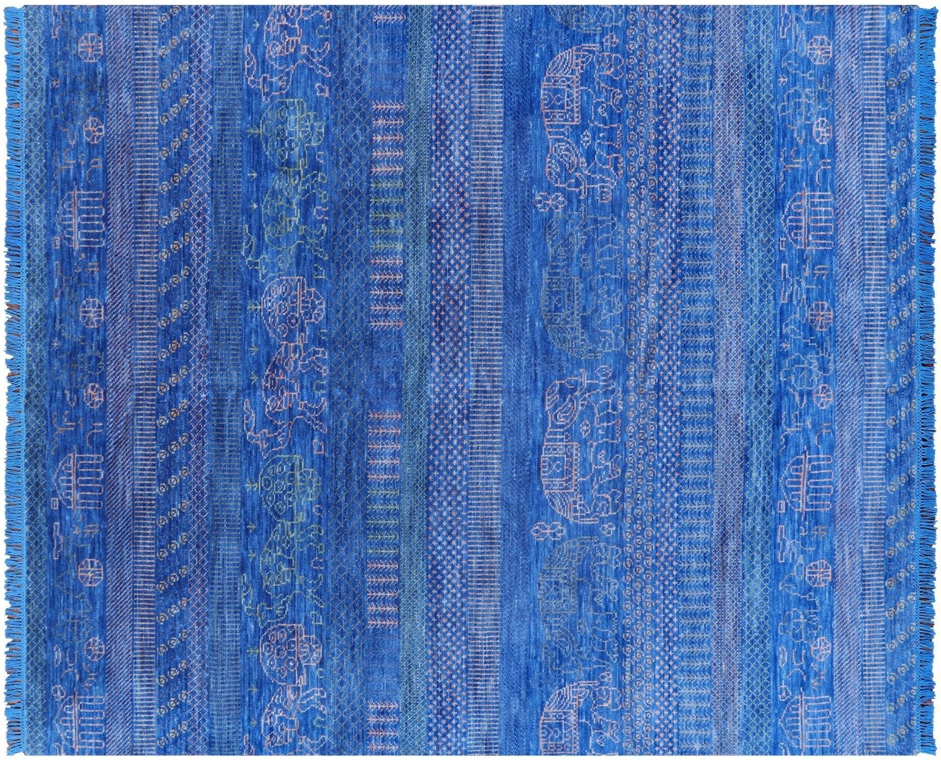 Blue Tribal Persian Gabbeh Elephant Design Handmade Wool Rug 8' 3" X 10' 0" - Q9512