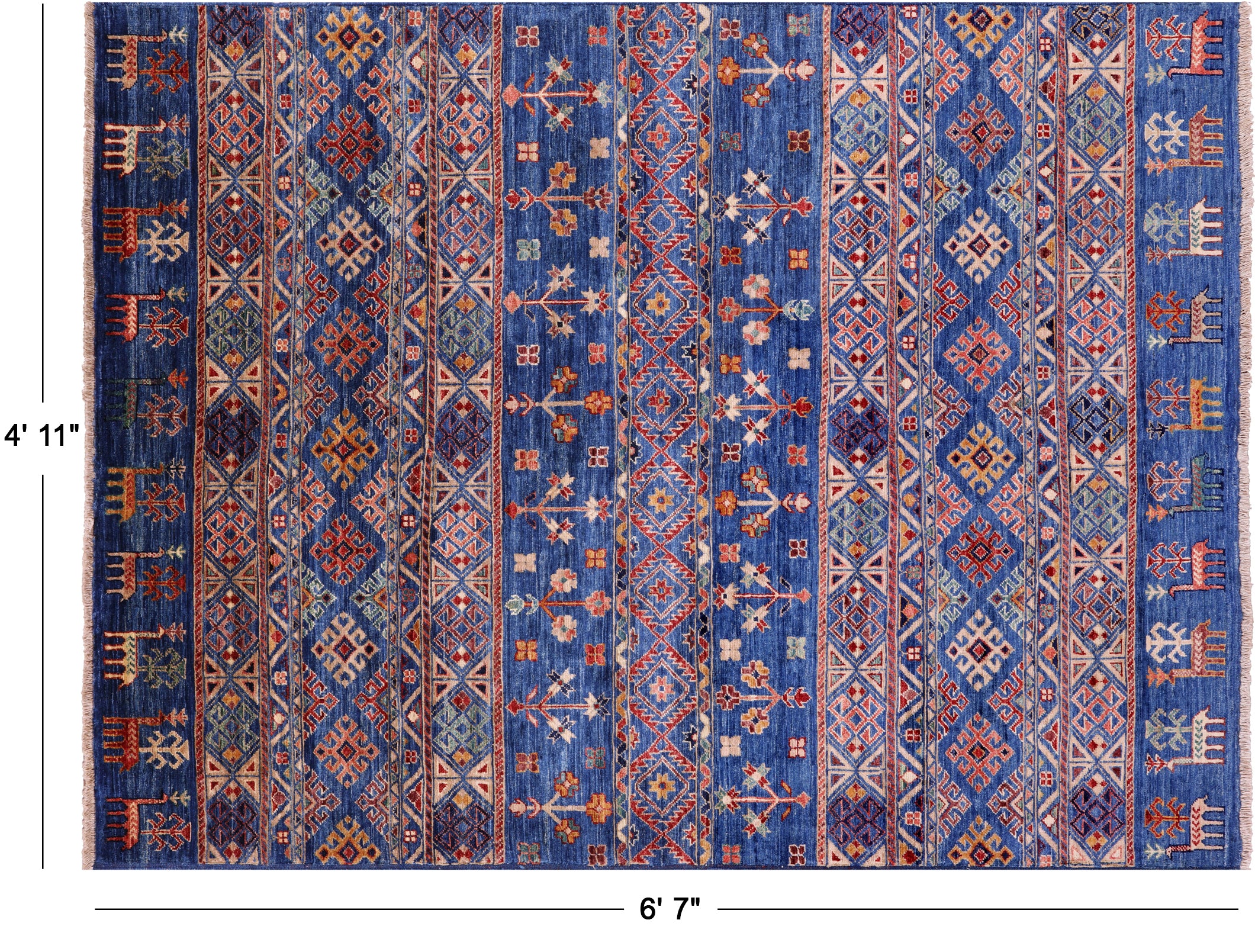 Blue 4' 11" X 6' 7" Tribal Persian Gabbeh Hand Knotted Rug - Q17410