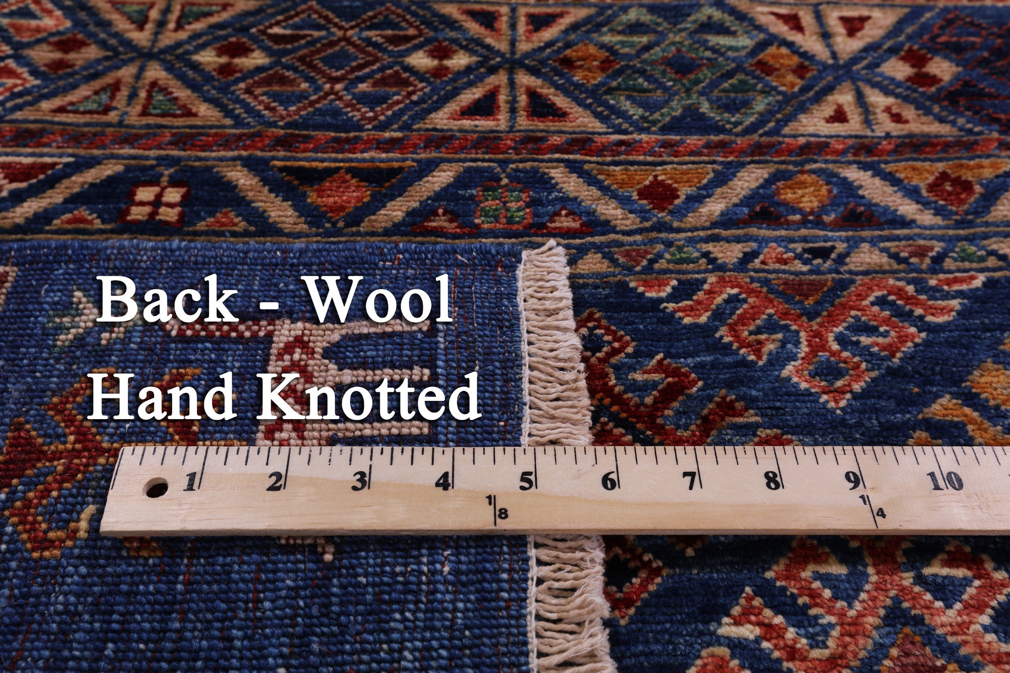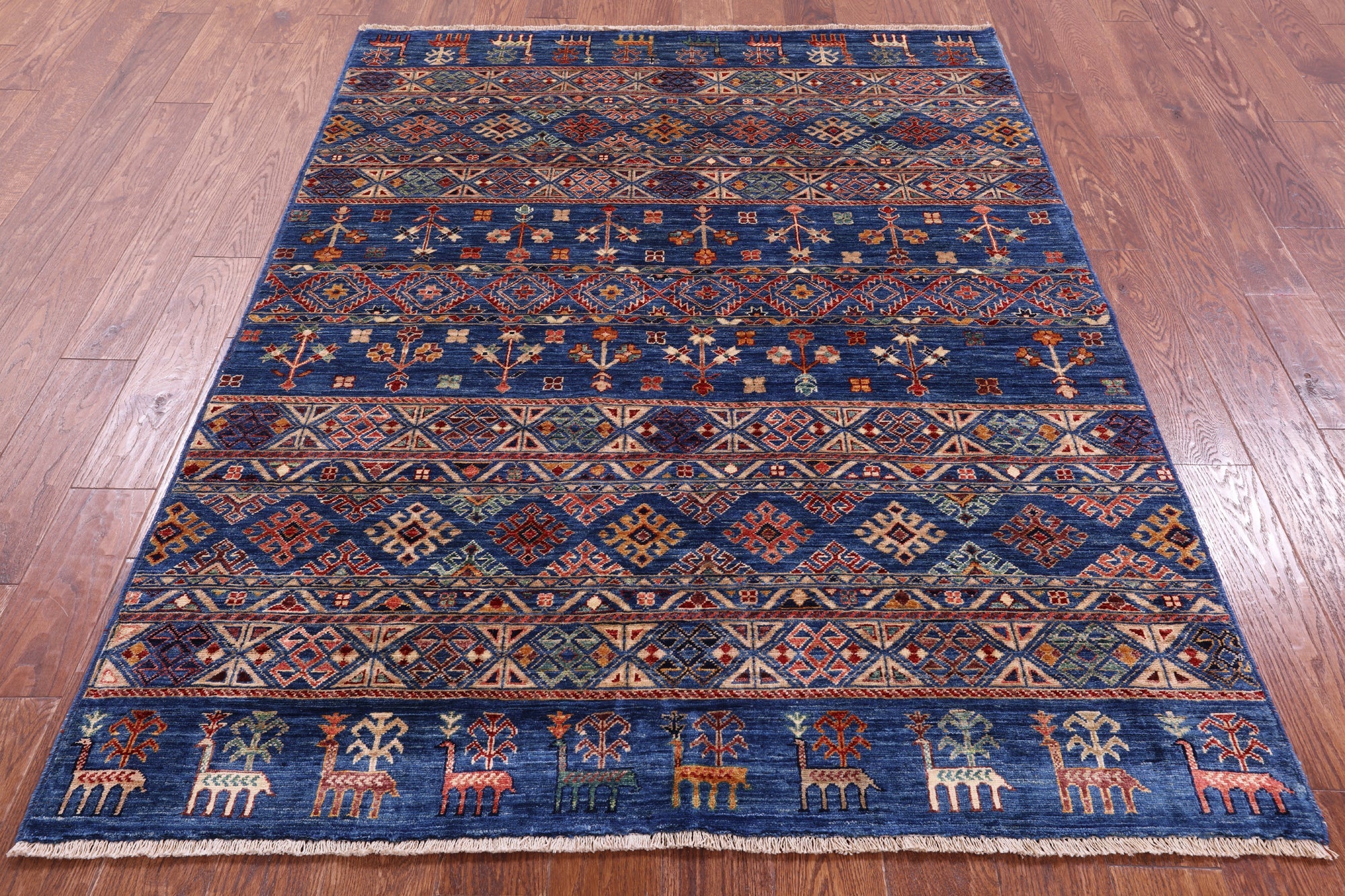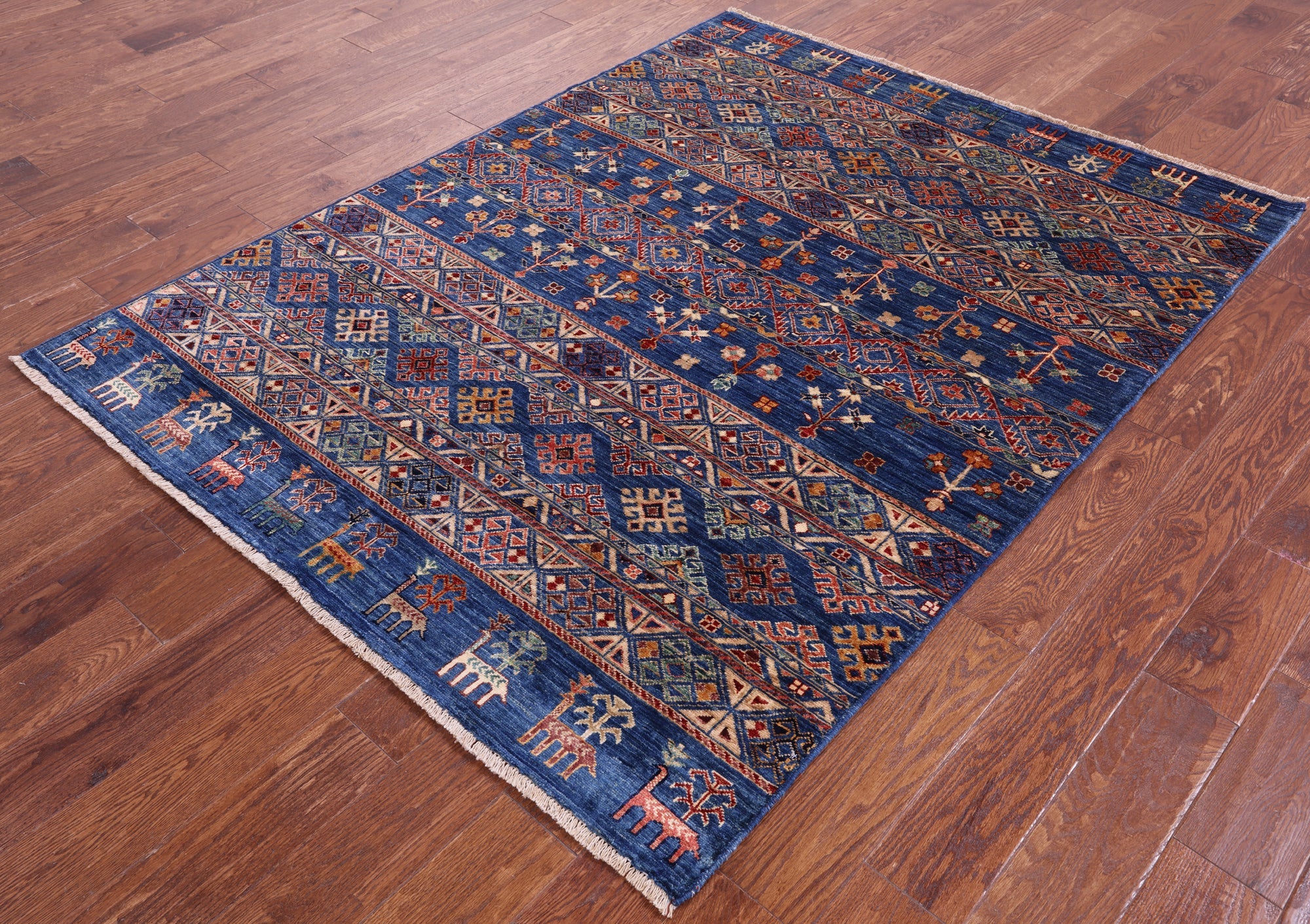 Blue 4' 11" X 6' 7" Tribal Persian Gabbeh Hand Knotted Rug - Q17410 is backordered and will ship as soon as it is back in stock.