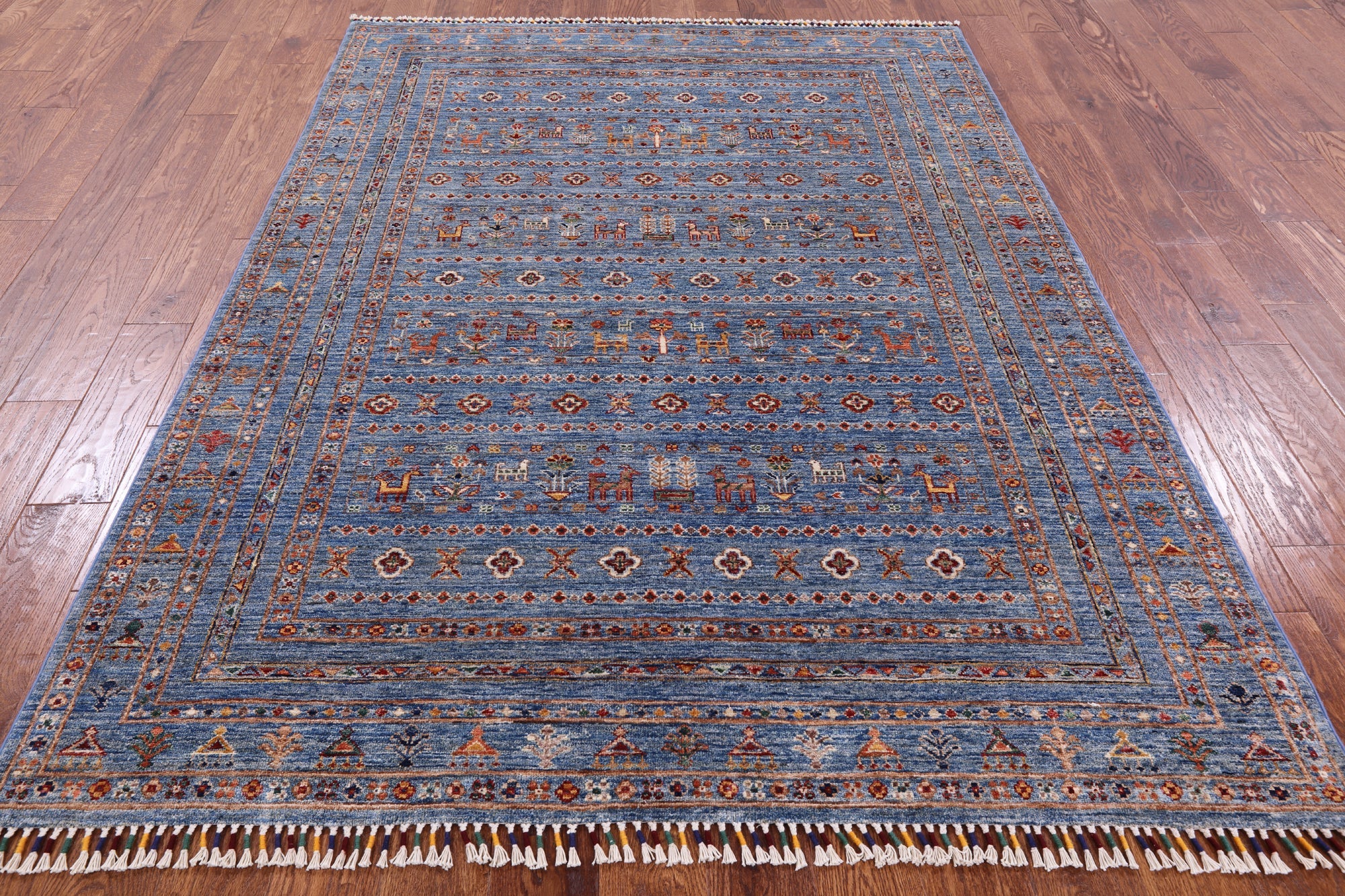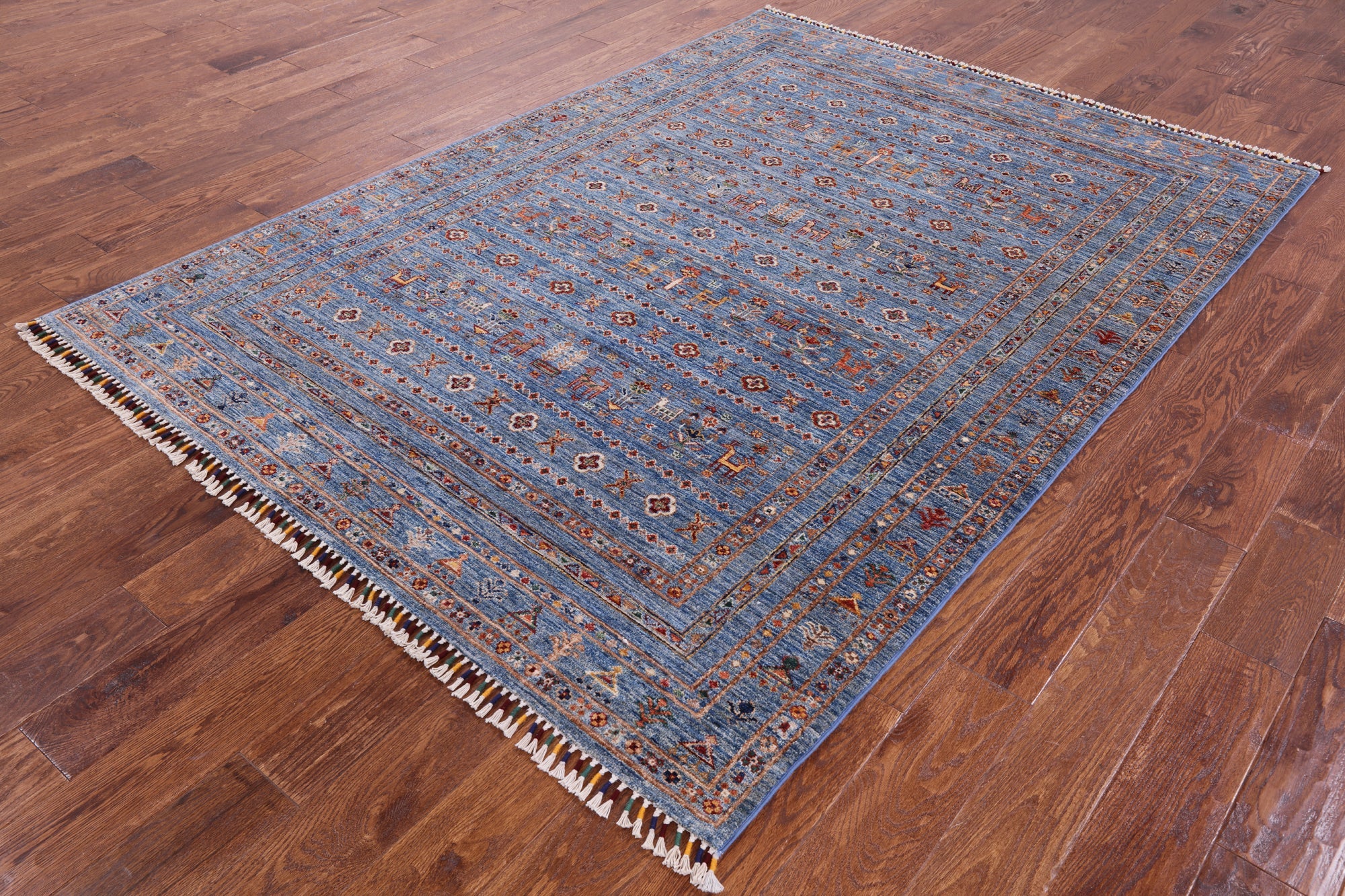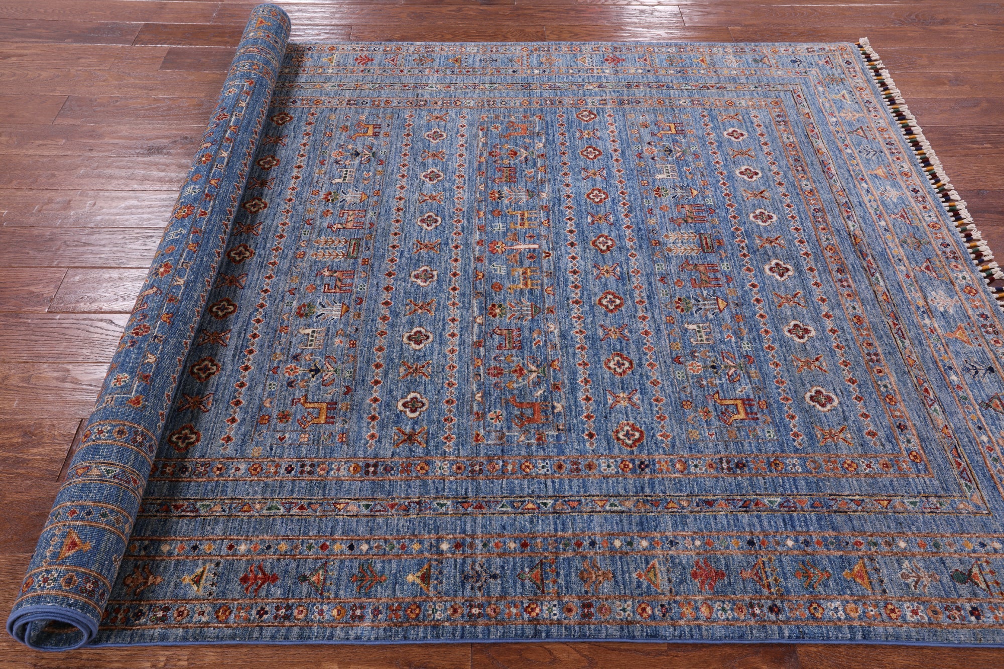 Blue 5' 7" X 7' 8" Tribal Persian Gabbeh Handmade Rug - Q2950 is backordered and will ship as soon as it is back in stock.