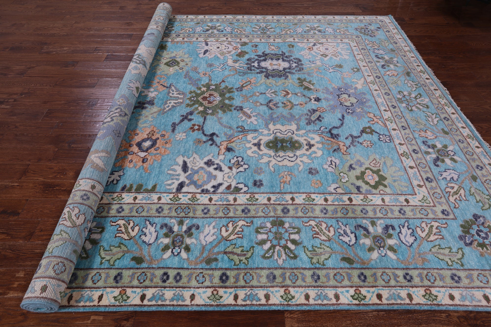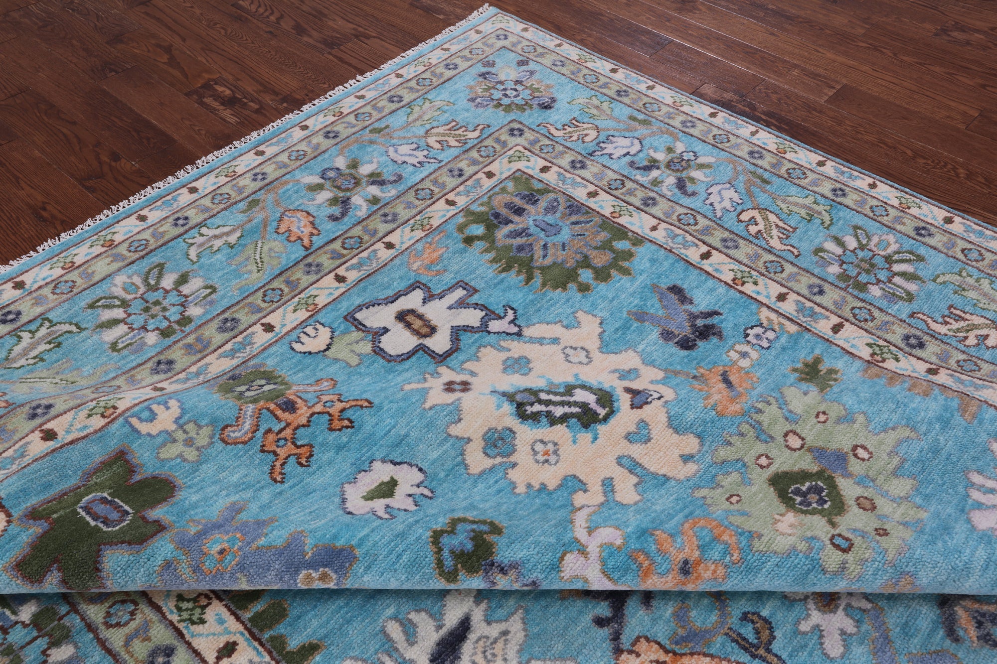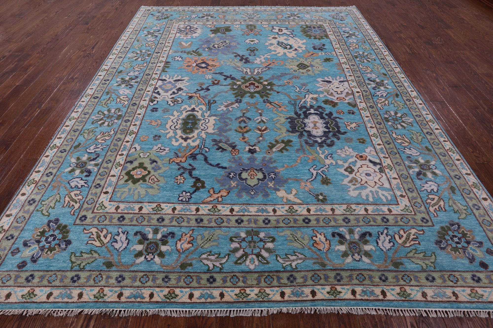 Blue Turkish Angora Oushak Hand Knotted Rug 9' 3" X 12' 1" - Q12059 is backordered and will ship as soon as it is back in stock.