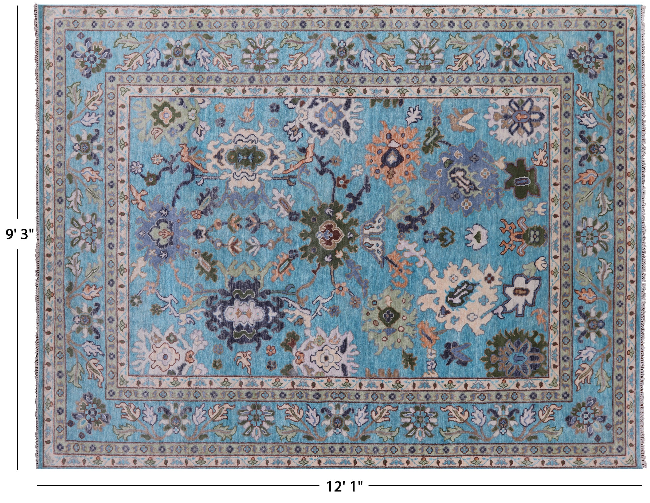 Blue Turkish Angora Oushak Hand Knotted Rug 9' 3" X 12' 1" - Q12059