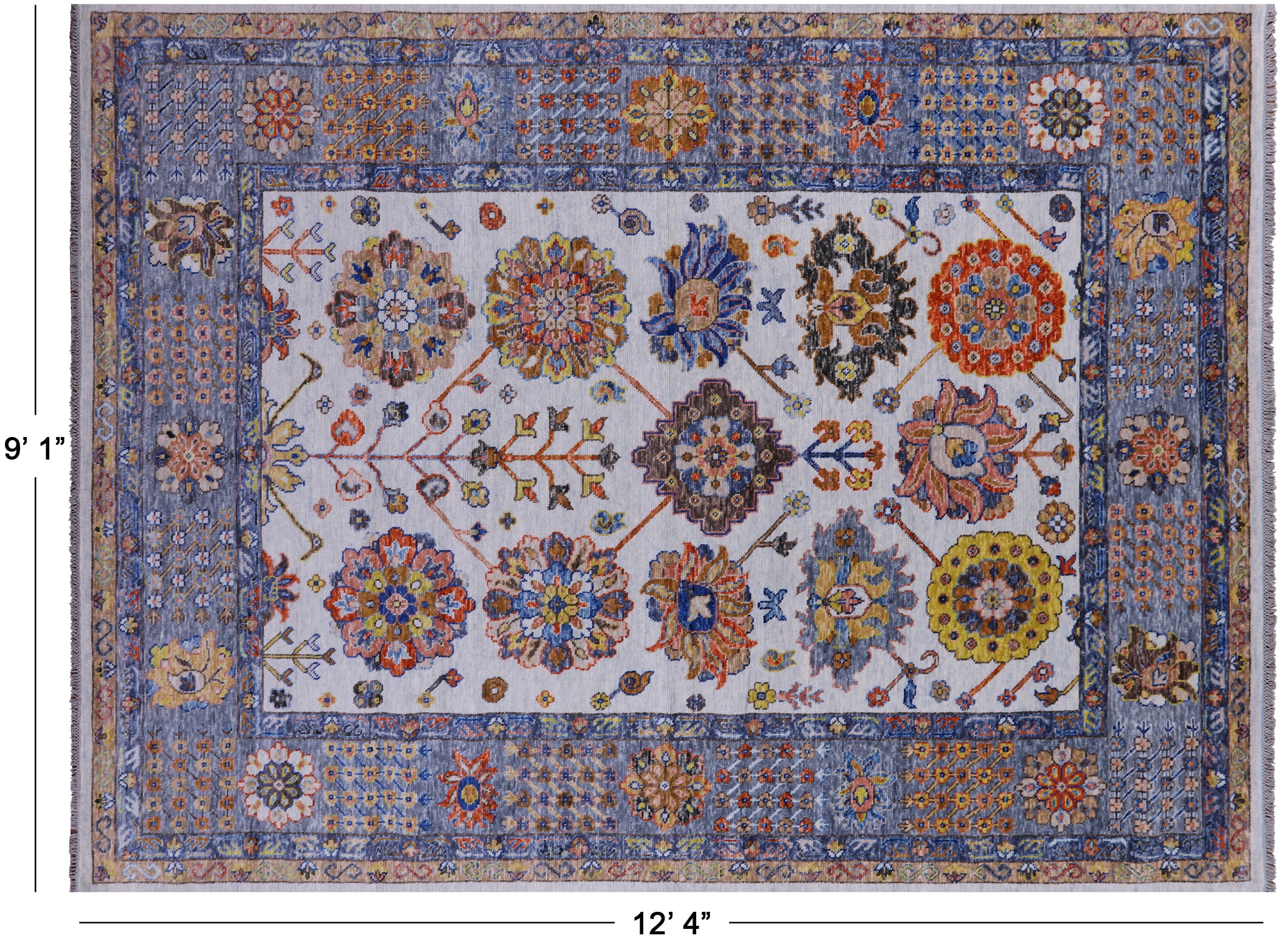 Blue Turkish Angora Oushak Hand Knotted Rug 9' 1" X 12' 4" - Q18922
