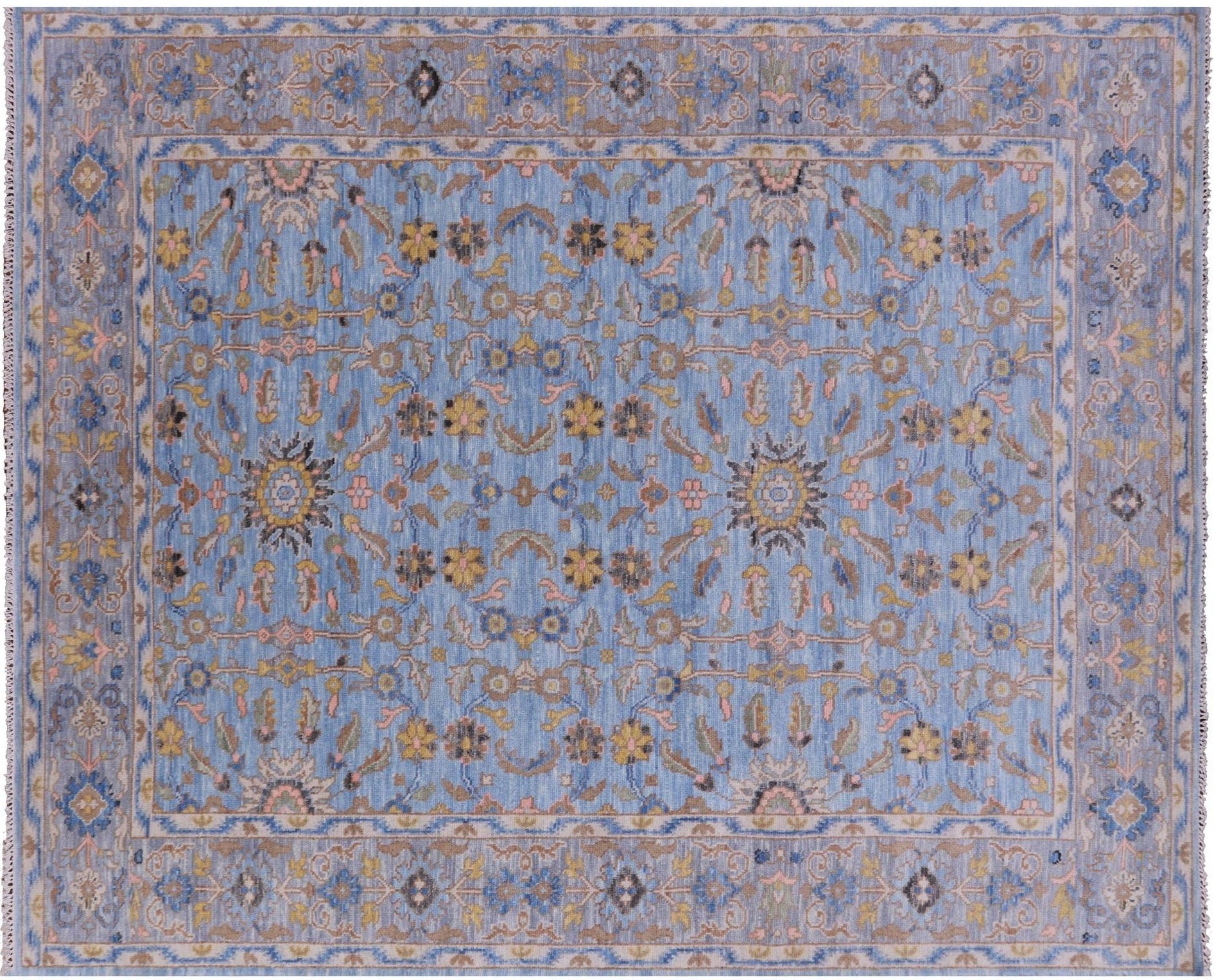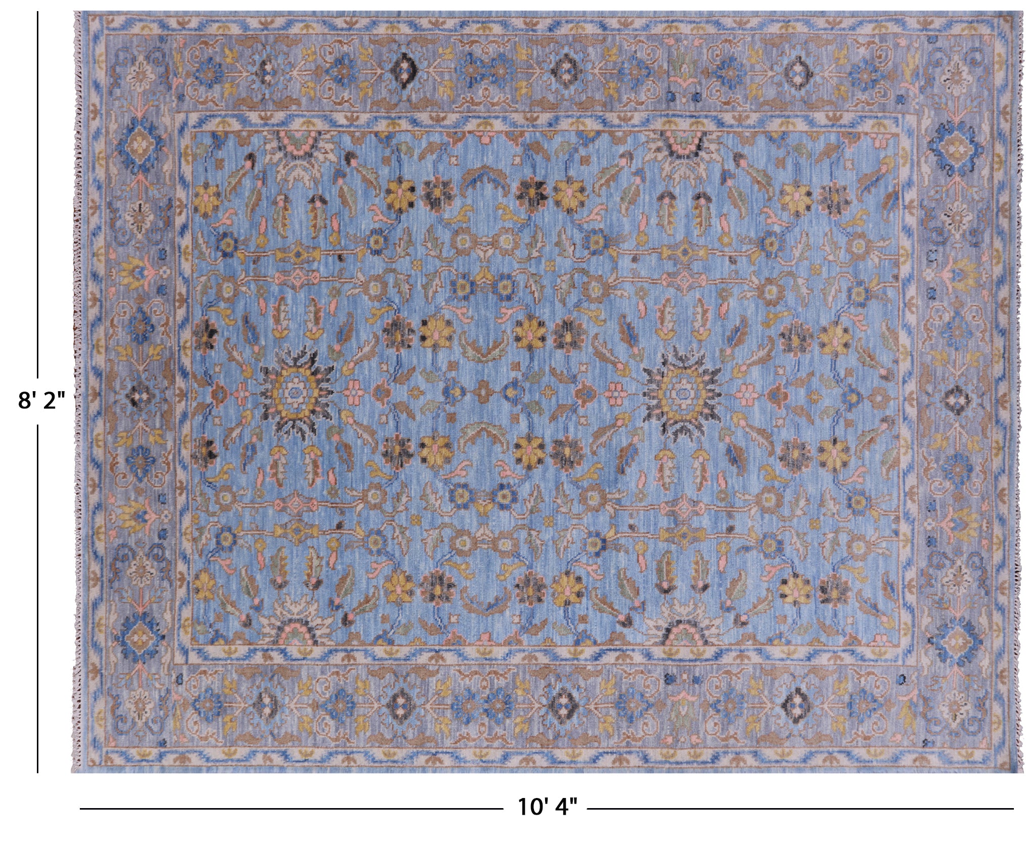 Blue 8' 2" X 10' 4" Turkish Angora Oushak Hand Knotted Rug - Q19259