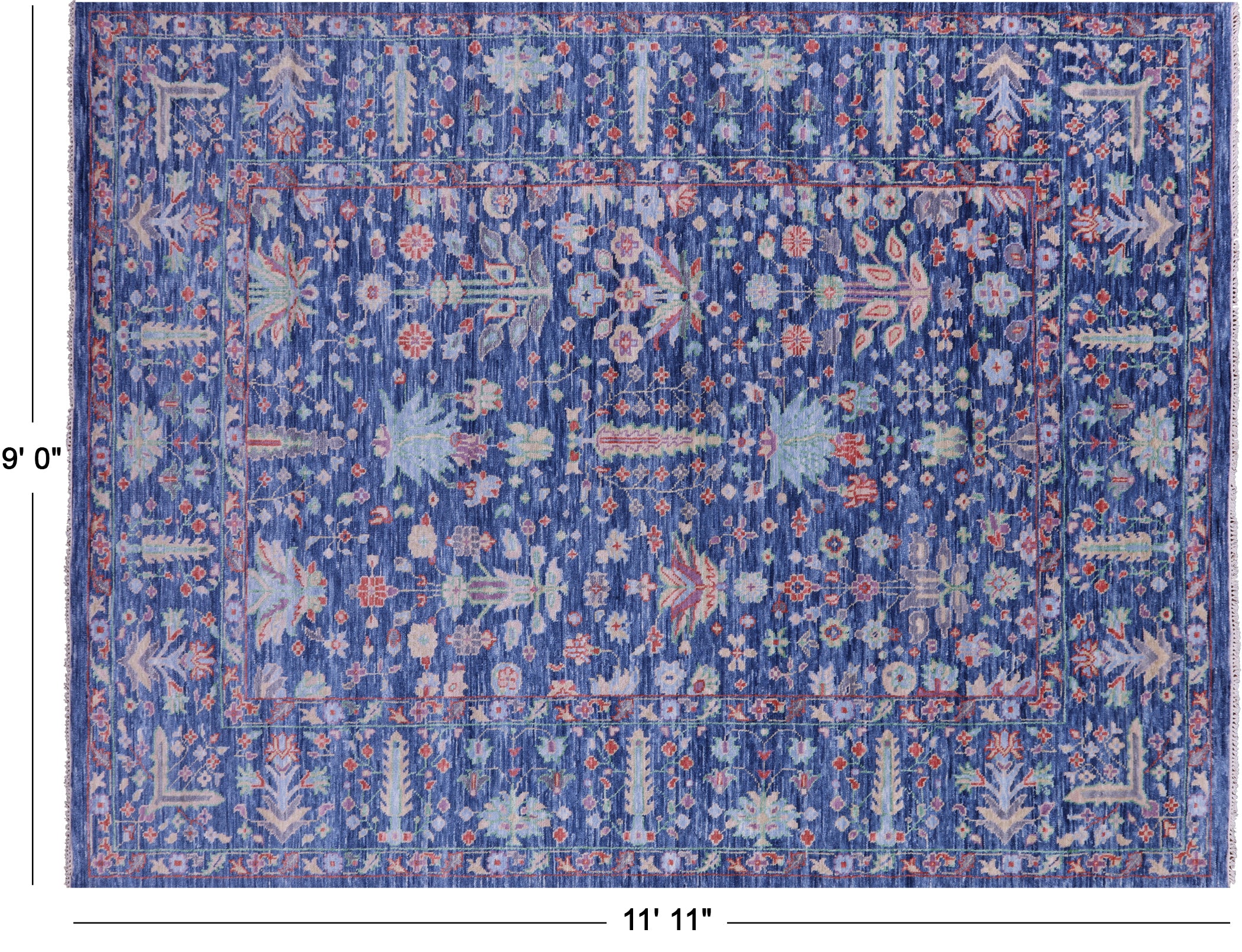 Blue 9' 0" X 11' 11" Turkish Angora Oushak Hand-Knotted Wool Rug - Q13290