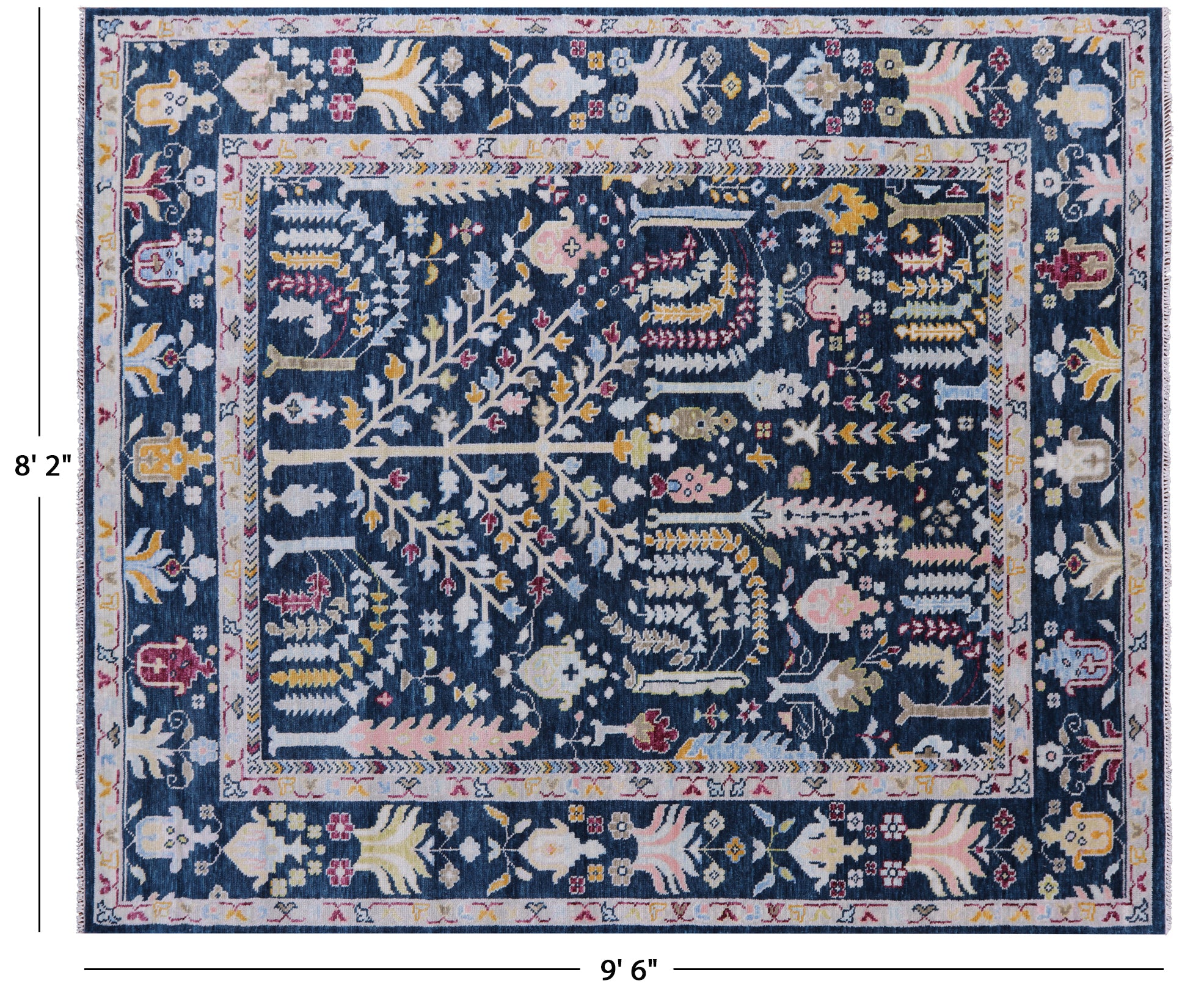 Blue Turkish Angora Oushak Hand Knotted Wool Rug 8' 2" X 9' 6" - Q13393