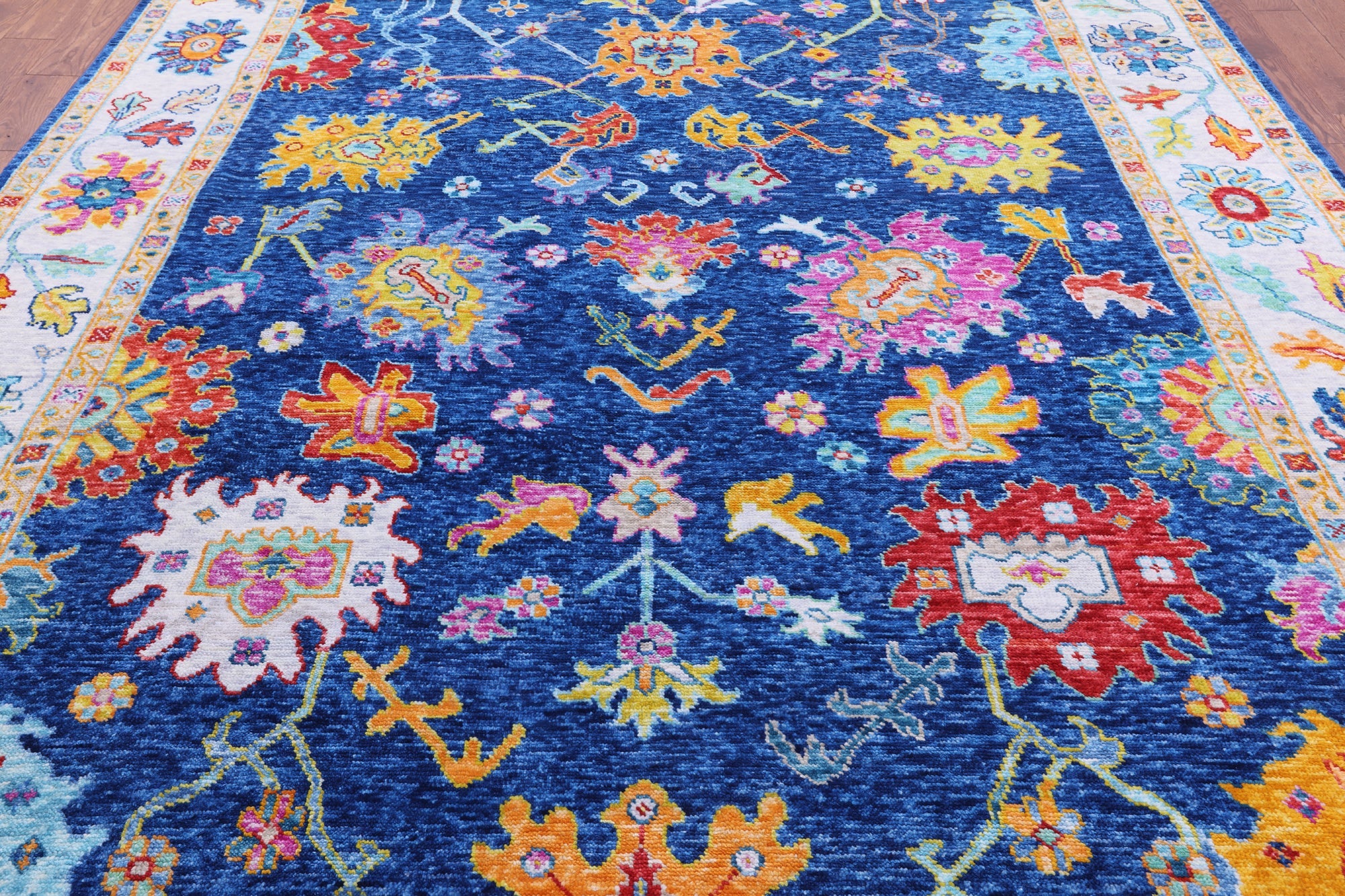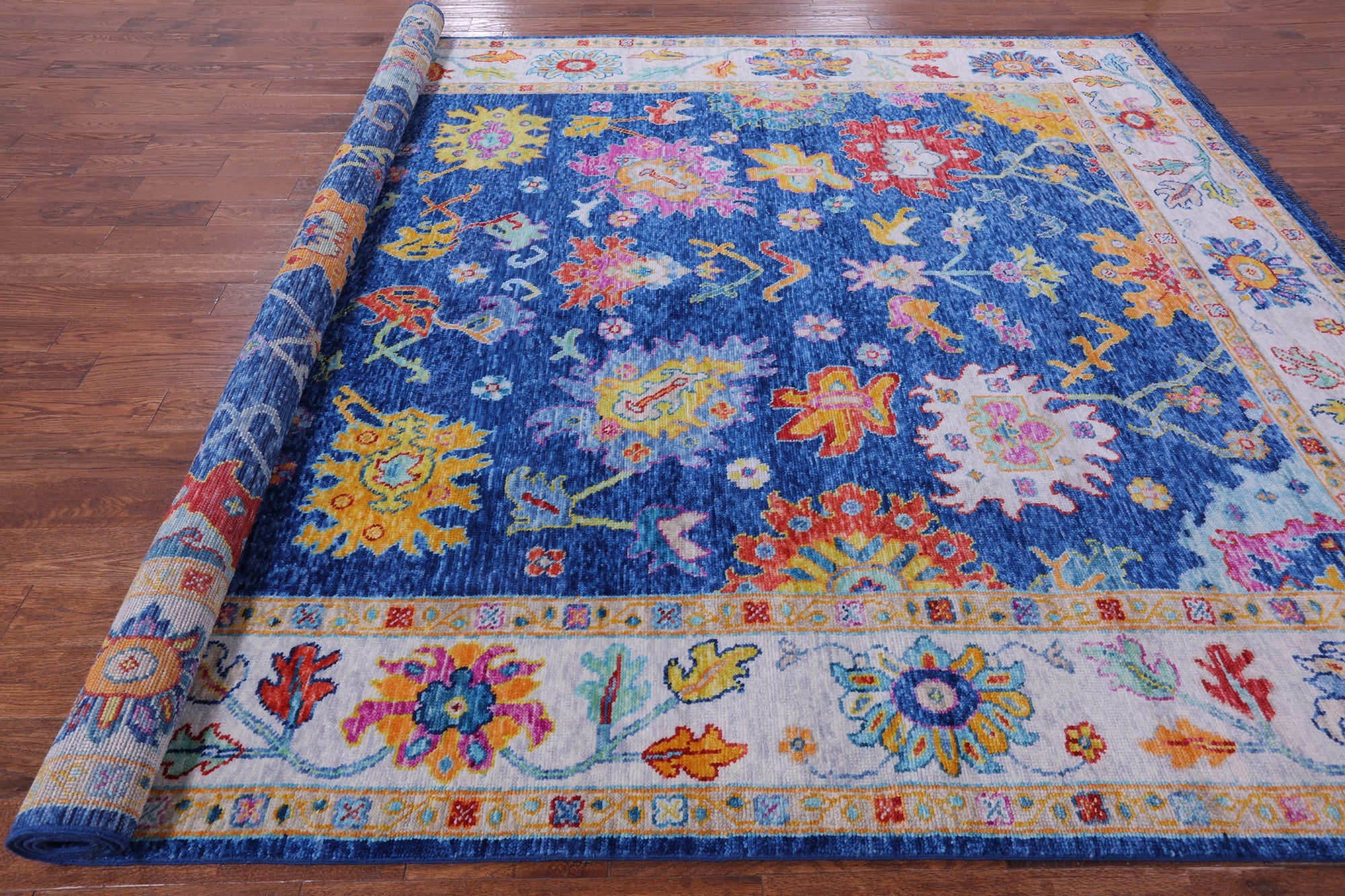 Blue 9' 4" X 12' 4" Turkish Angora Oushak Hand Knotted Wool Rug - Q14805 is backordered and will ship as soon as it is back in stock.