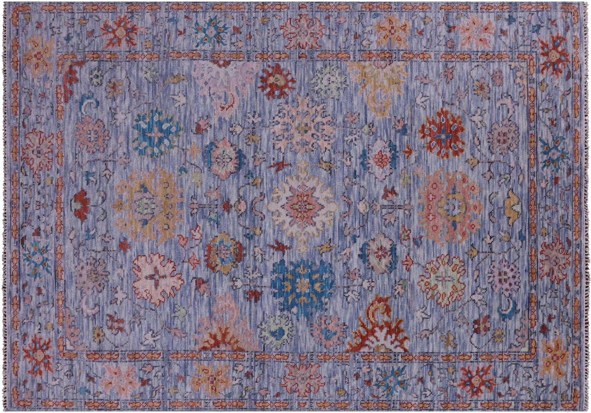 Blue 6' 5" X 9' 2" Turkish Angora Oushak Hand-Knotted Wool Rug - Q14956