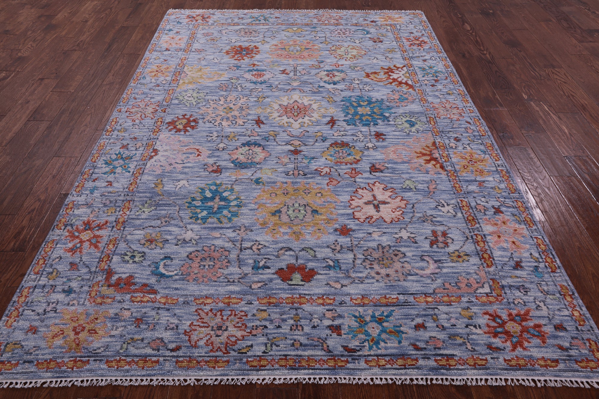 Blue 6' 5" X 9' 2" Turkish Angora Oushak Hand-Knotted Wool Rug - Q14956 is backordered and will ship as soon as it is back in stock.