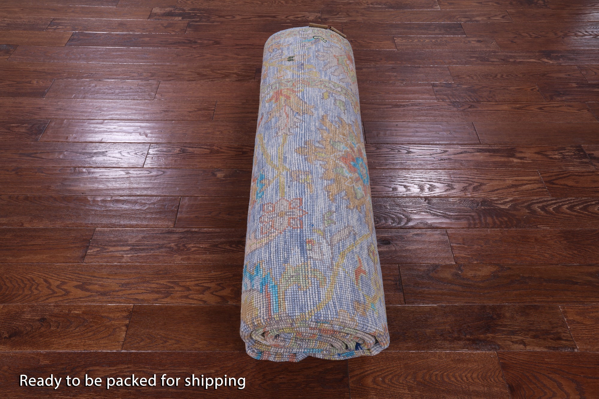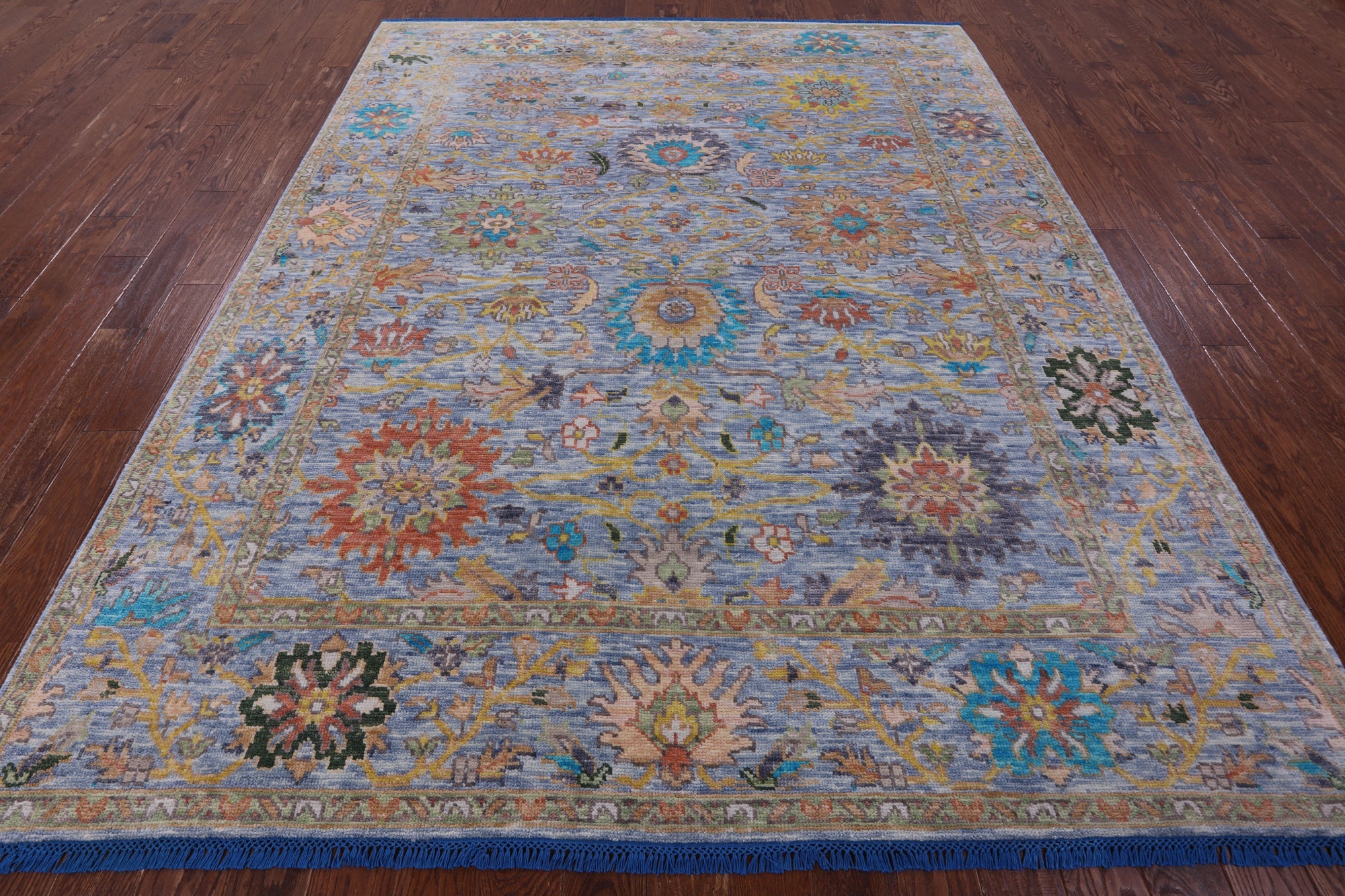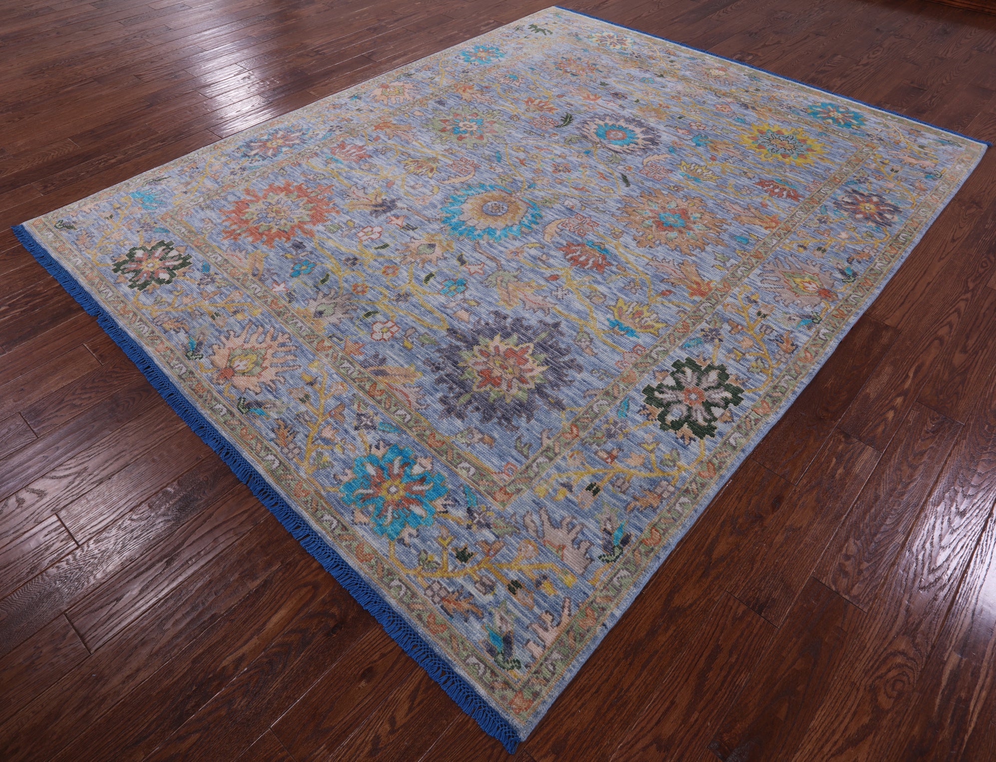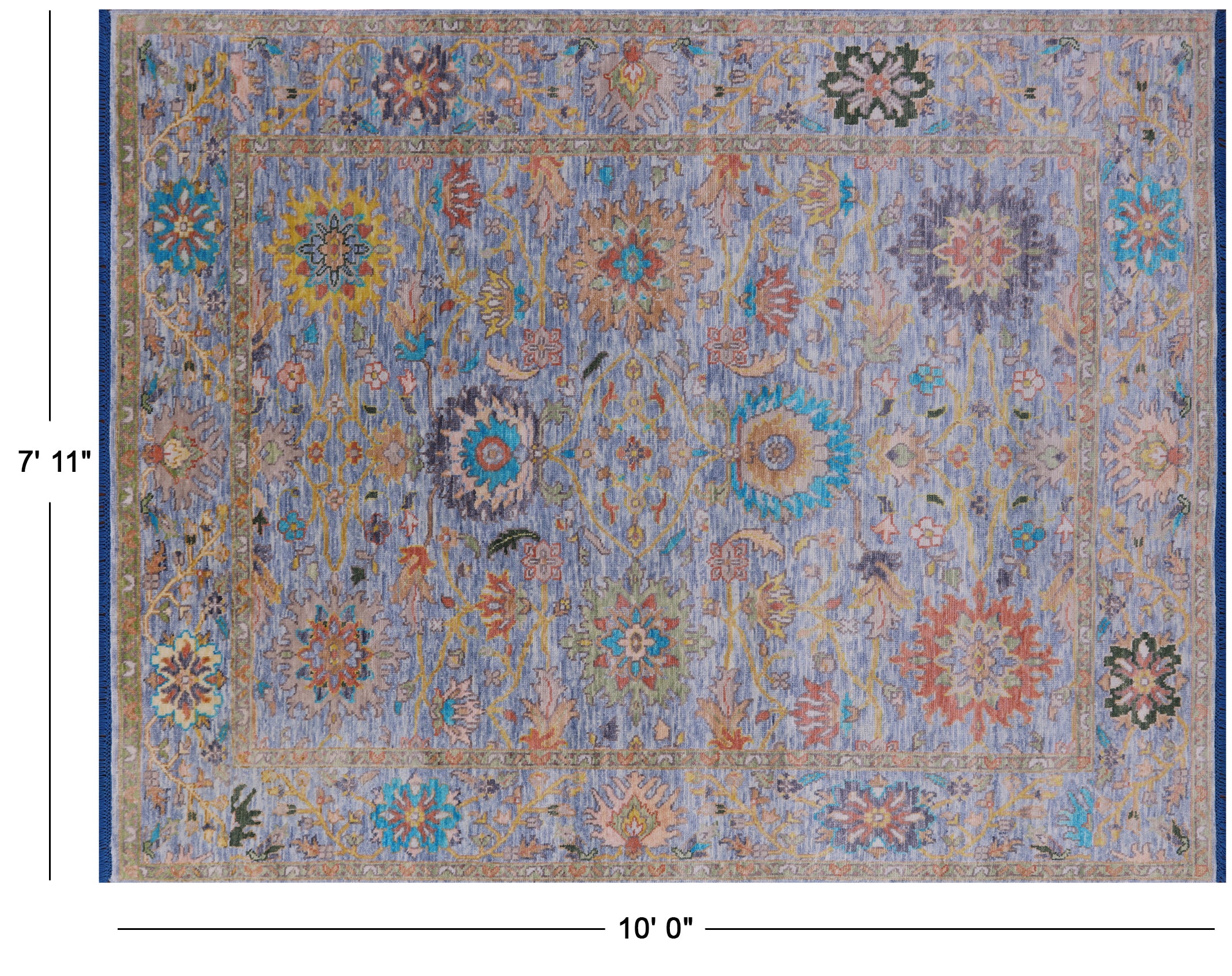 Blue Turkish Angora Oushak Hand Knotted Wool Rug 7' 11" X 10' 0" - Q14993