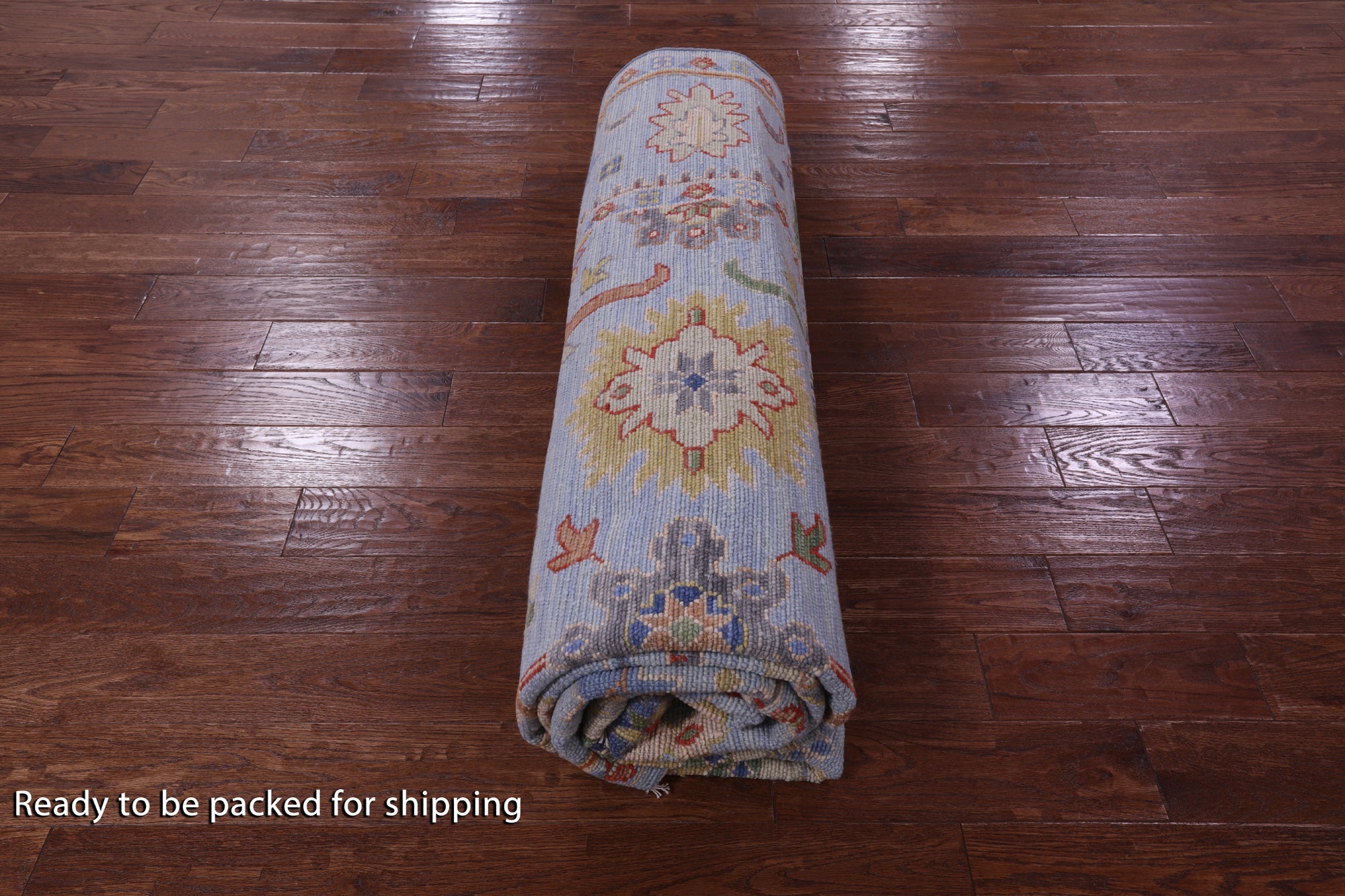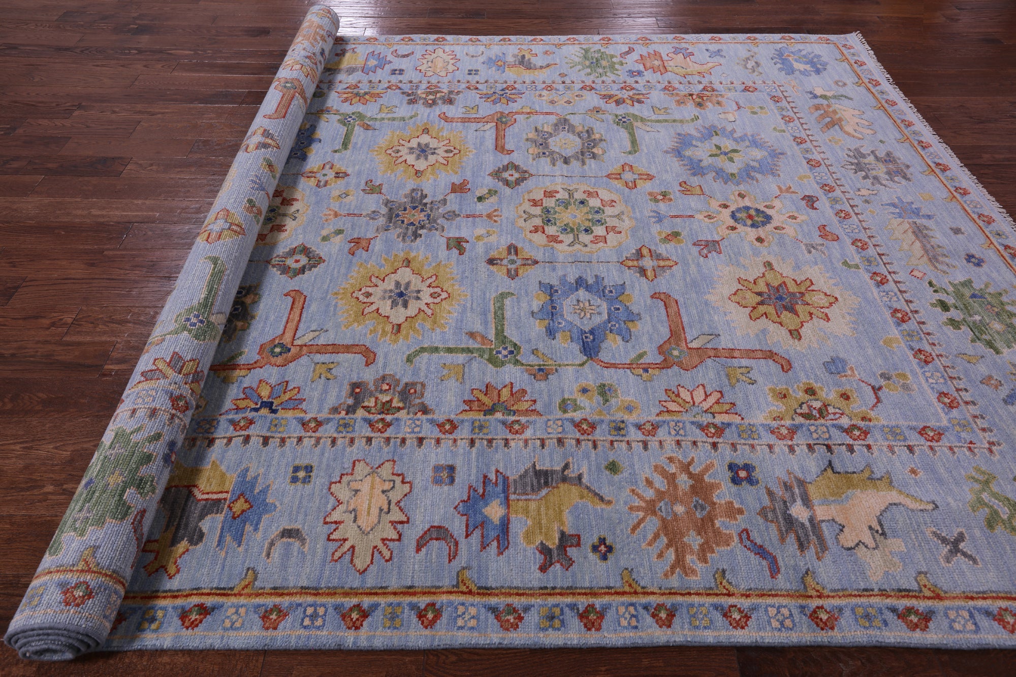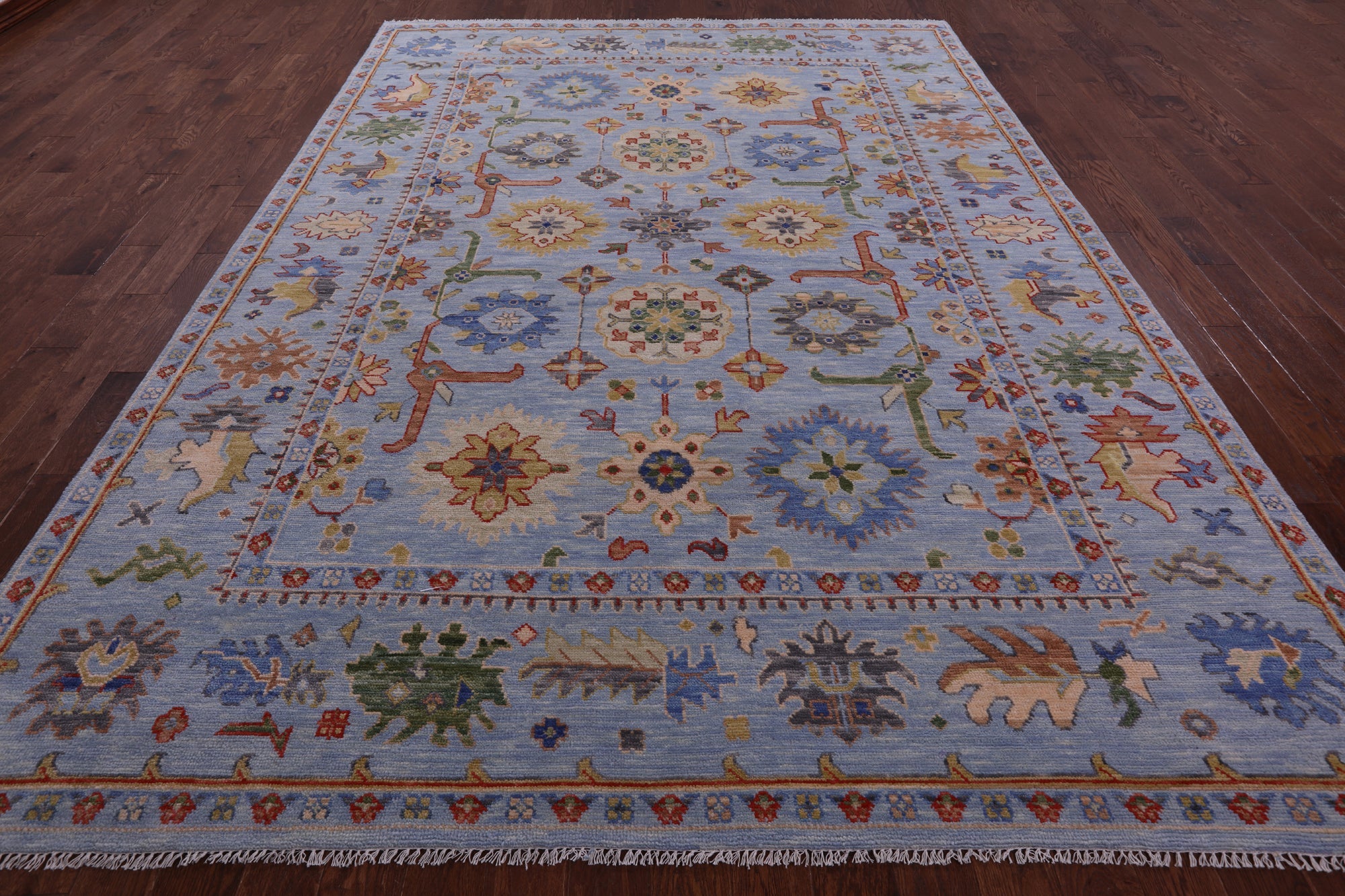 Blue Turkish Angora Oushak Hand-Knotted Wool Rug 9' 0" X 12' 3" - Q15418 is backordered and will ship as soon as it is back in stock.